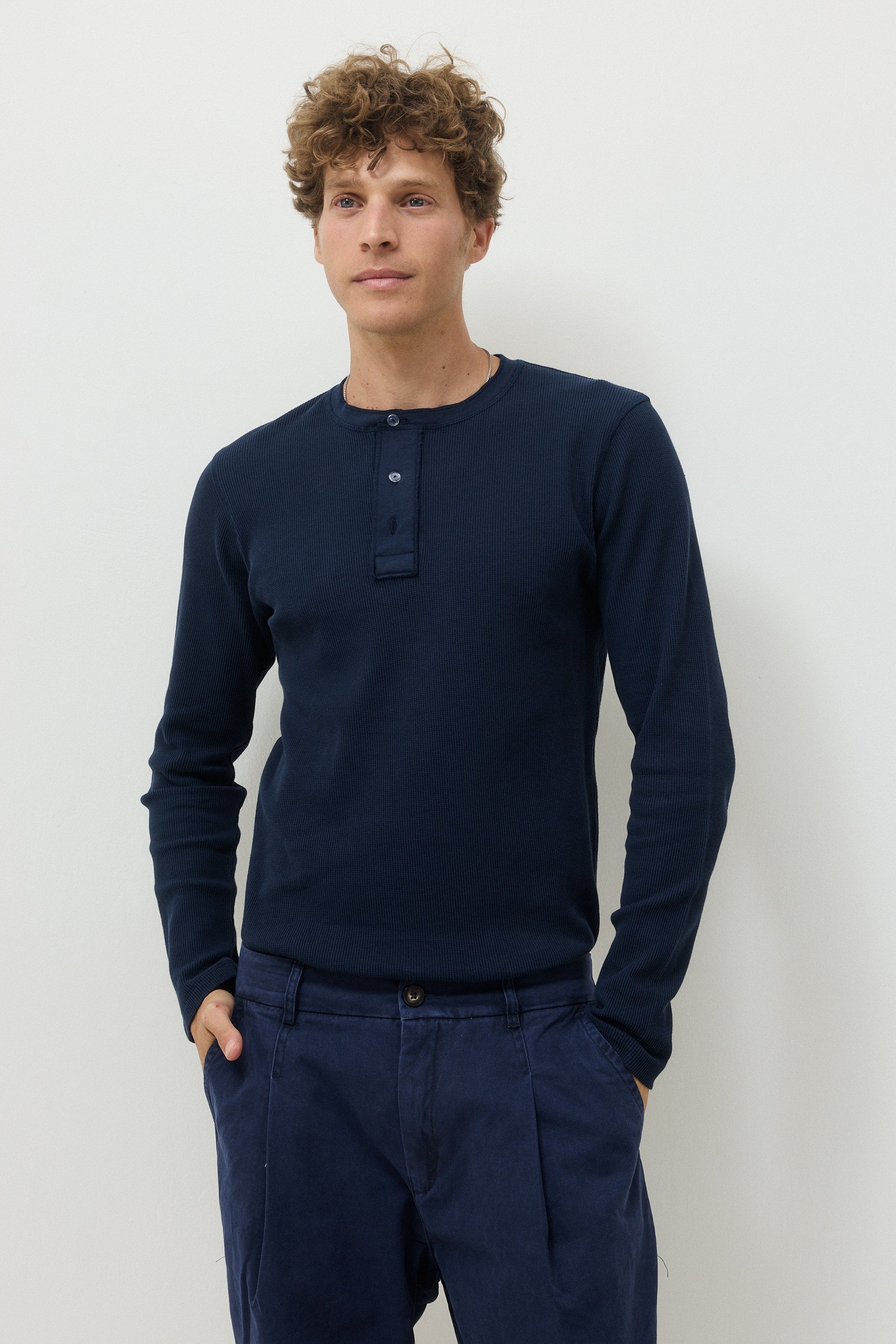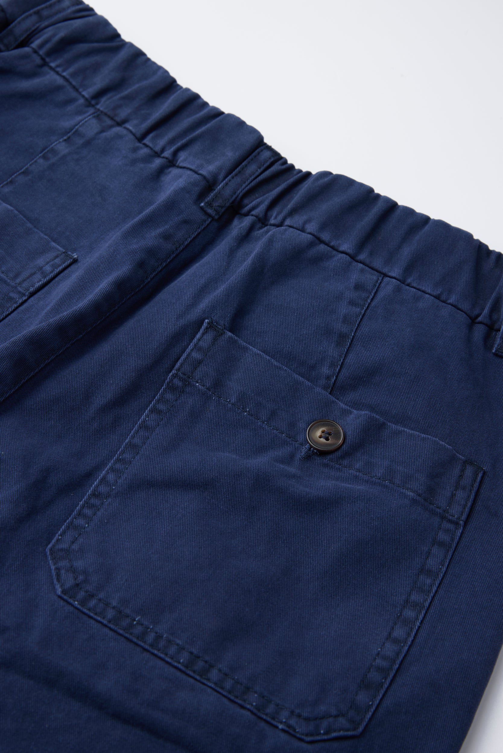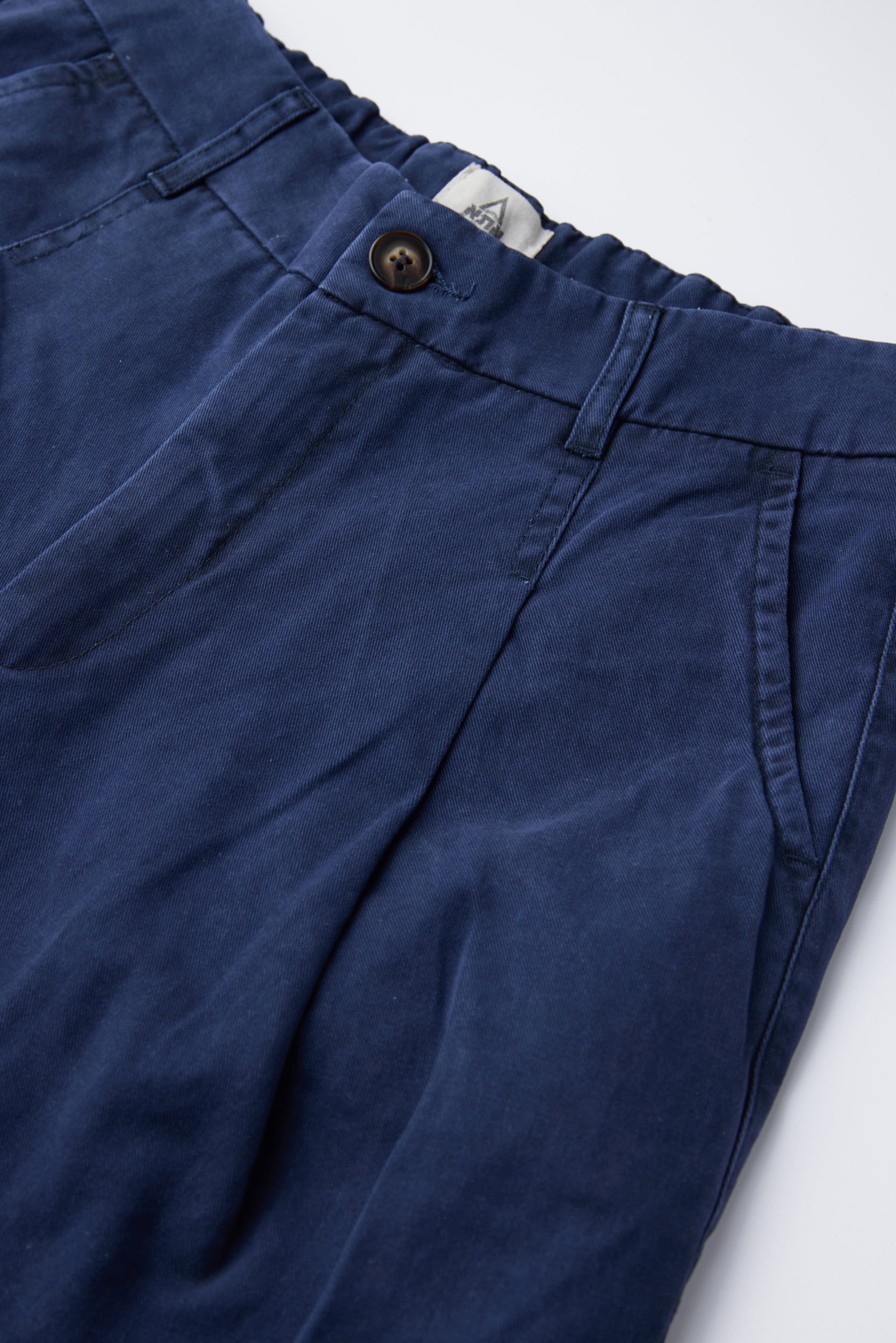 - המכנסיים משוחררים בחלקם העליון עם מכפלת צרה. ישנו כפל אחד בחזית וגומי בחלק האחורי באזור החגורה