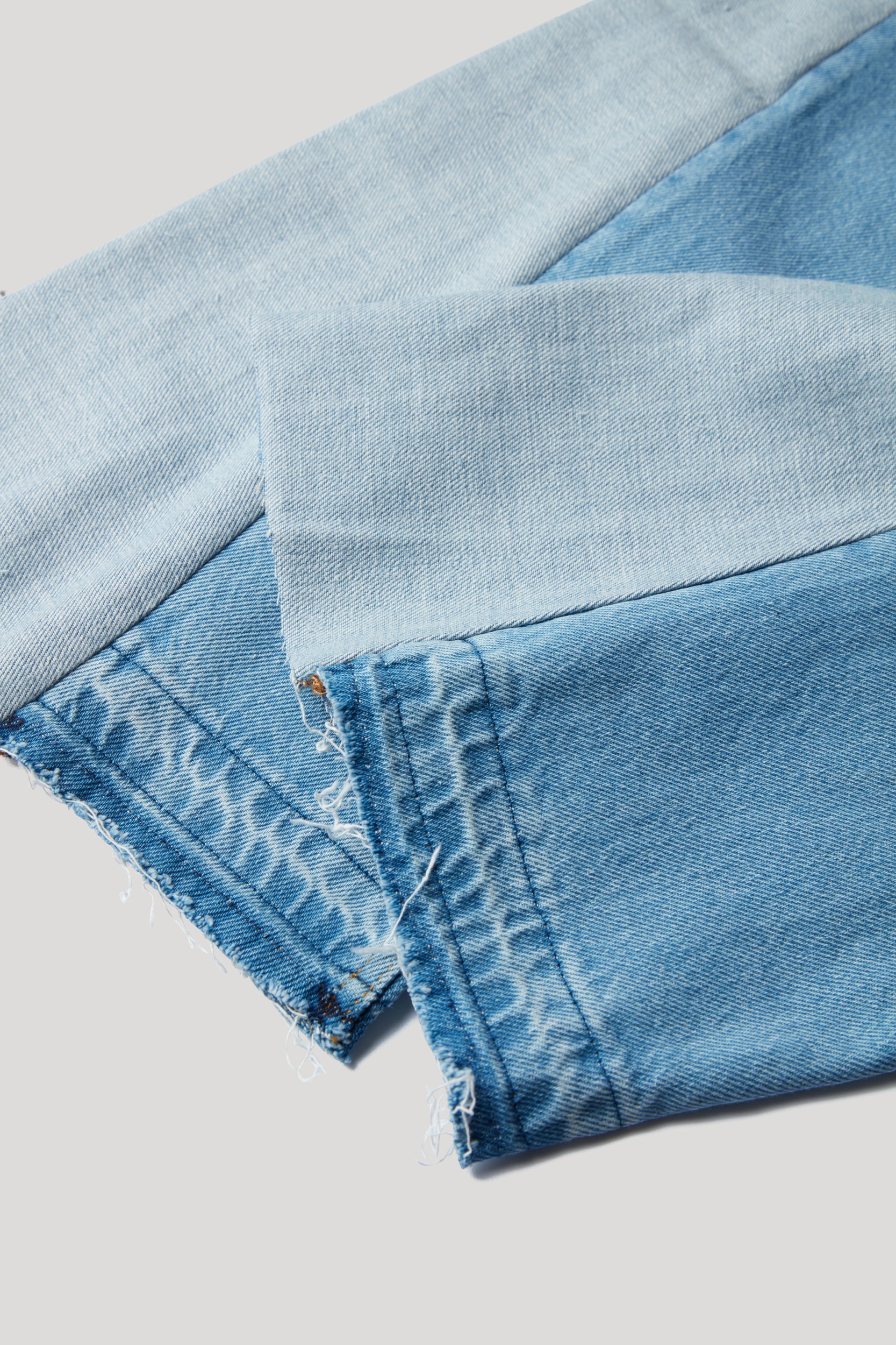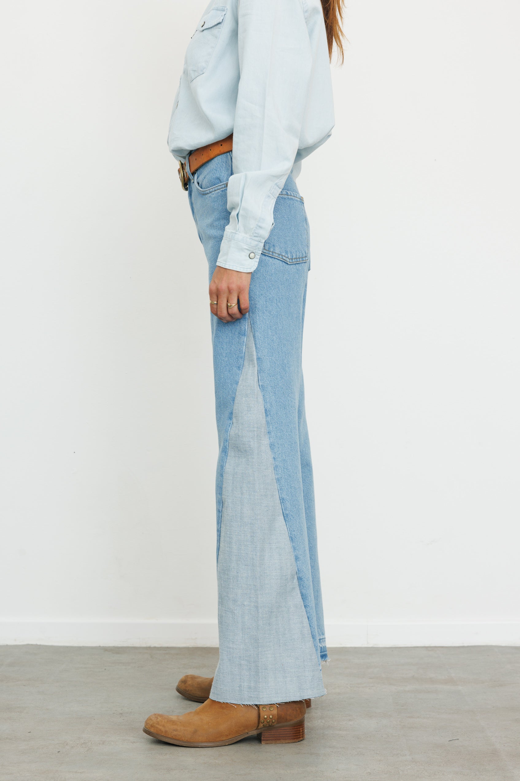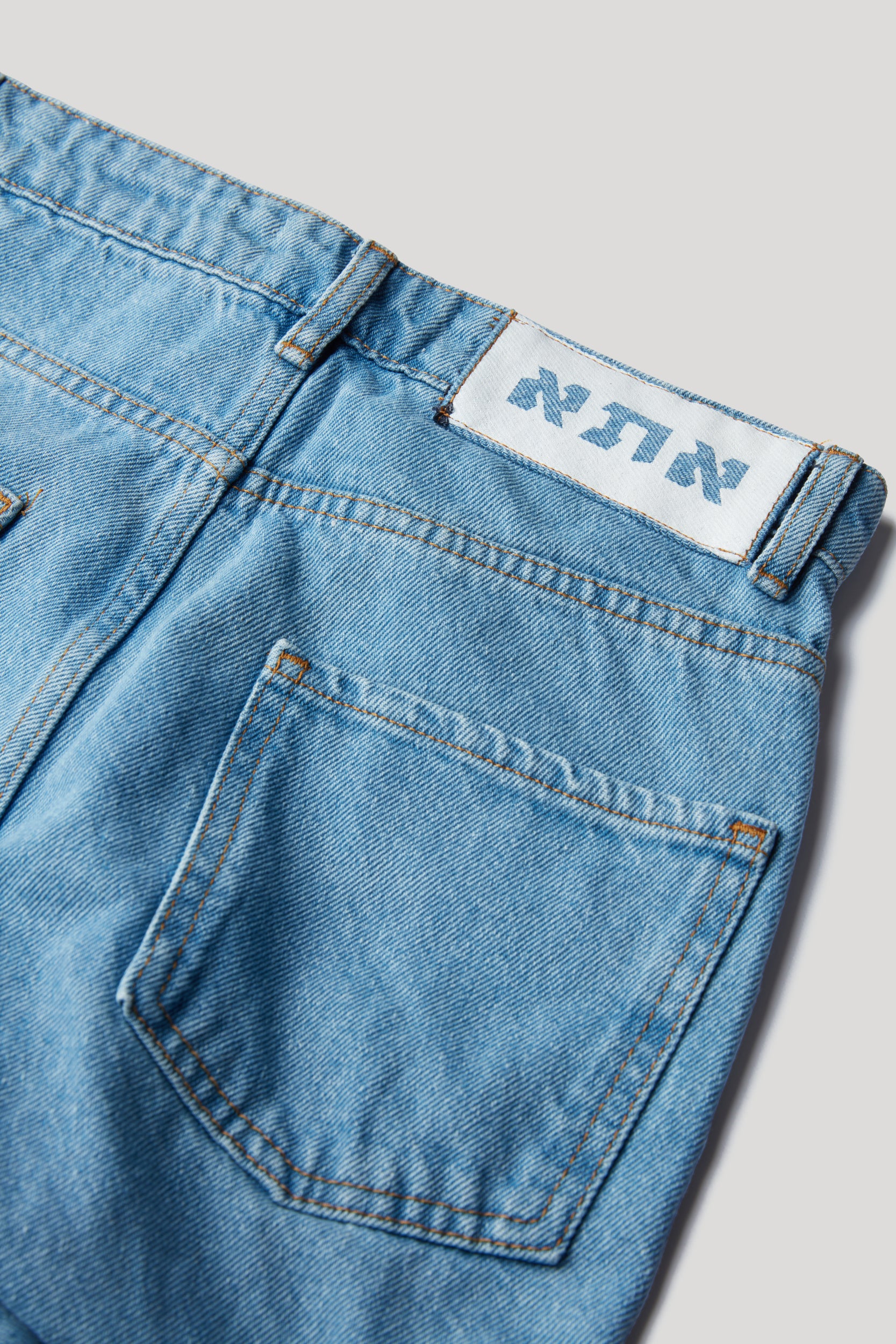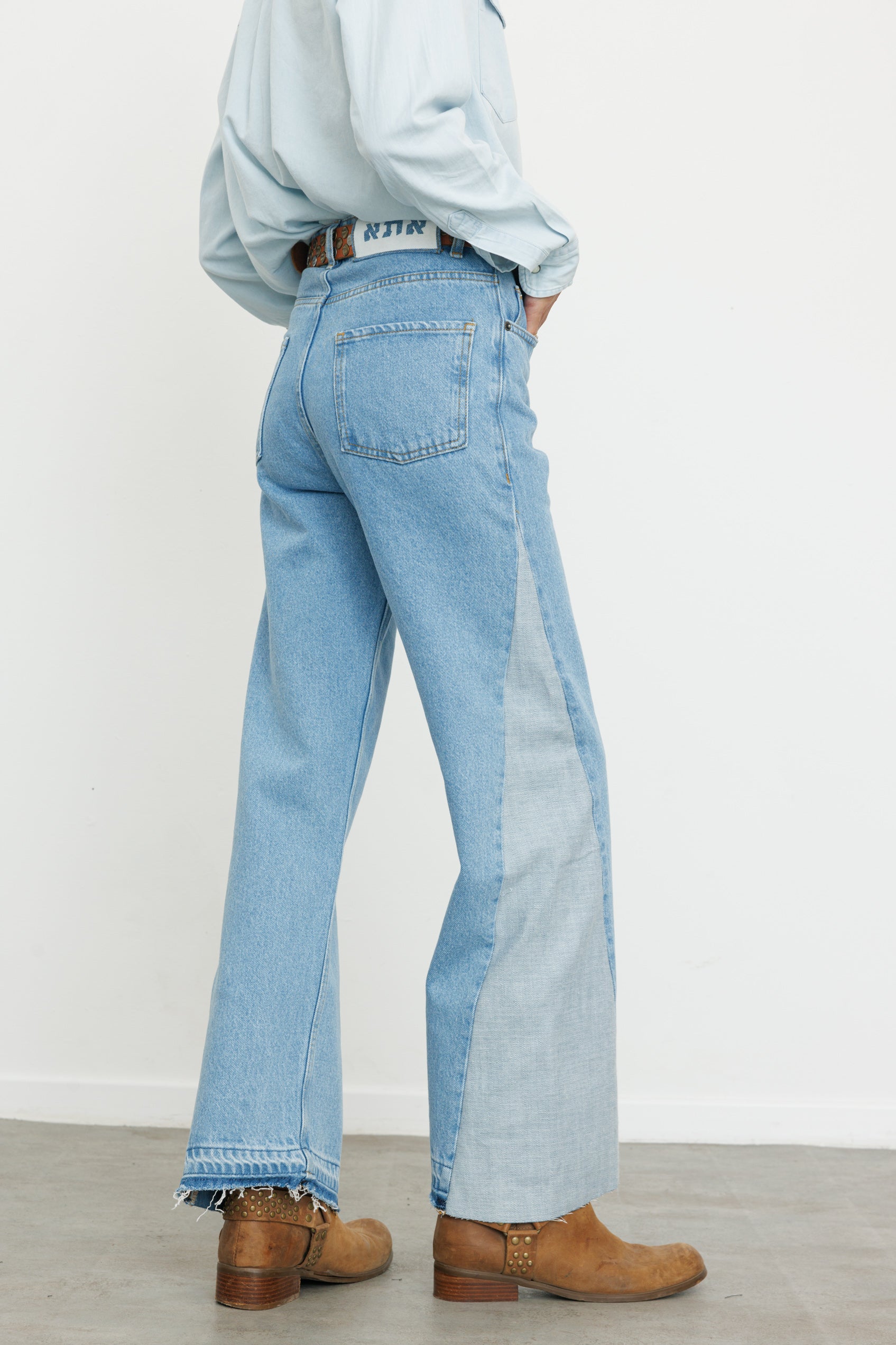 בצד המכנסיים תוספת של משולש ג׳ינס מג׳ינס בגוון אחר