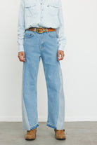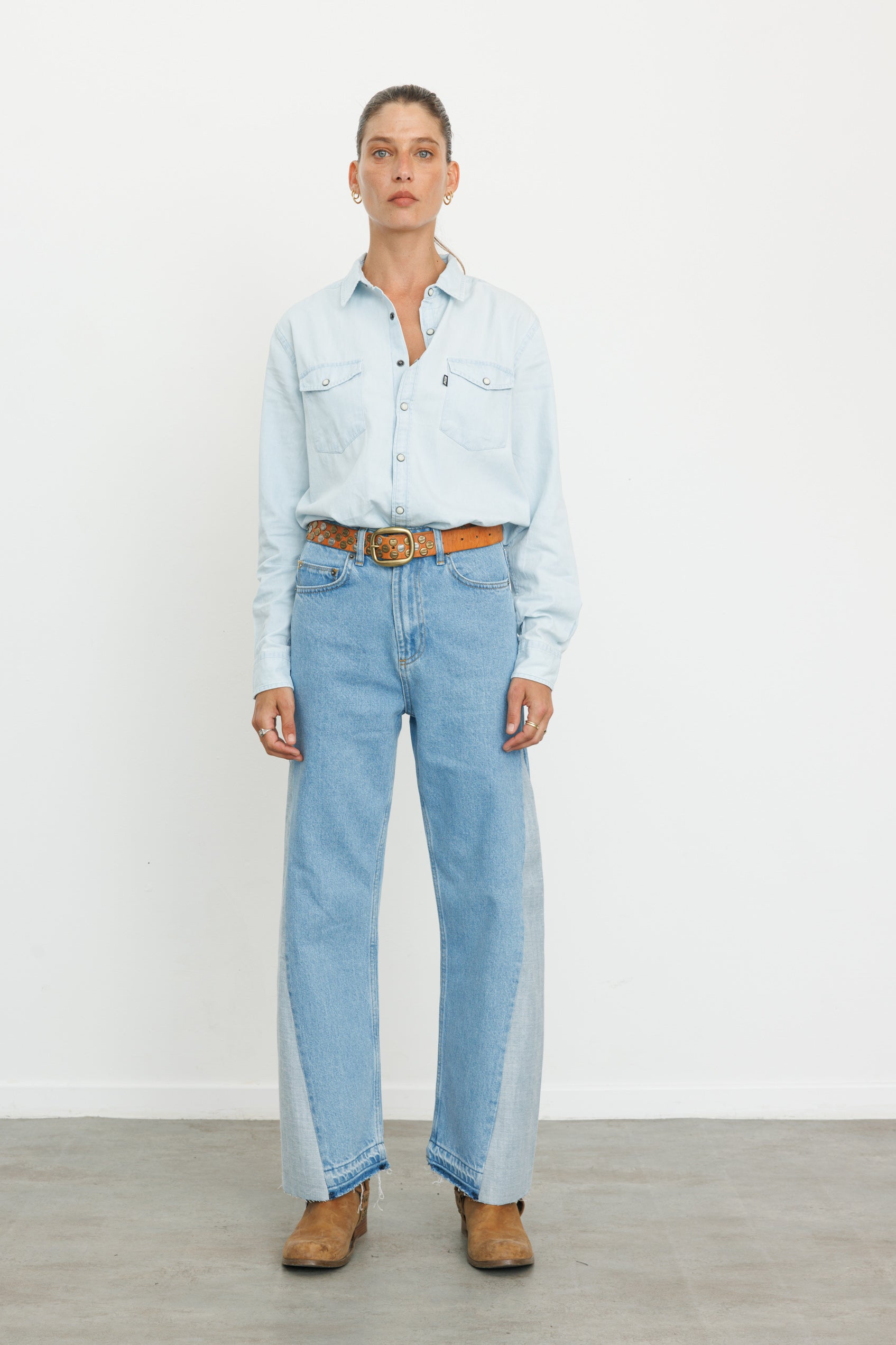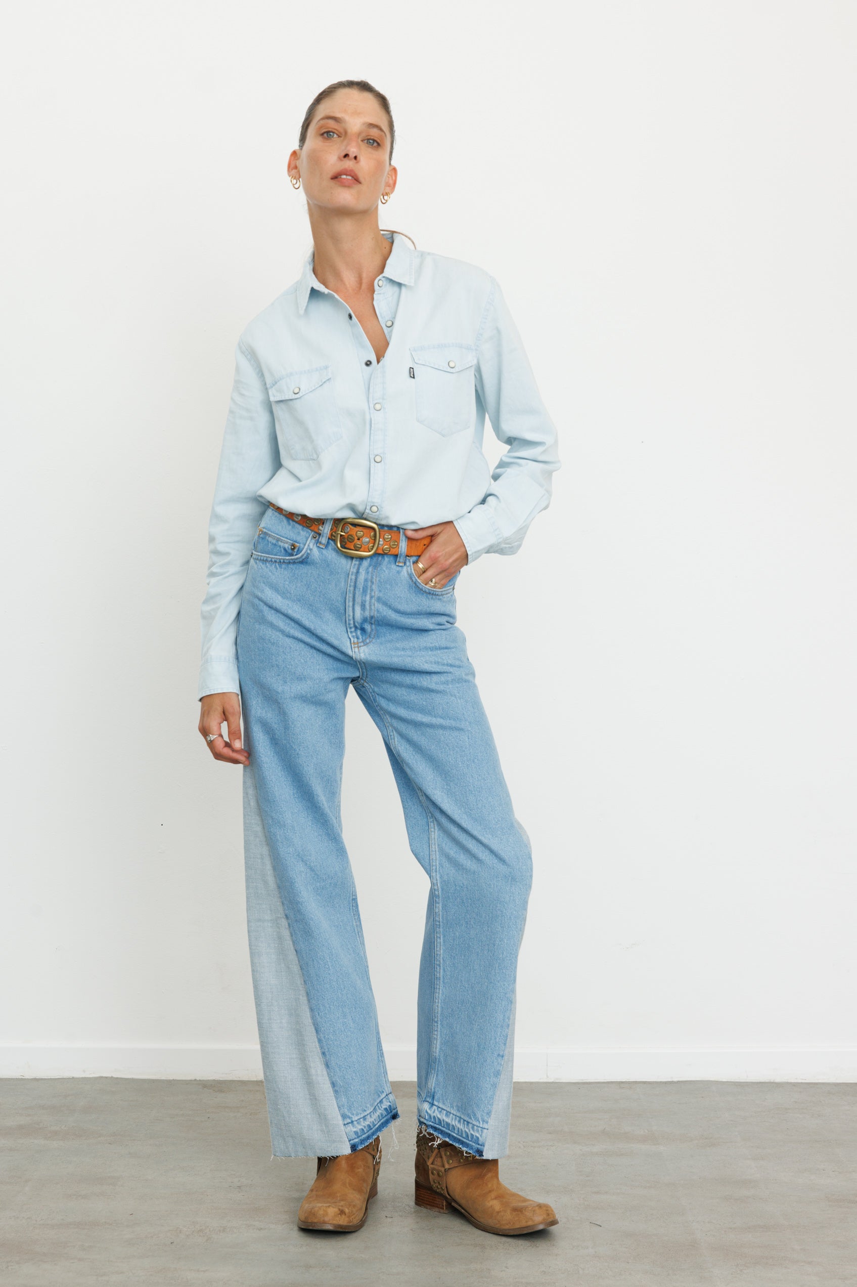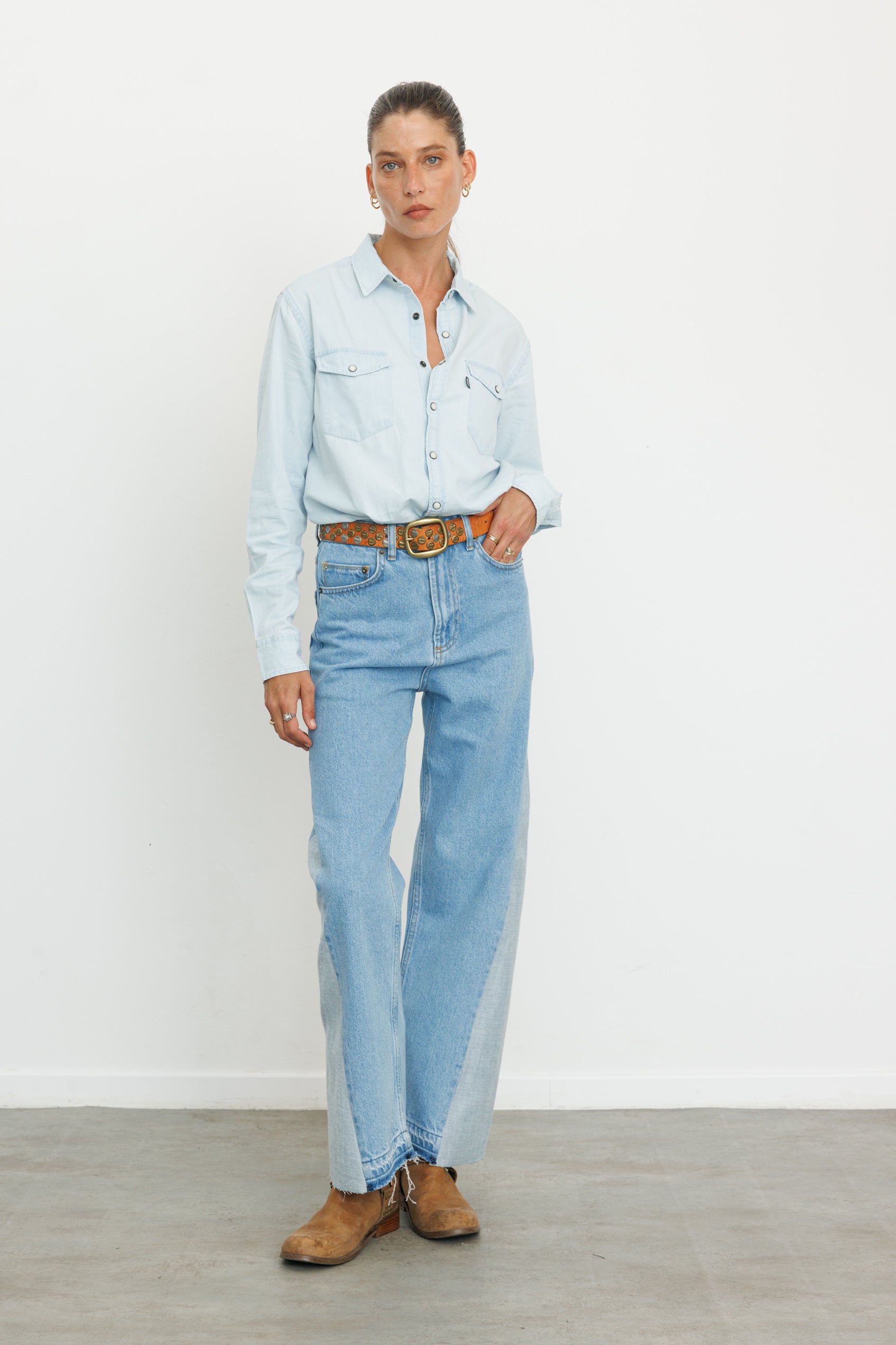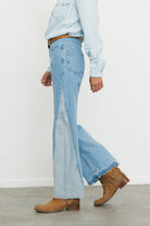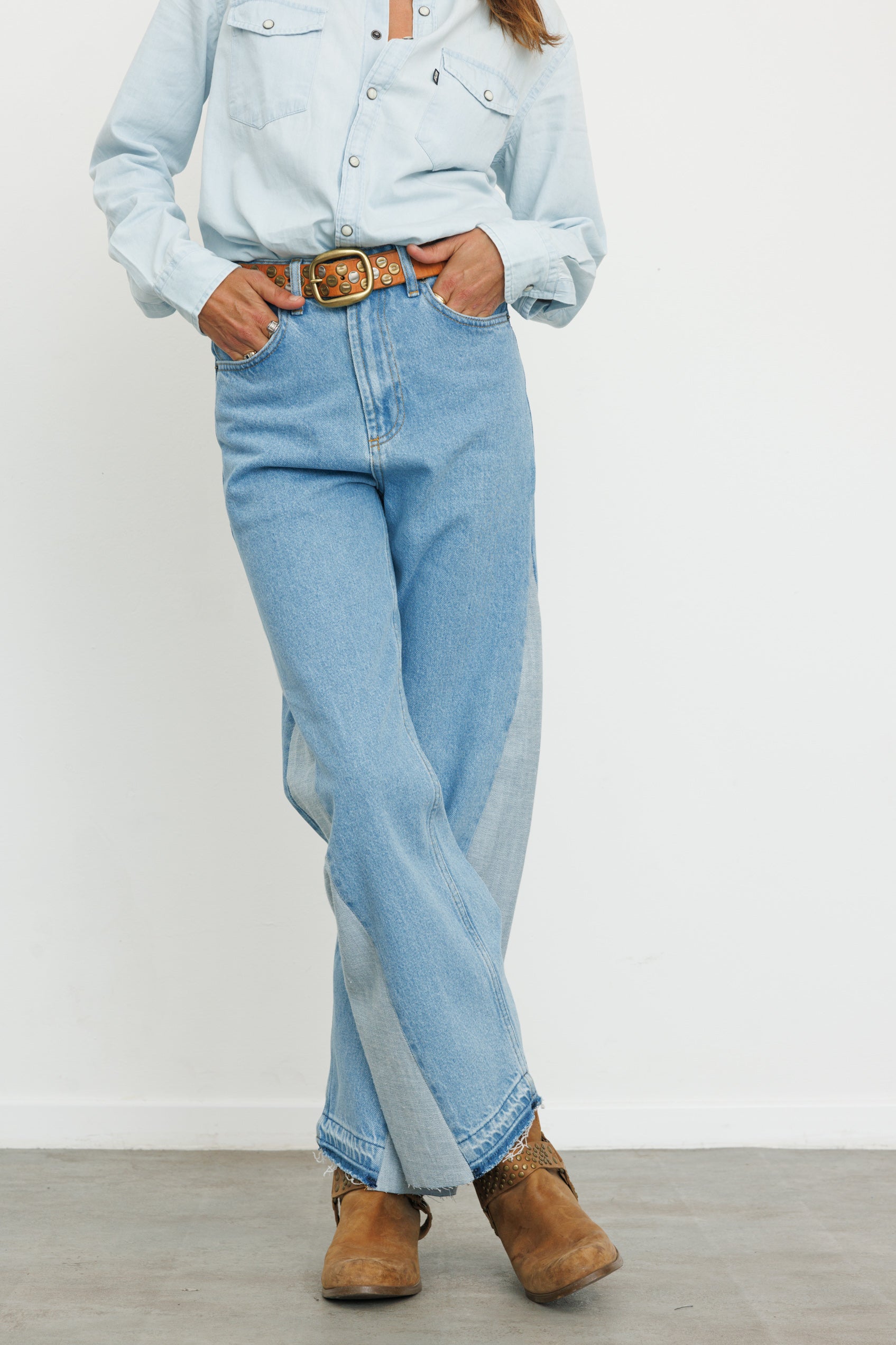 בצד המכנסיים תוספת של משולש ג׳ינס מג׳ינס בגוון אחר