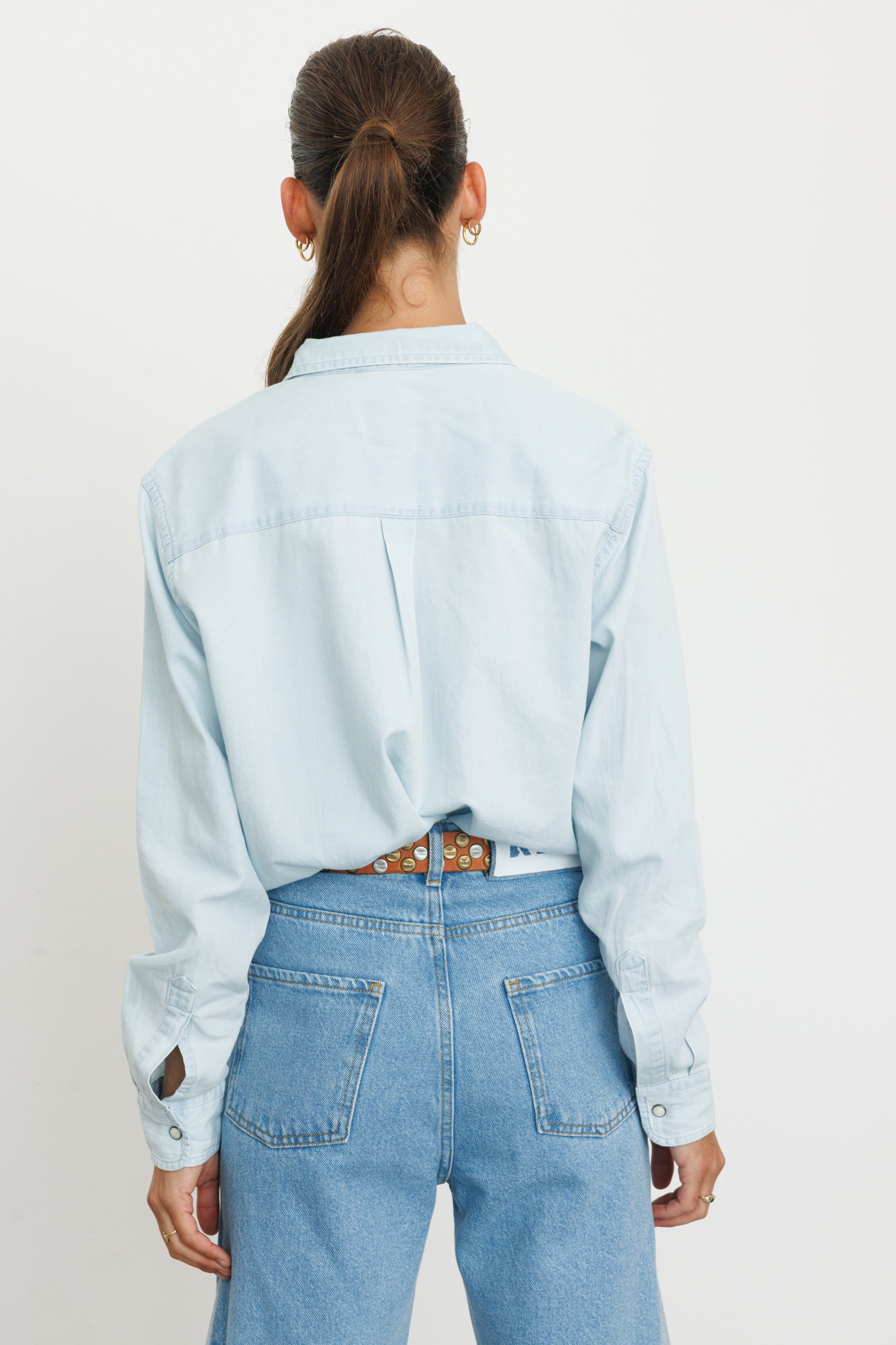 מכנסי ג׳ינס בגזרה צמודה ומותן גבוהה