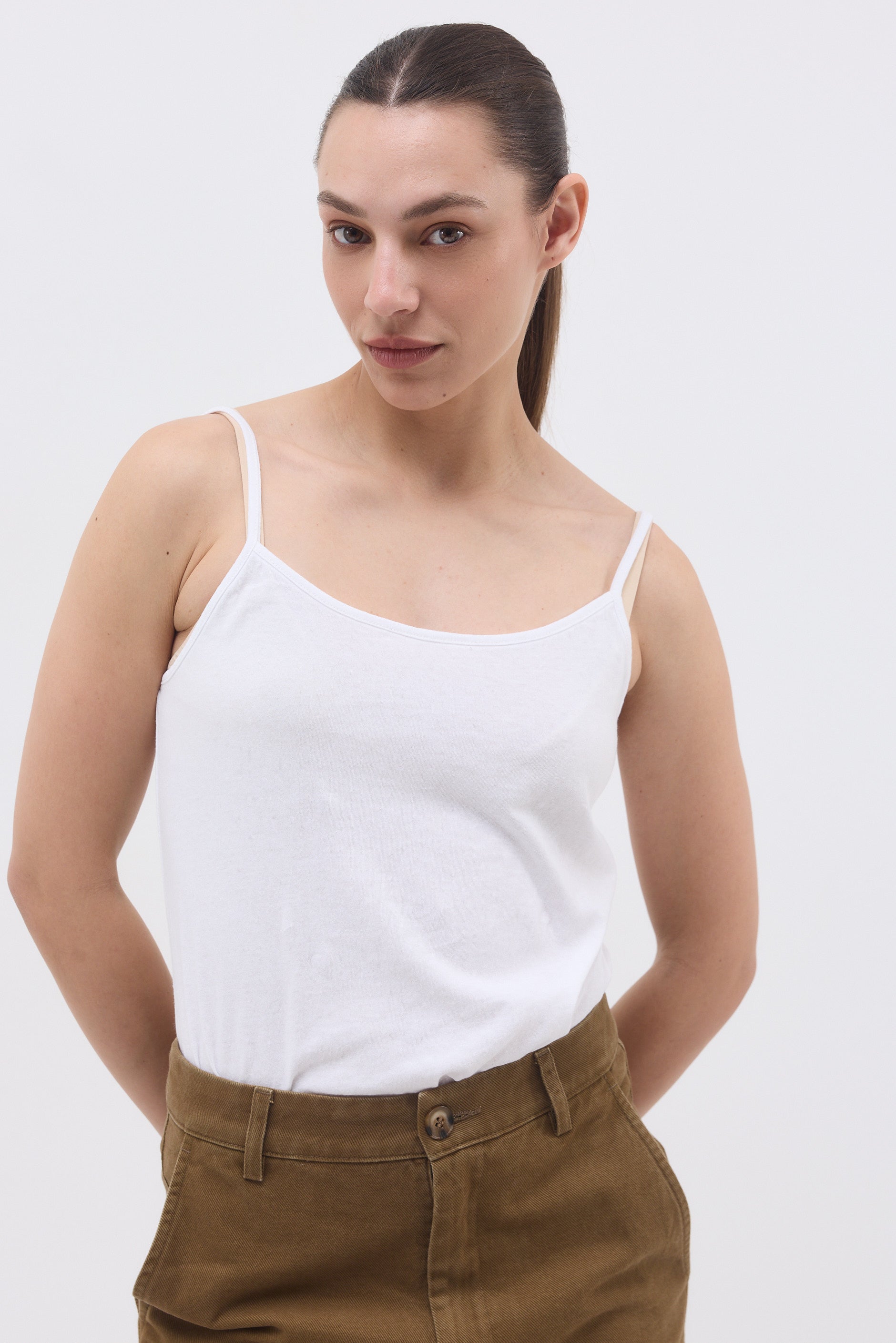 ⦁גופיית ספגטי במחשוף עגול
