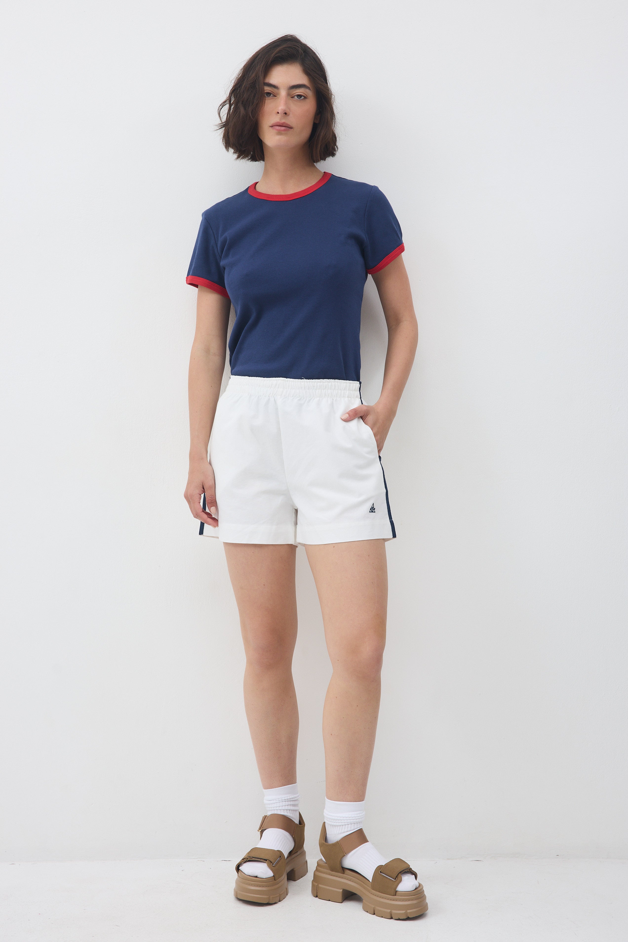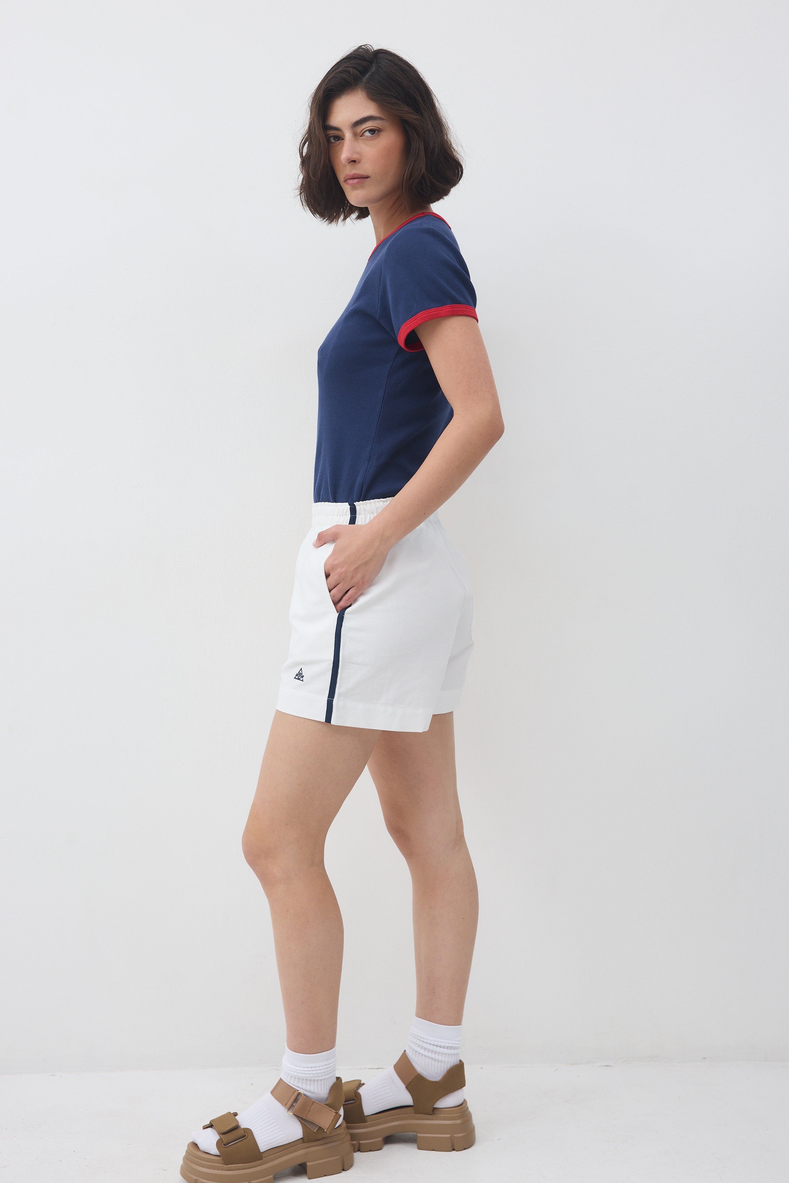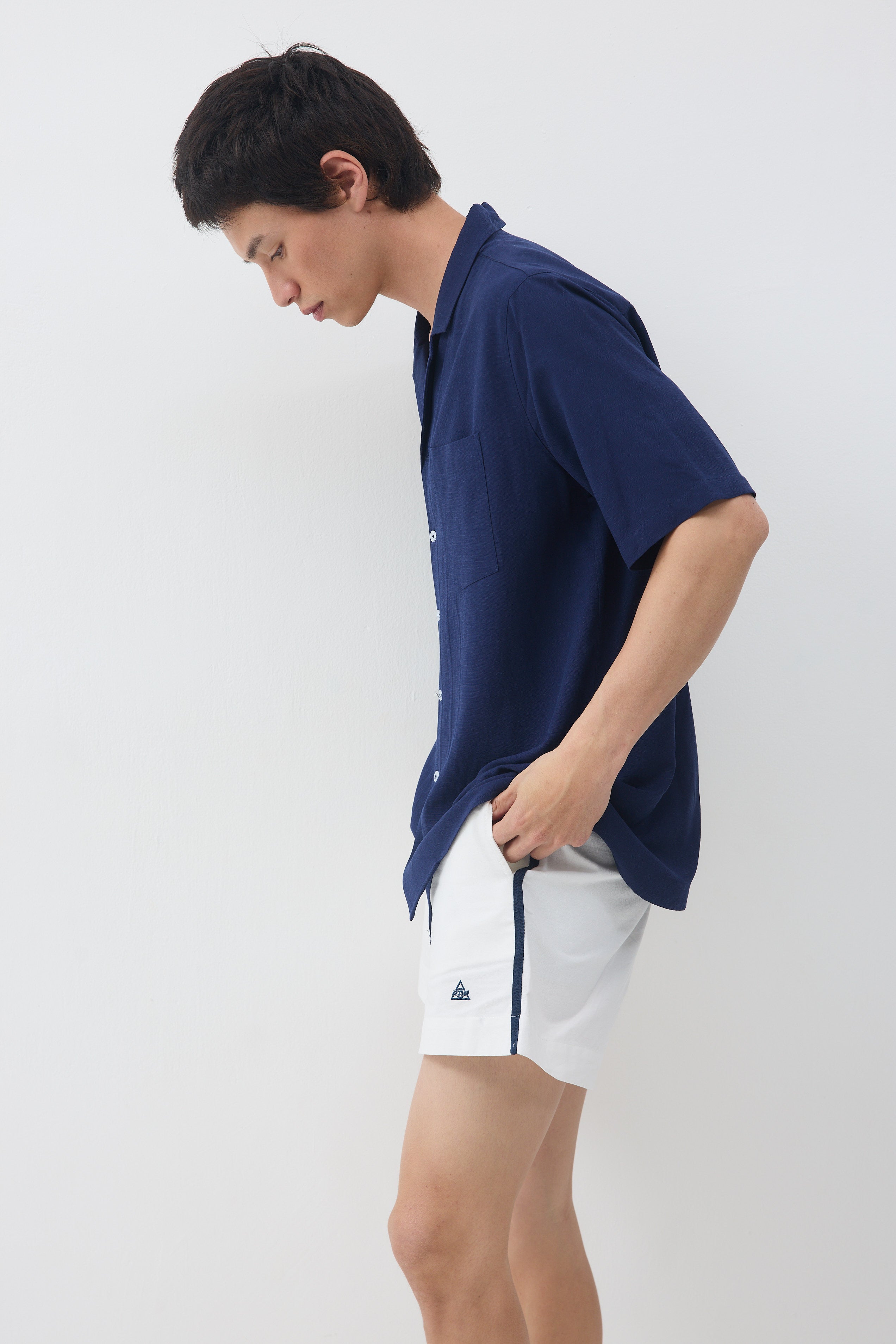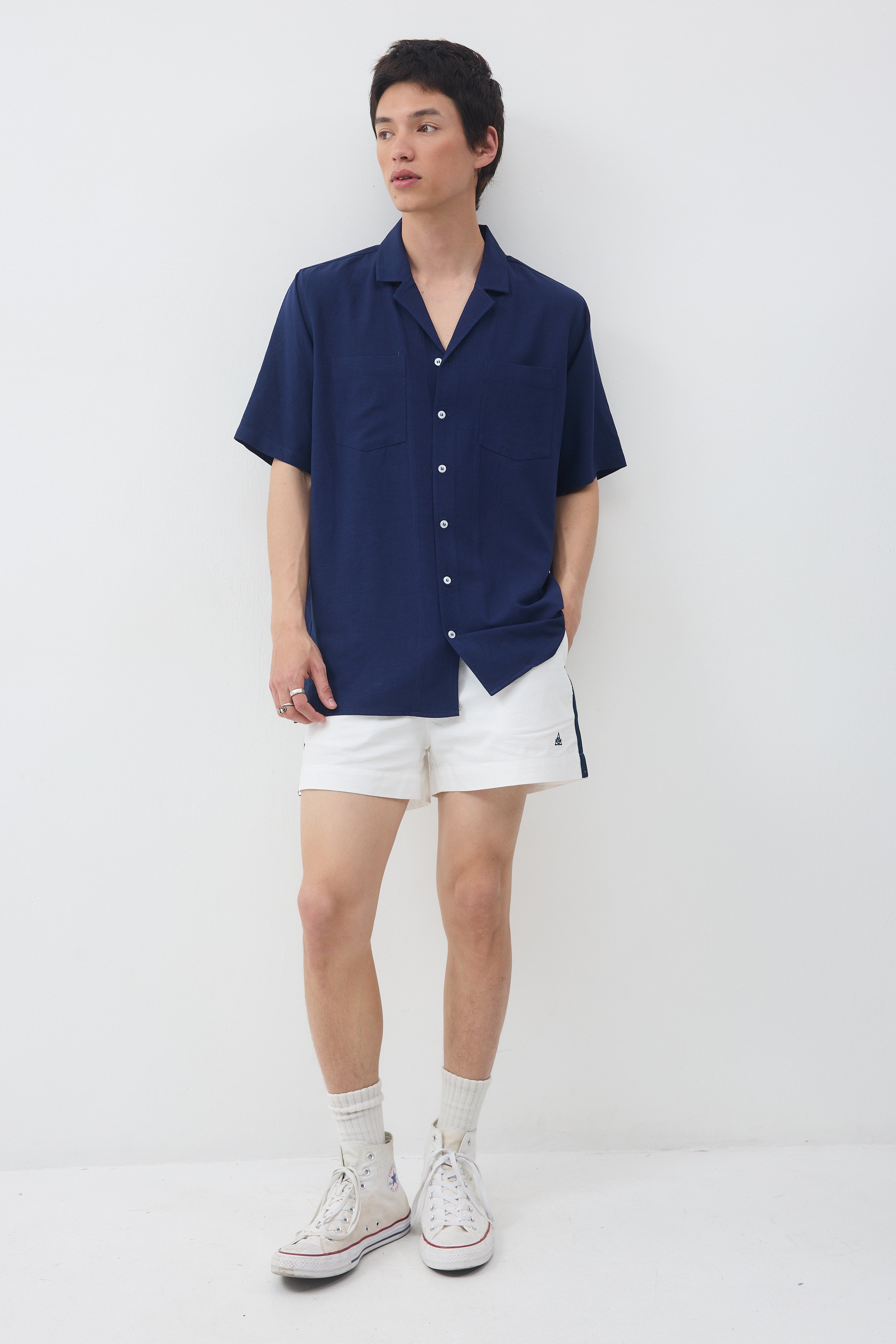 - קצרים, בגזרה נינוחה , עם גומי במותניים , שני כיסים ופס לבן בתפר צד, עם כיס אחד אחורי