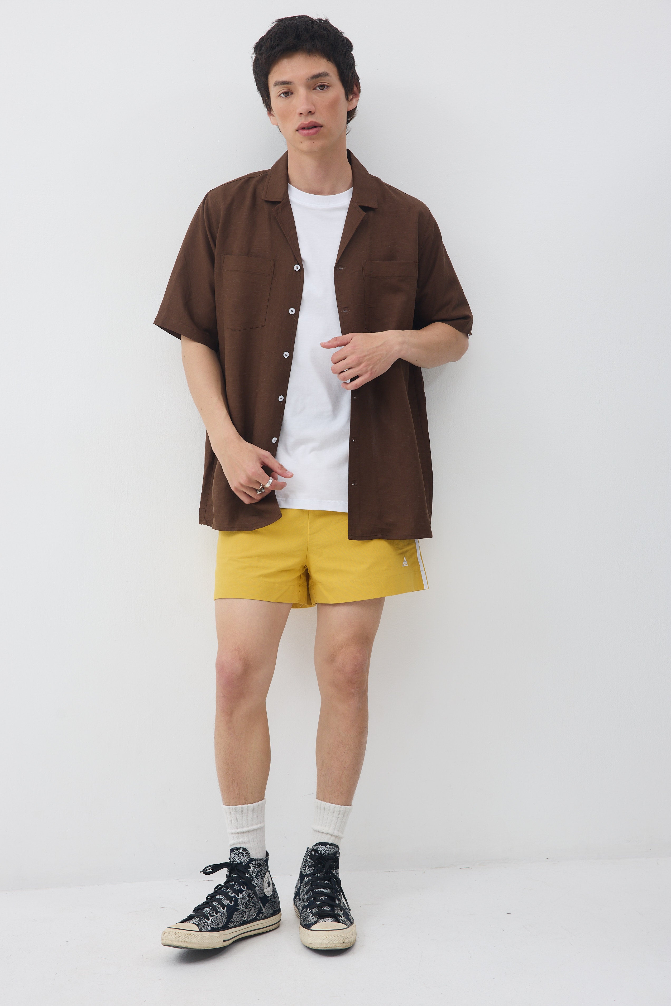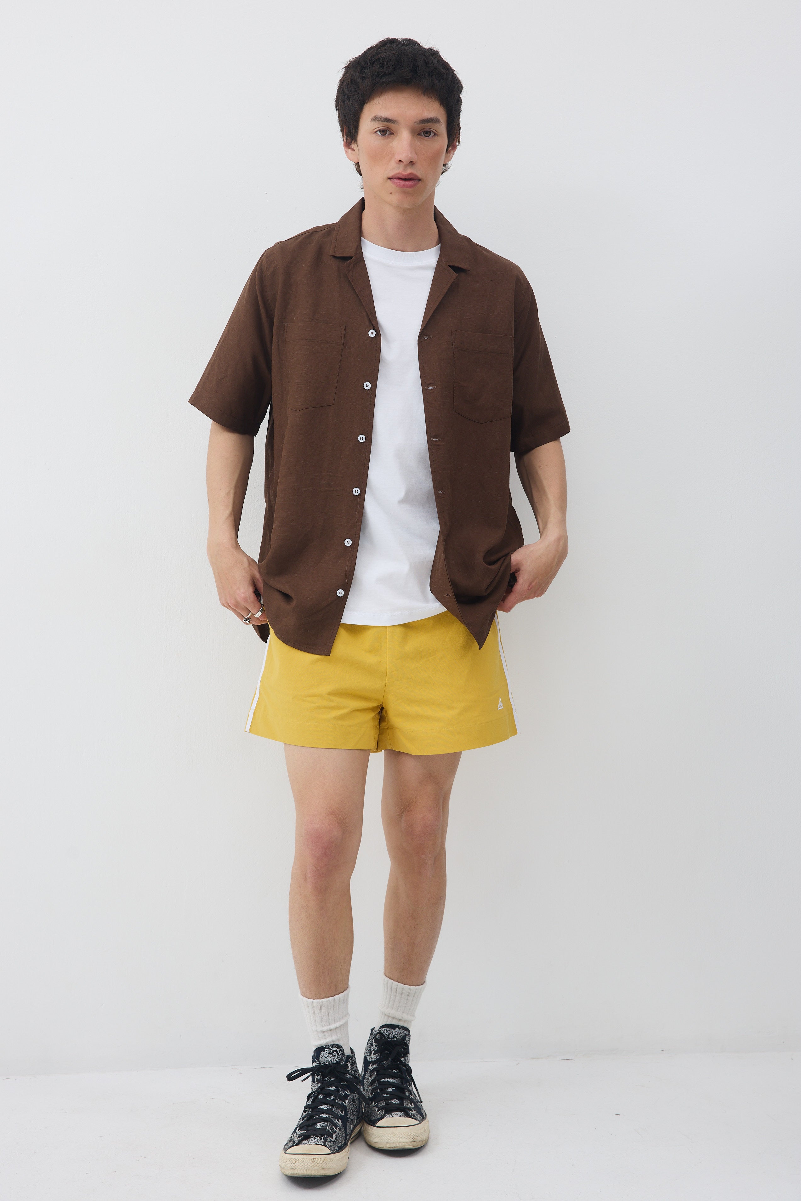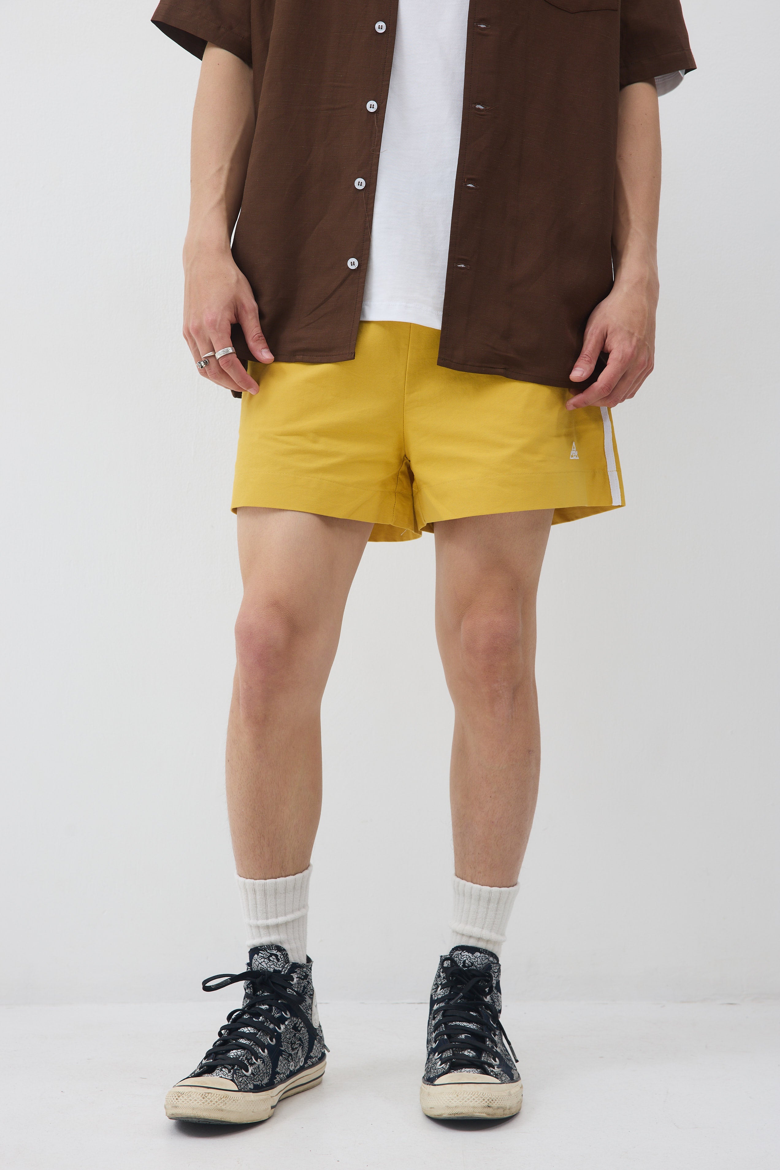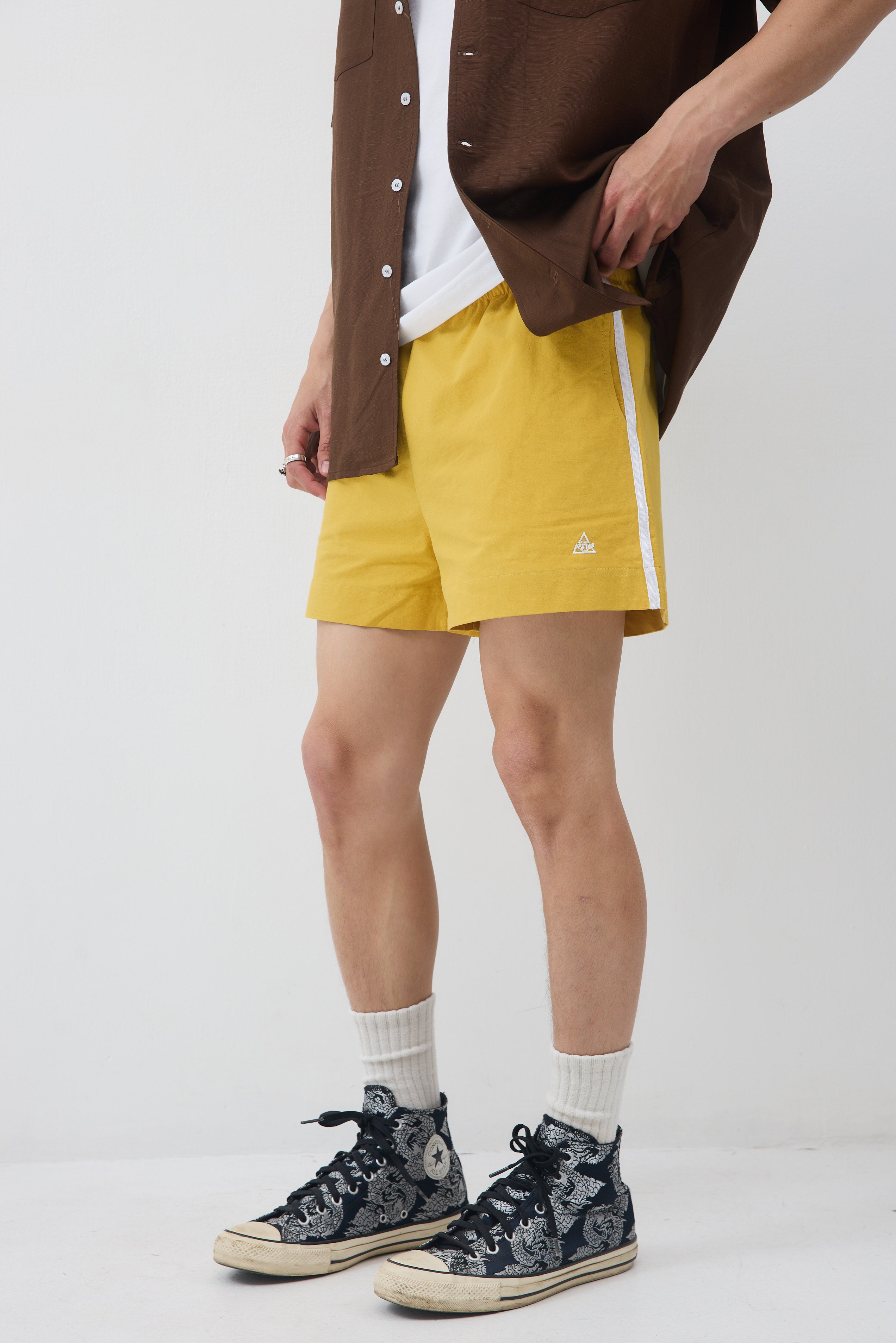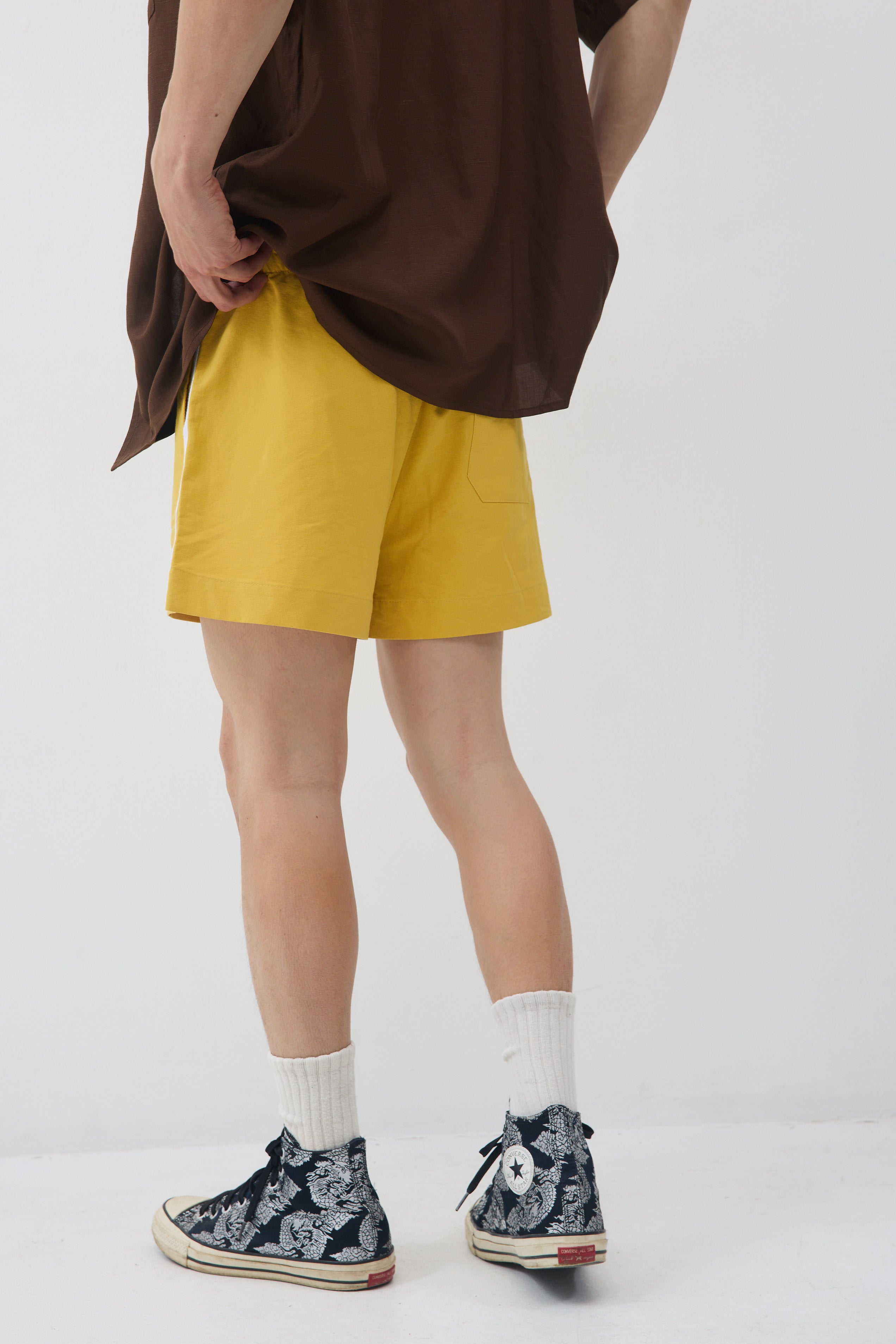 גומי מקיף במותן , שני כיסים ופס לבן בתפר צד, עם כיס אחד אחורי.
