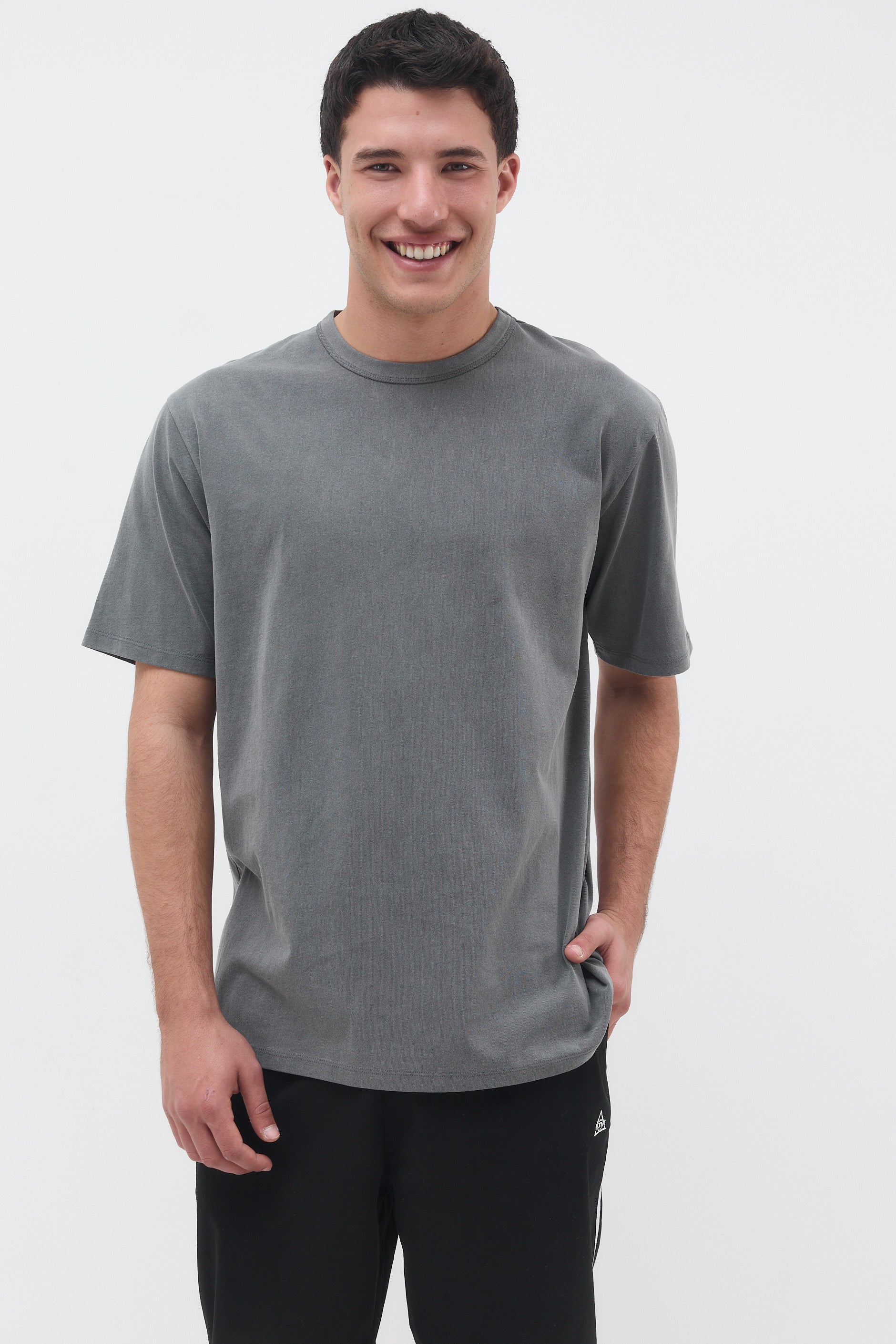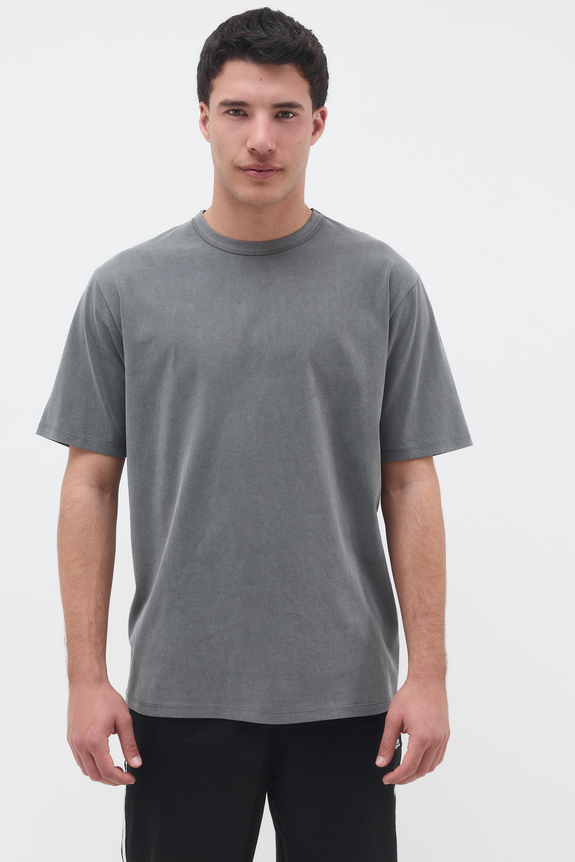 חולצה טי מפיין ריב, תיפורים מודגשים, בגזרה ישרה עם צווארון עגול