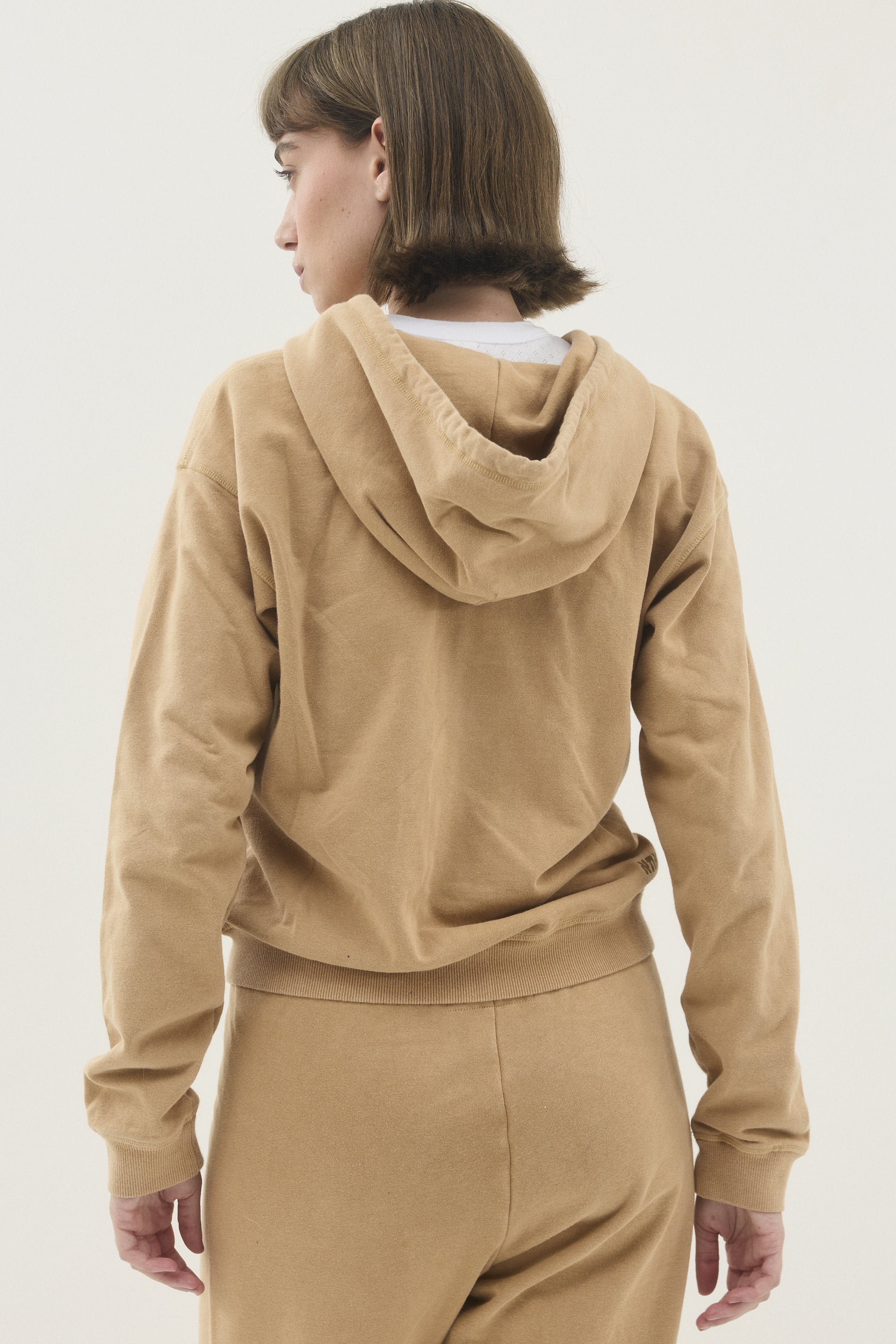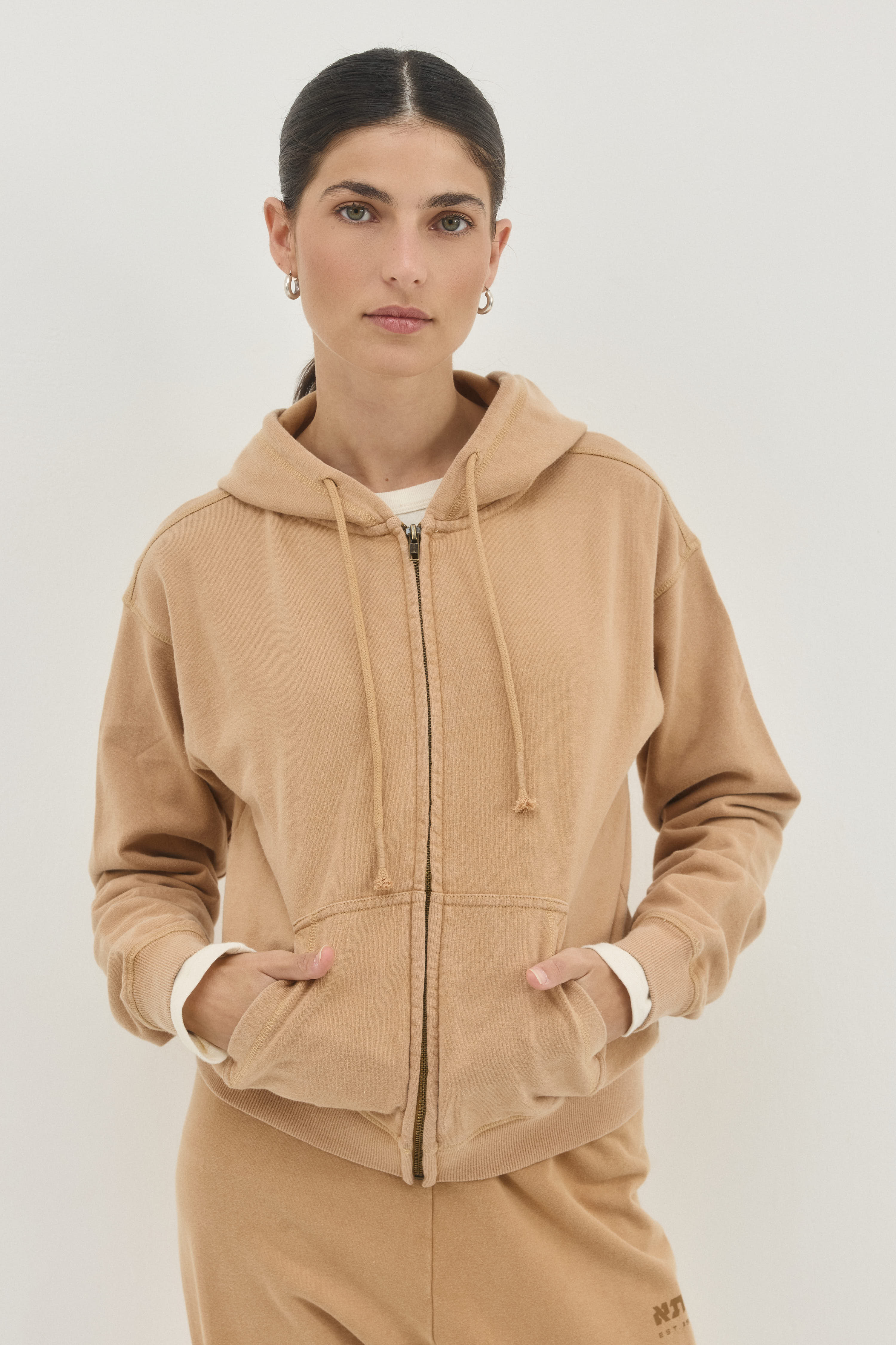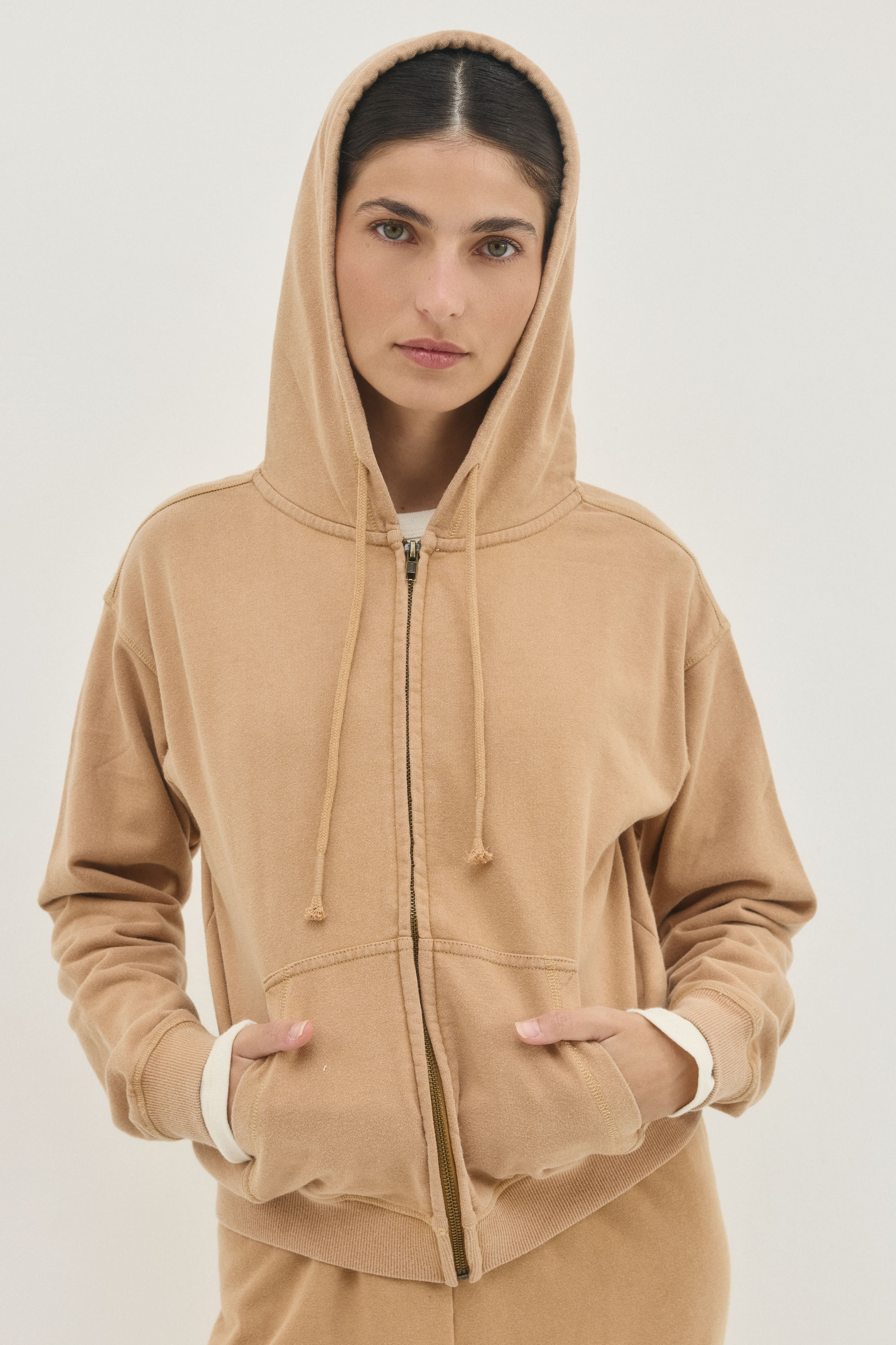 סווטשירט עם קפושון ושרוך בגזרה צמודה ובאורך המותניים