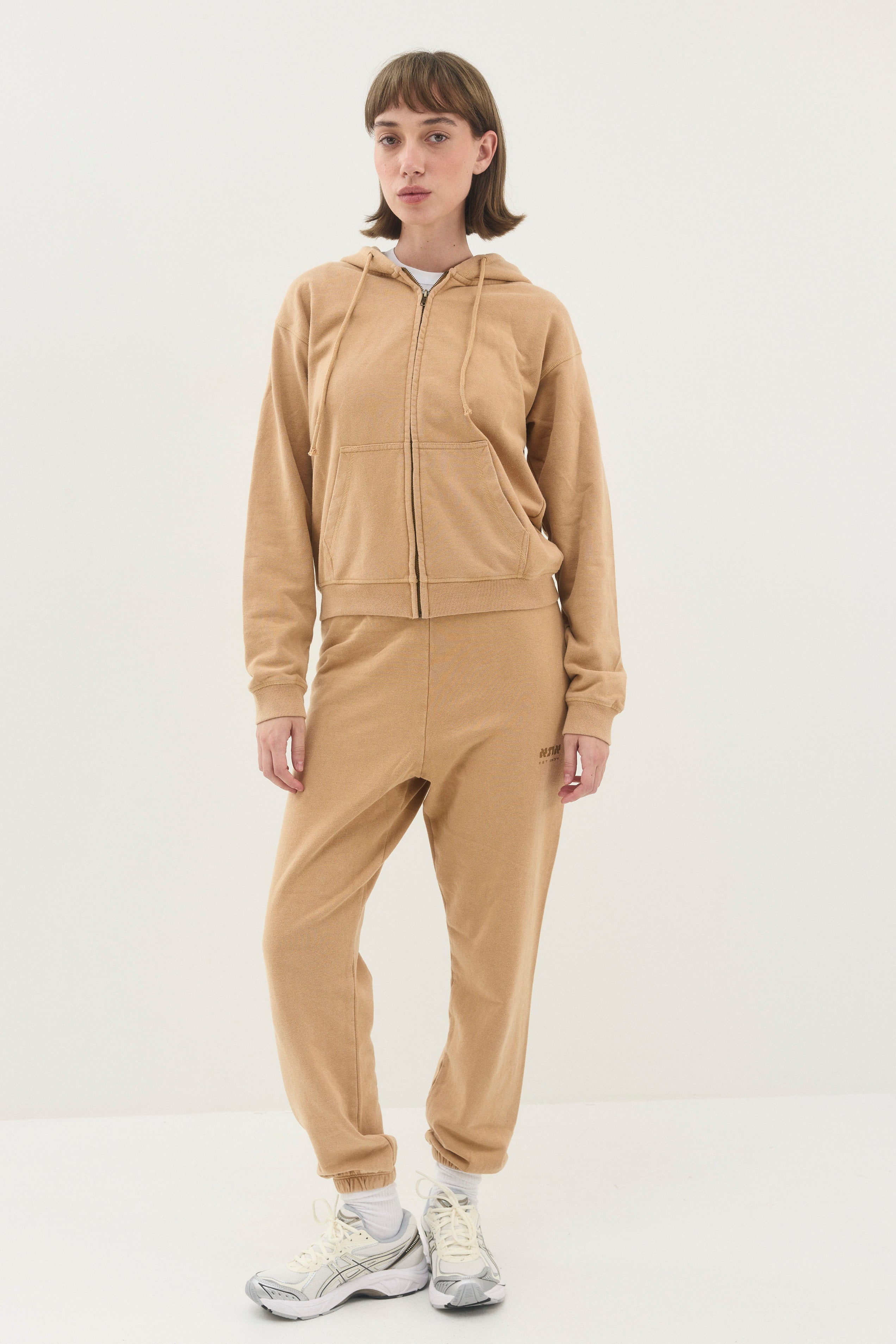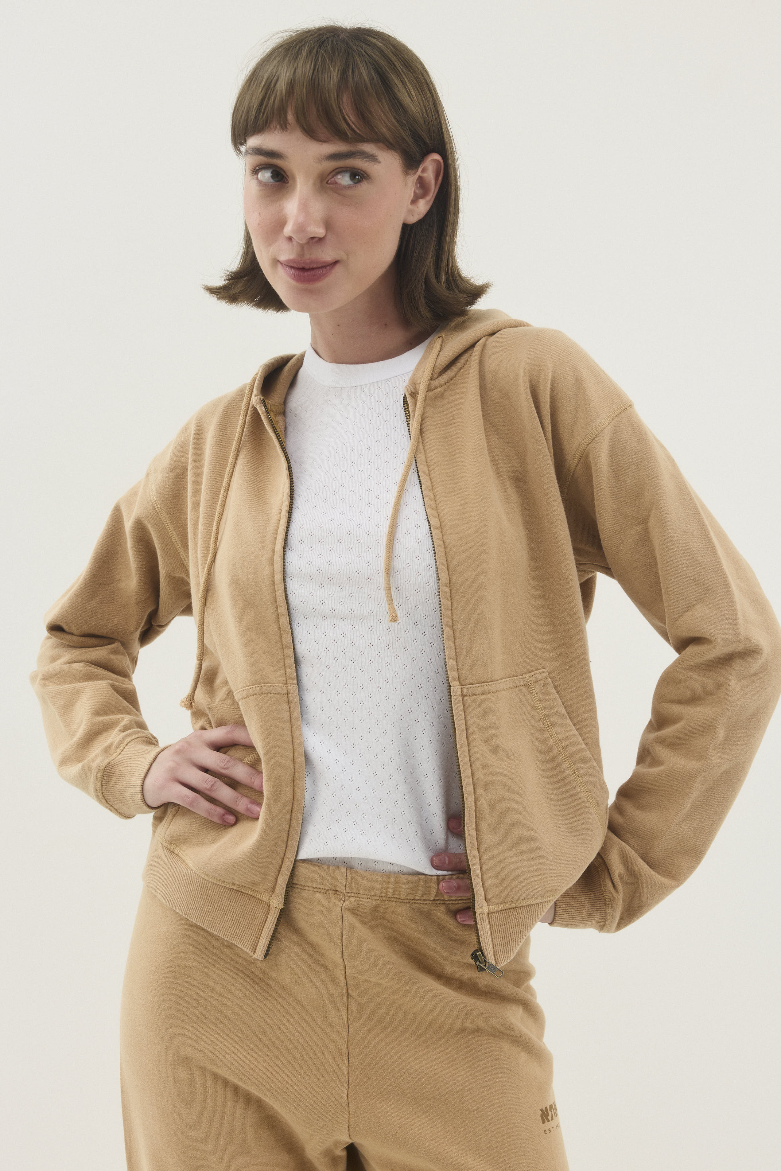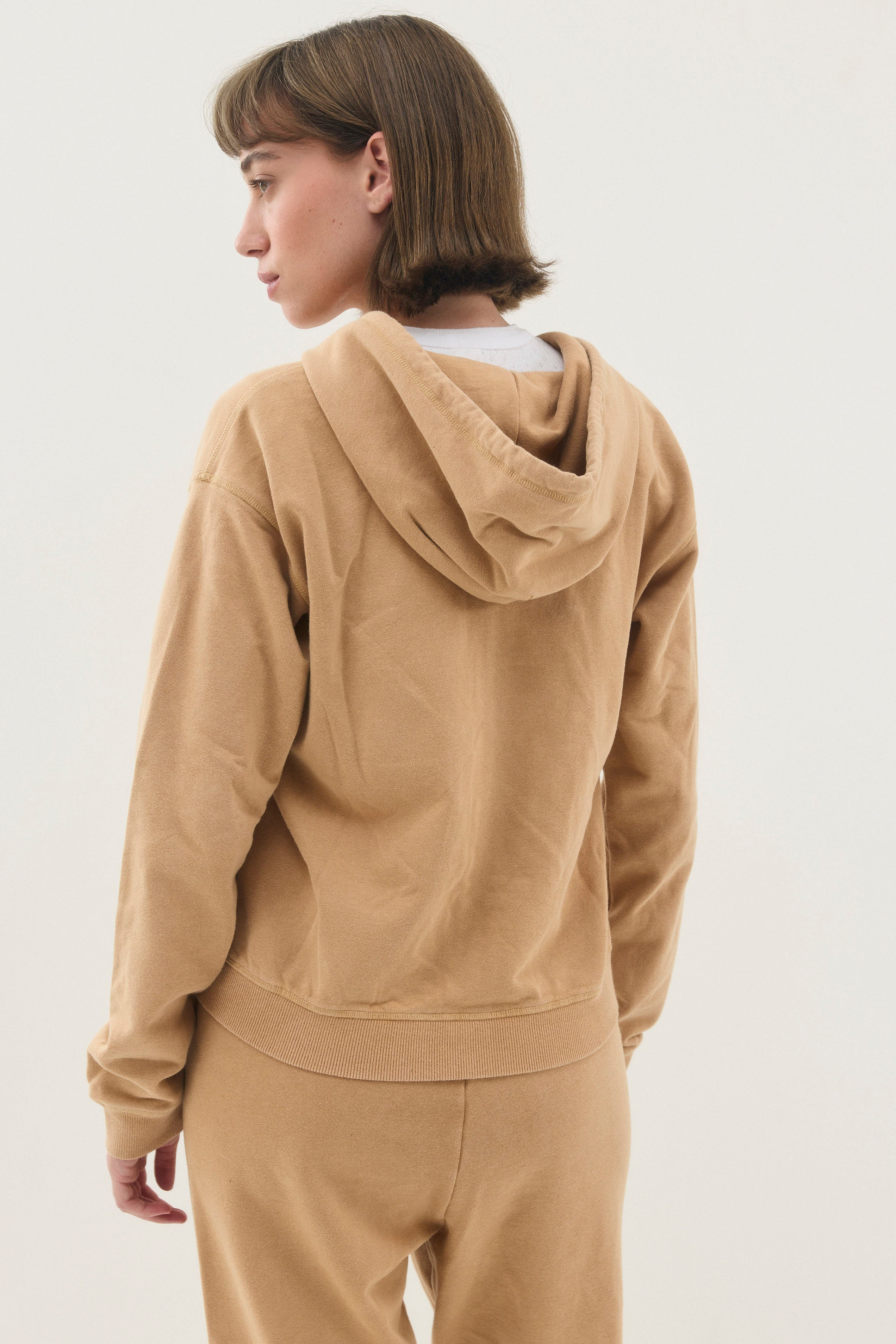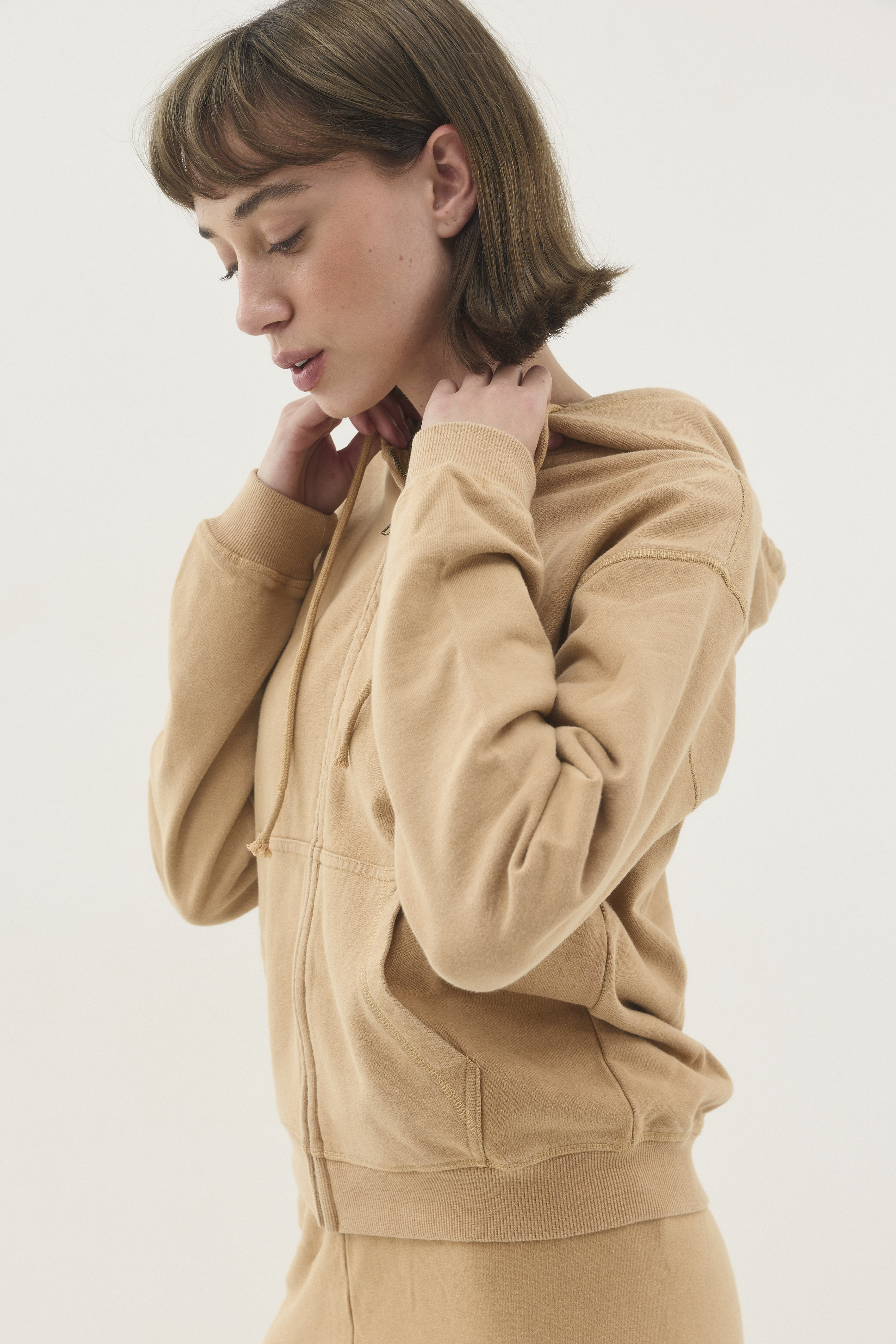 סווטשירט עם קפושון ושרוך בגזרה צמודה ובאורך המותניים