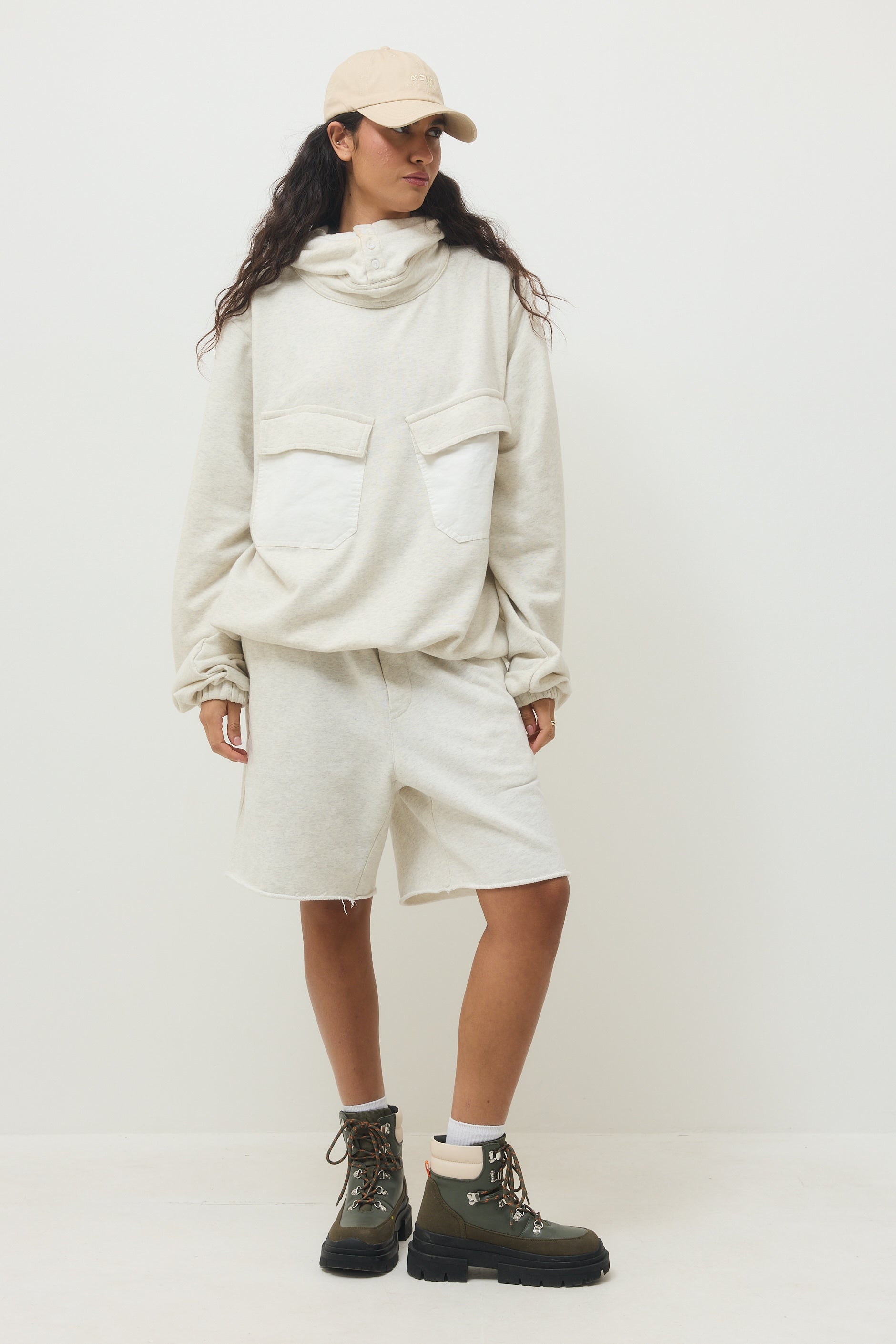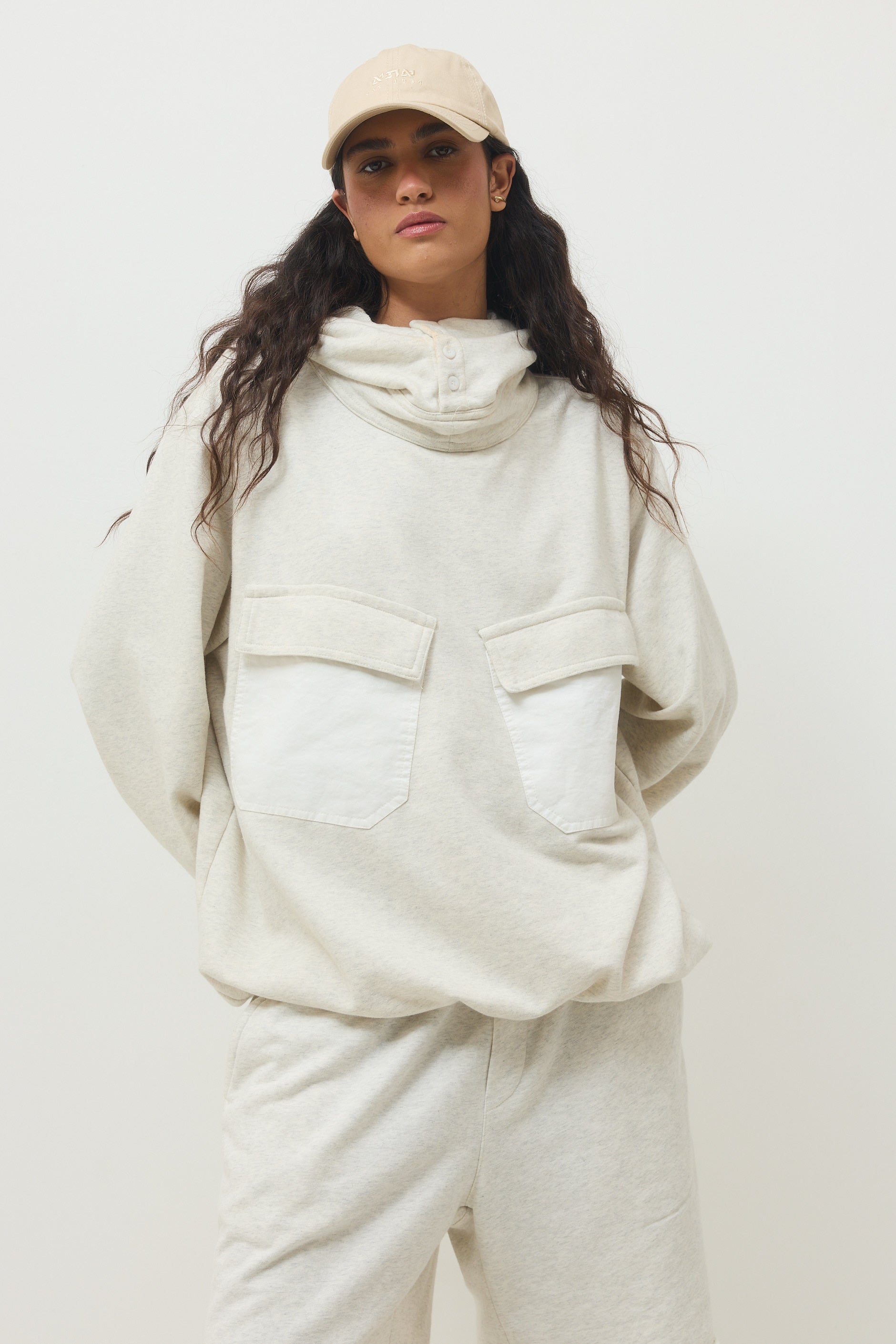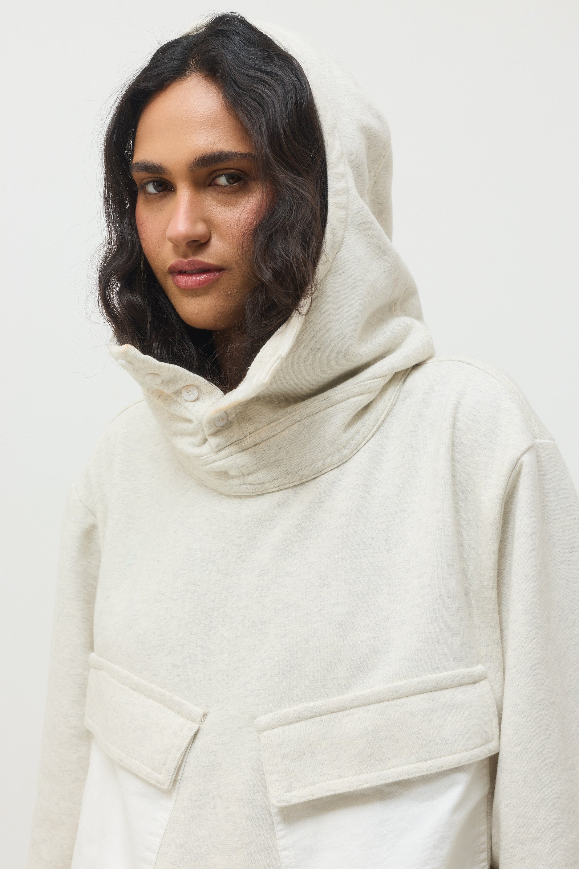 בגזרה משוחררת עם שרוולים ארוכים במיוחד