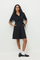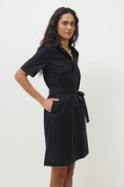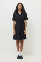 שמלה באורך ברך בגזרה משוחררת ושרוולים קצרים