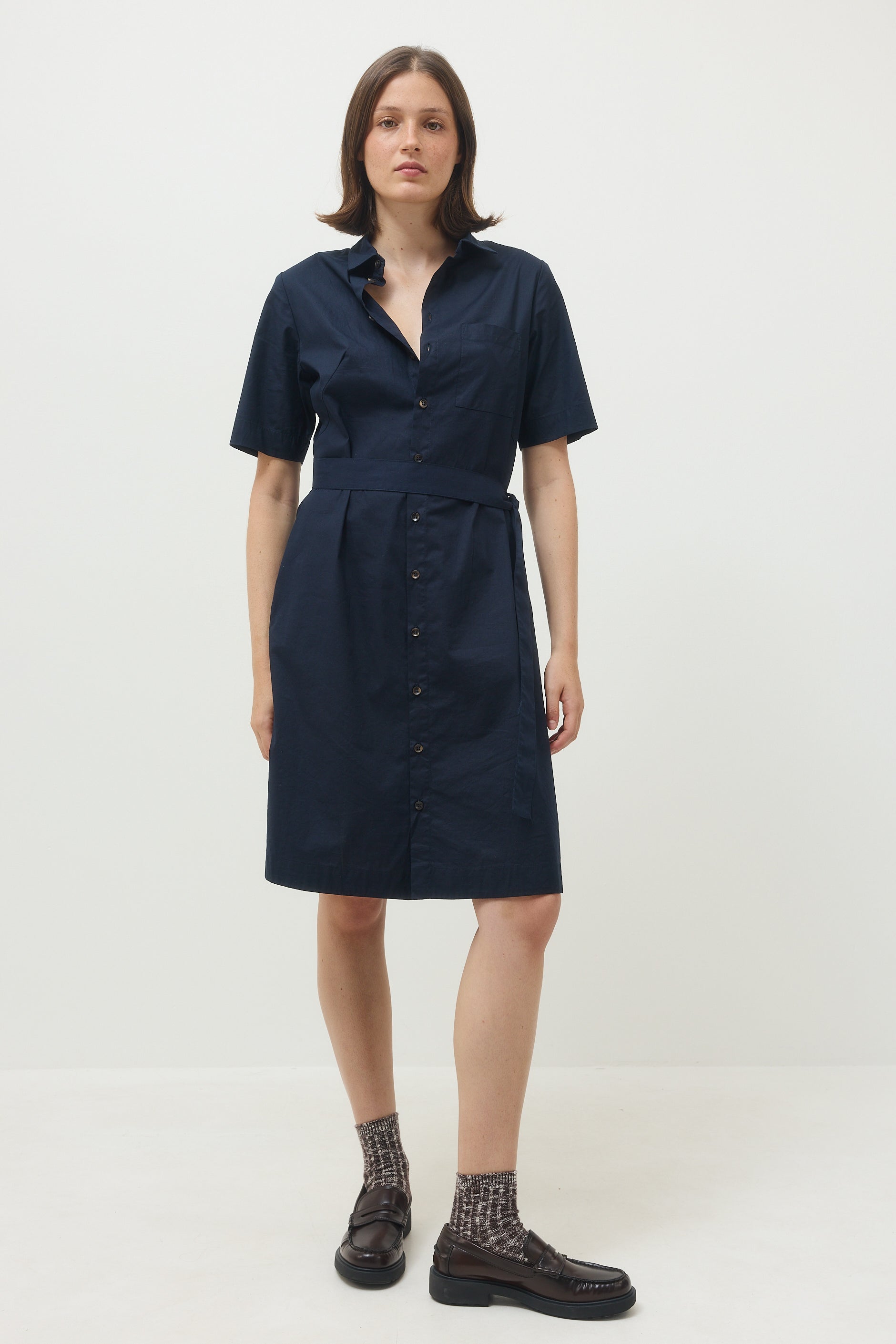 שמלה באורך ברך בגזרה משוחררת ושרוולים קצרים