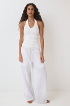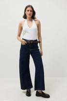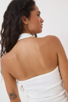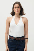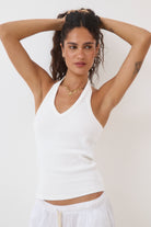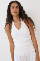 גופייה מבד ריב בגזרת קולר ללא קשירה נלבשת כחולצה קרובה לגוף