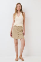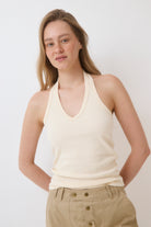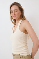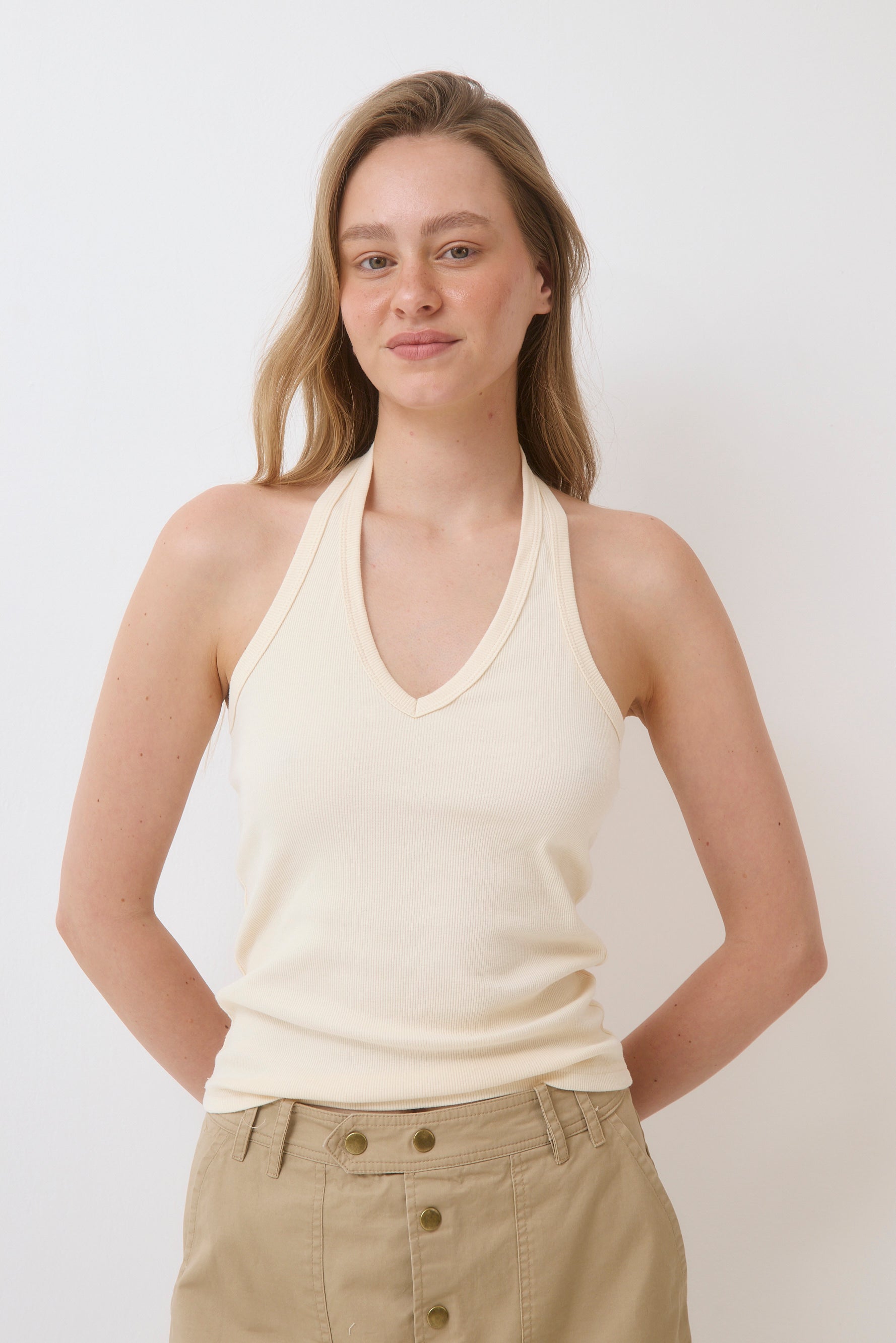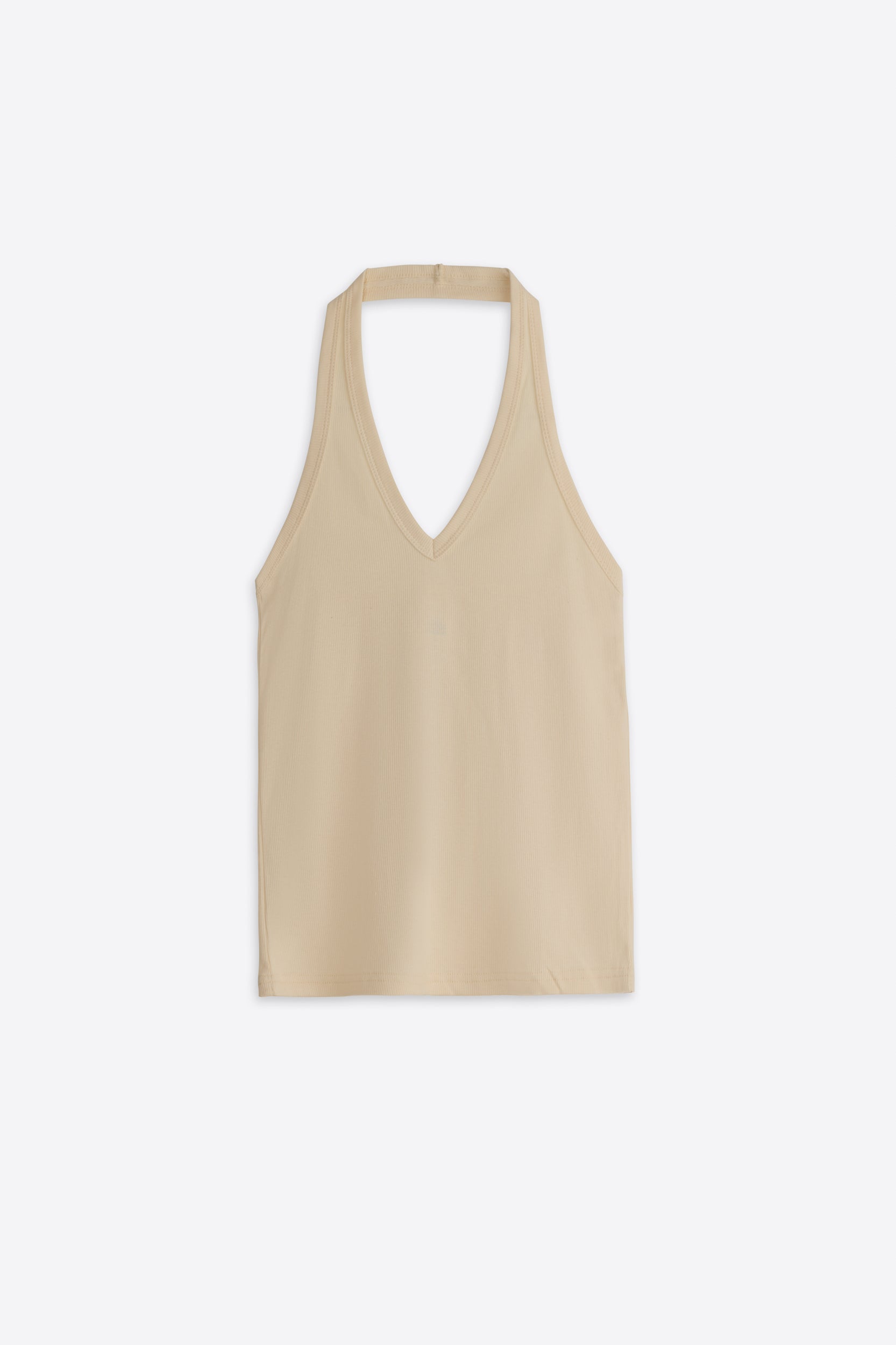 גופייה מבד ריב בגזרת קולר ללא קשירה נלבשת כחולצה קרובה לגוף
