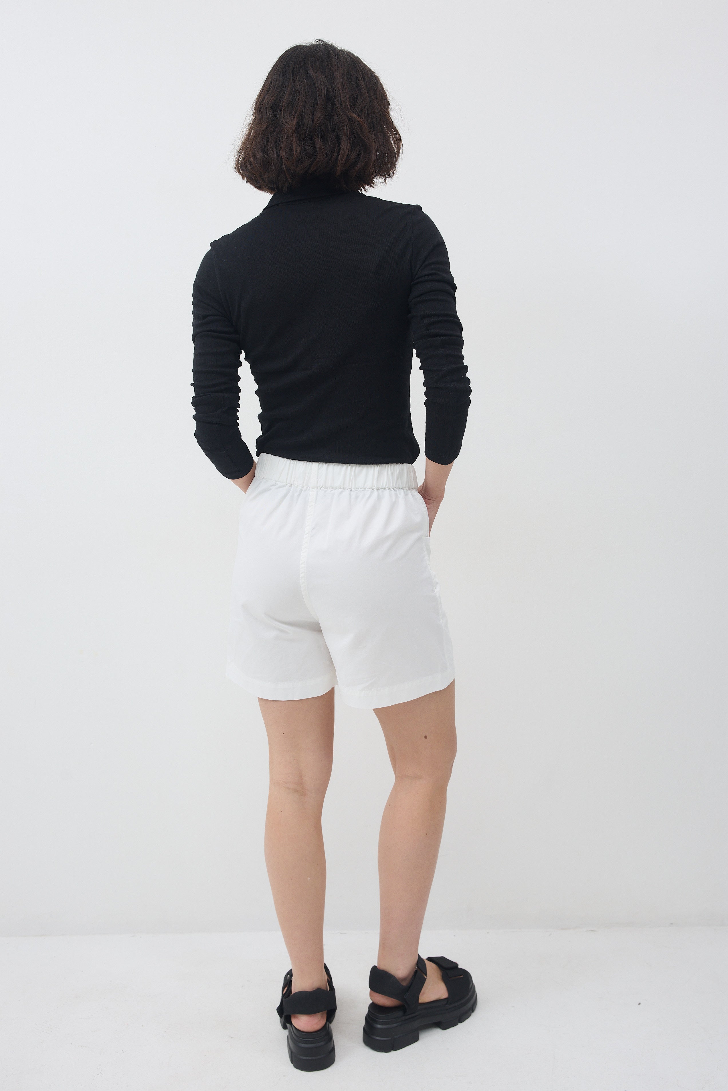 מכנסיים בגזרה גבוהה משוחררים עם גומי סביב המותניים