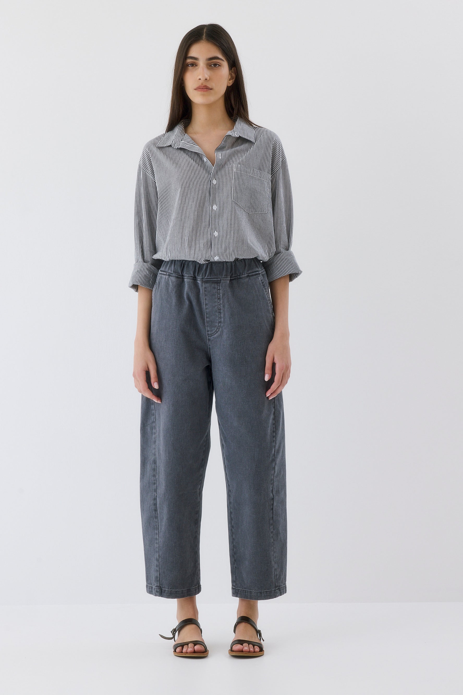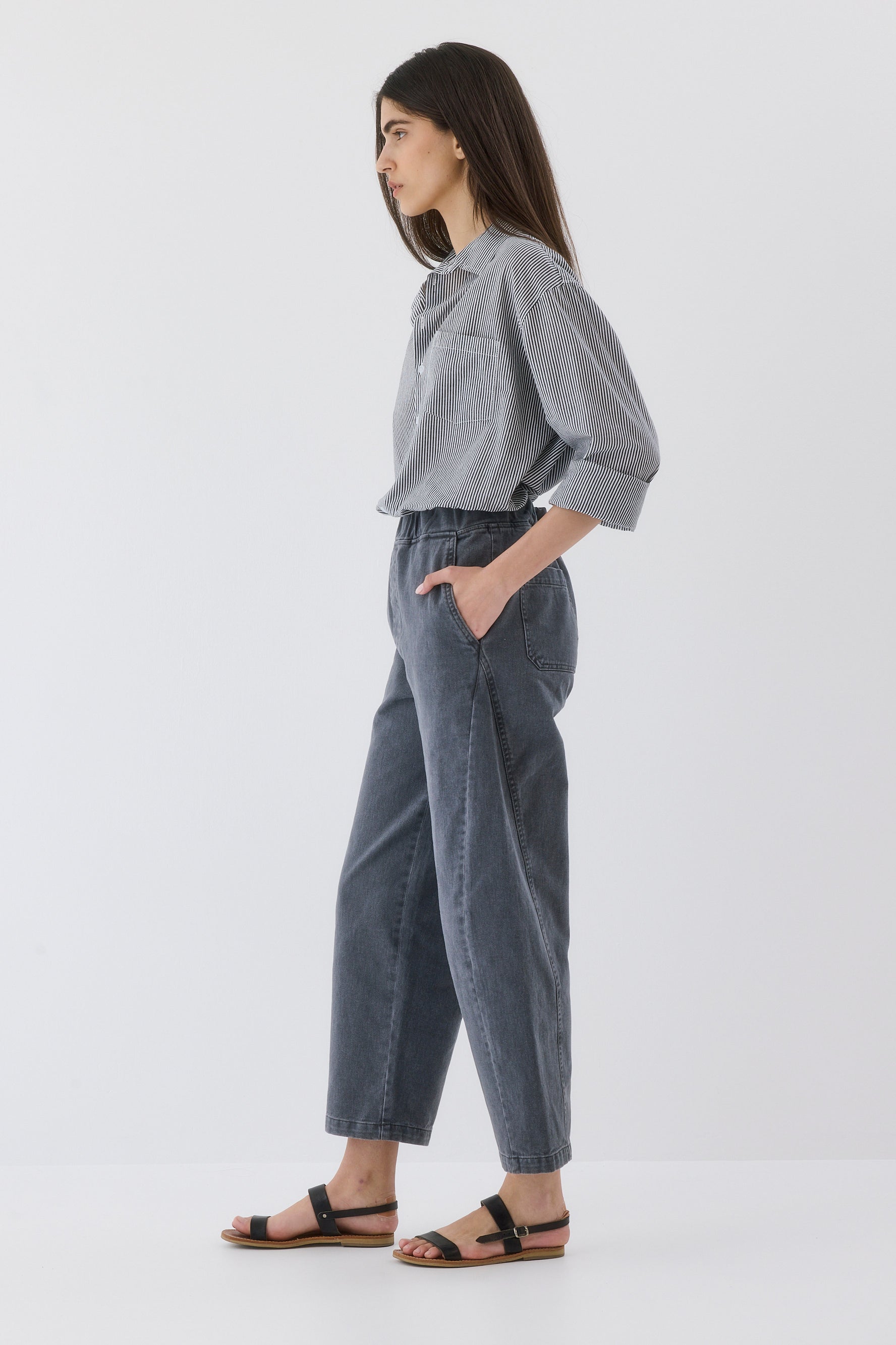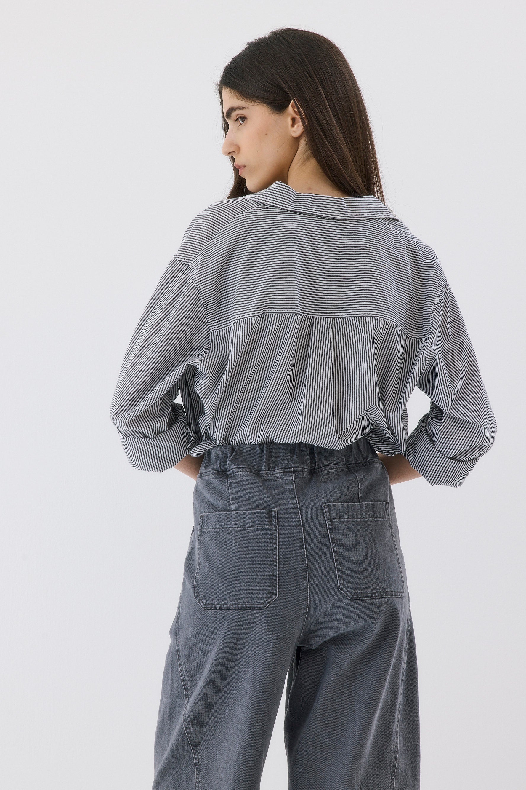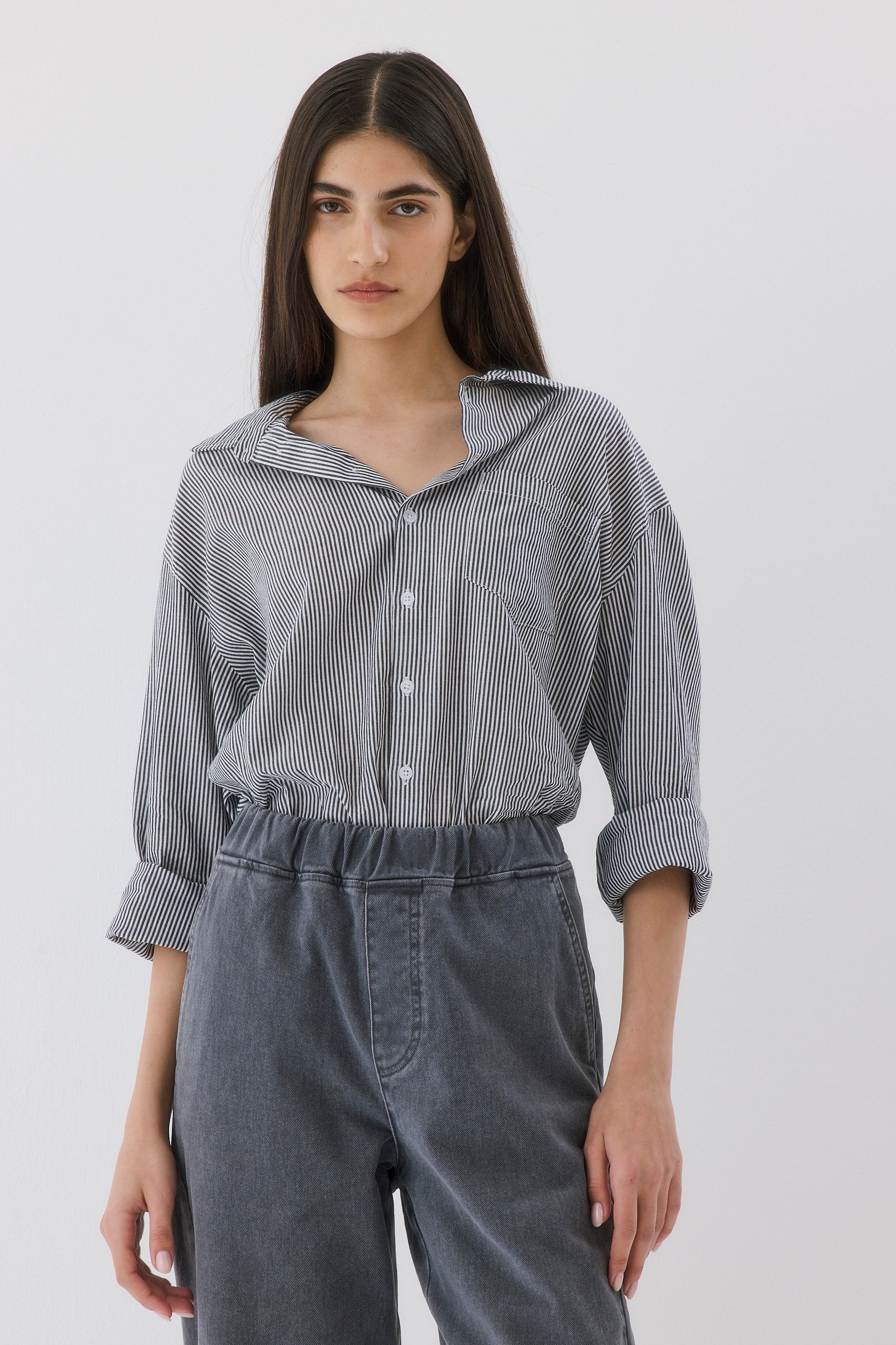- חולצה בגזרה צמודה עם שרוולים ארוכים וצווארון גברי.