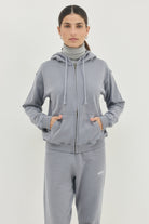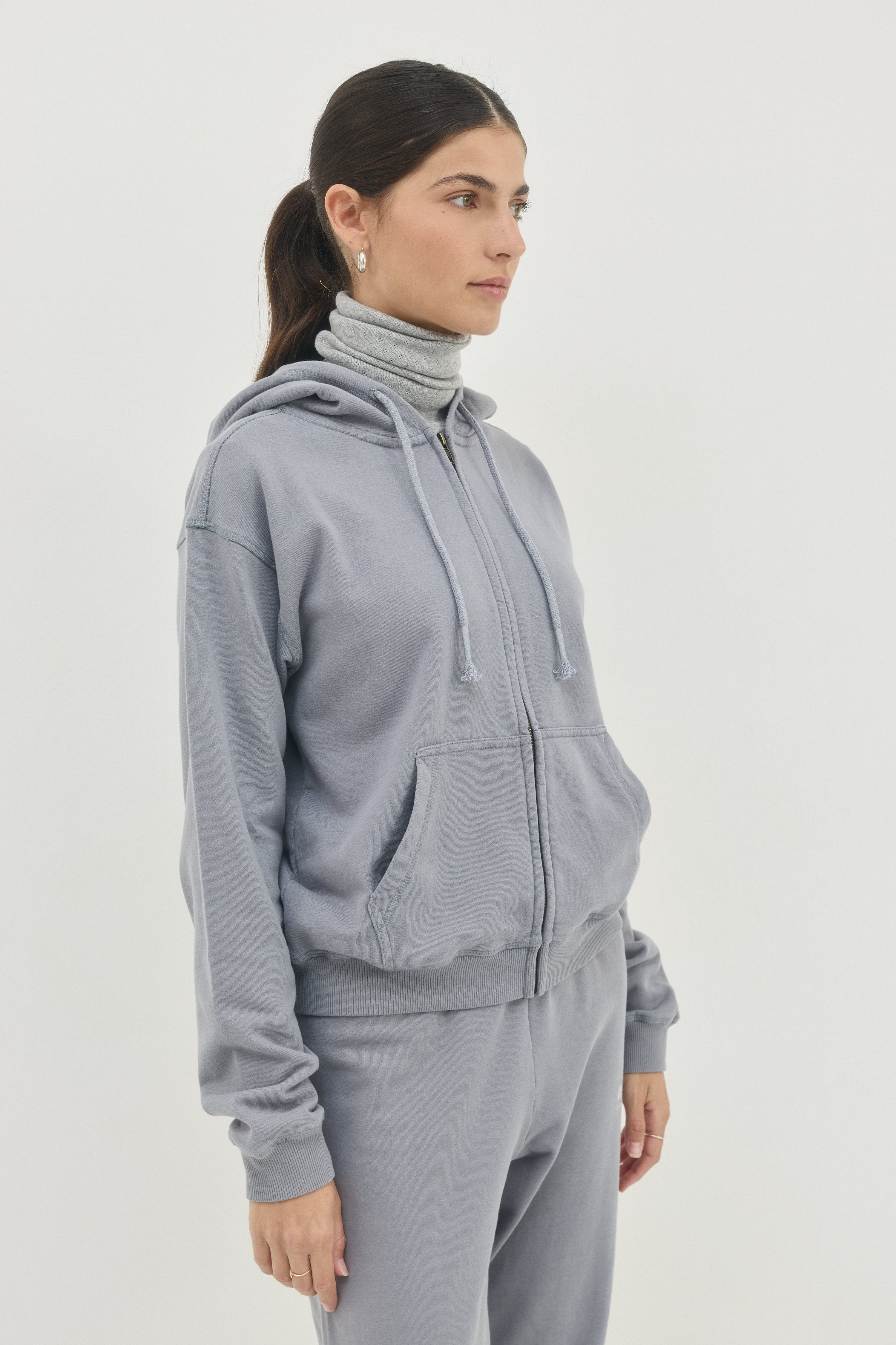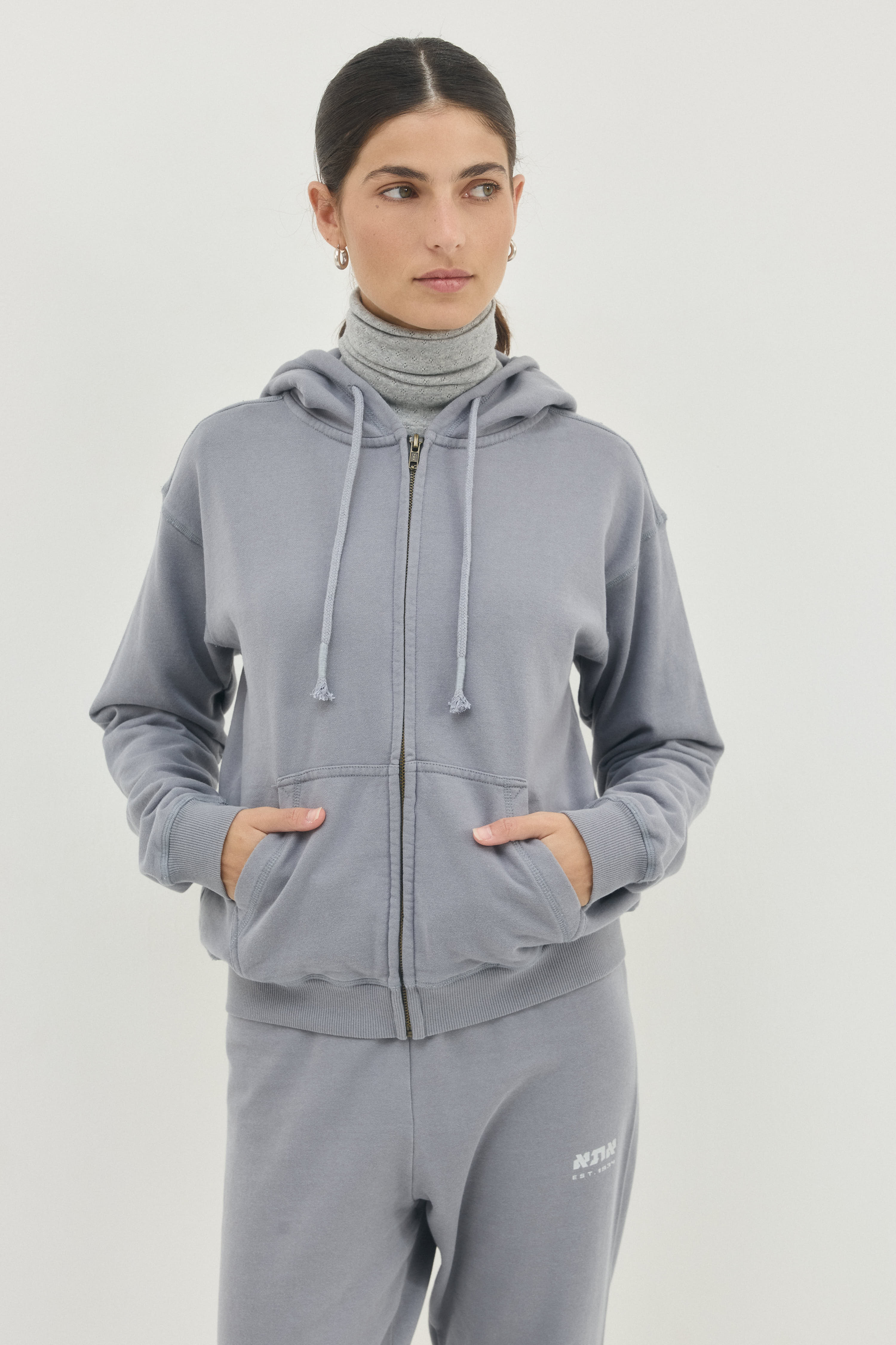 סווטשירט עם קפושון ושרוך בגזרה צמודה ובאורך המותניים