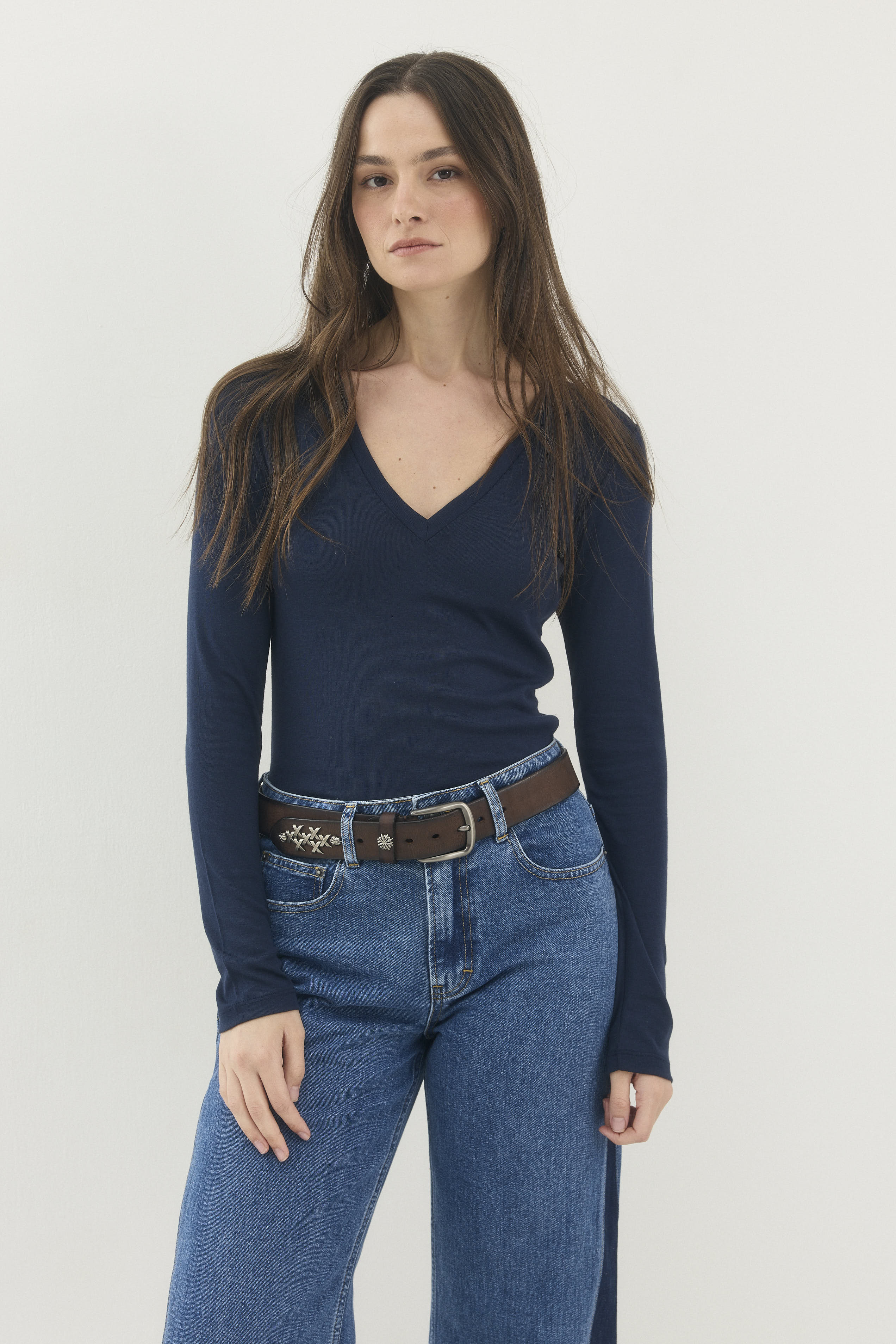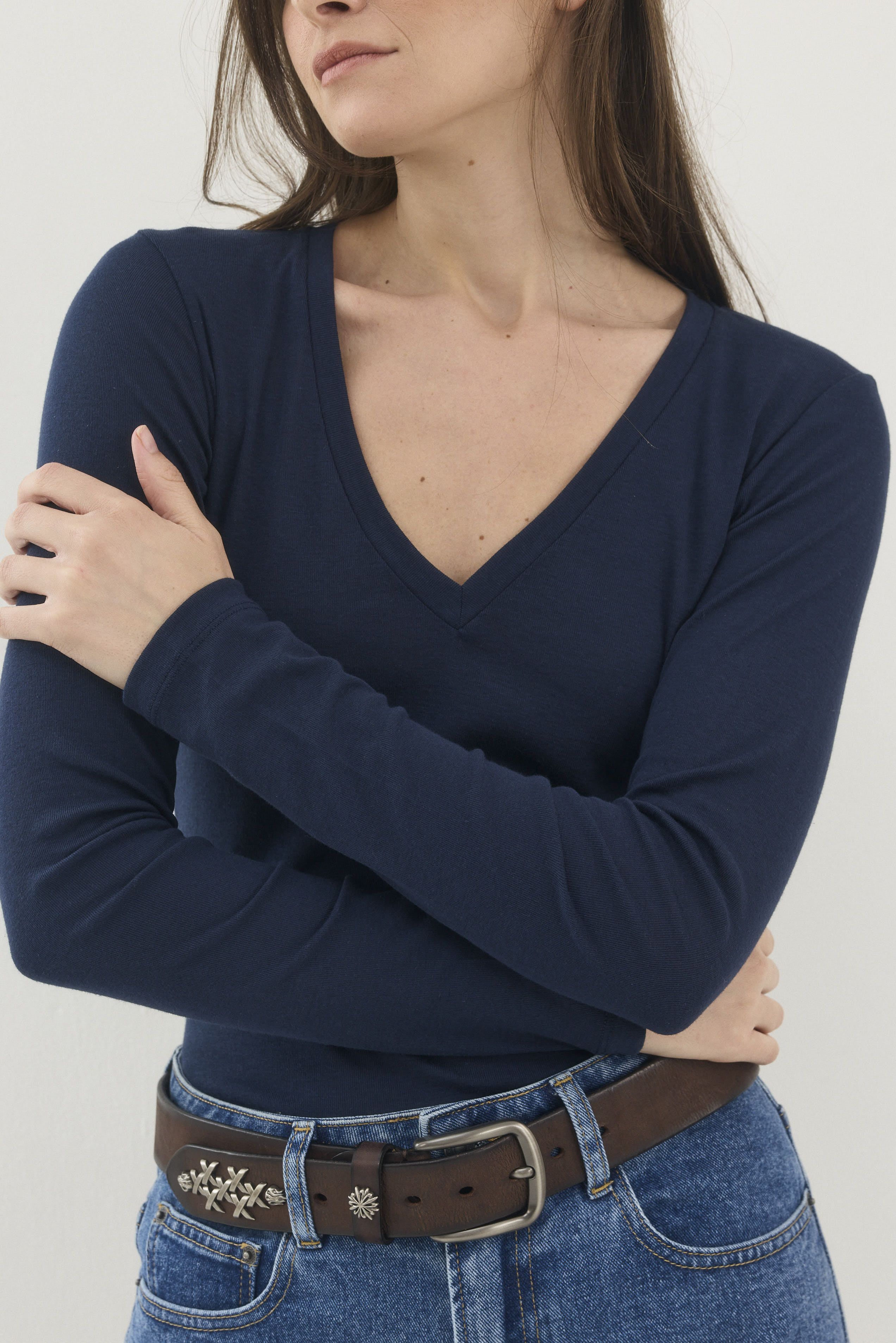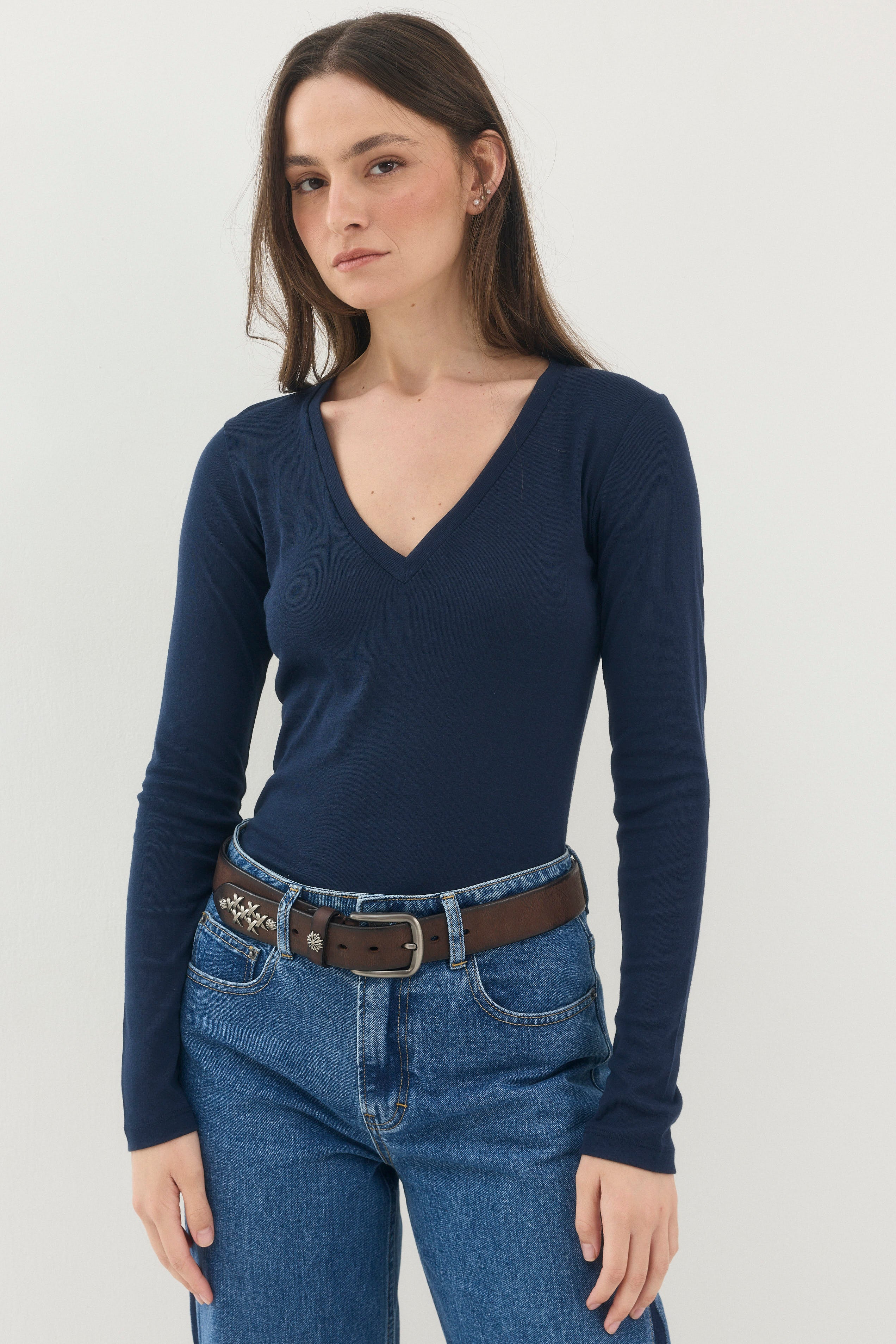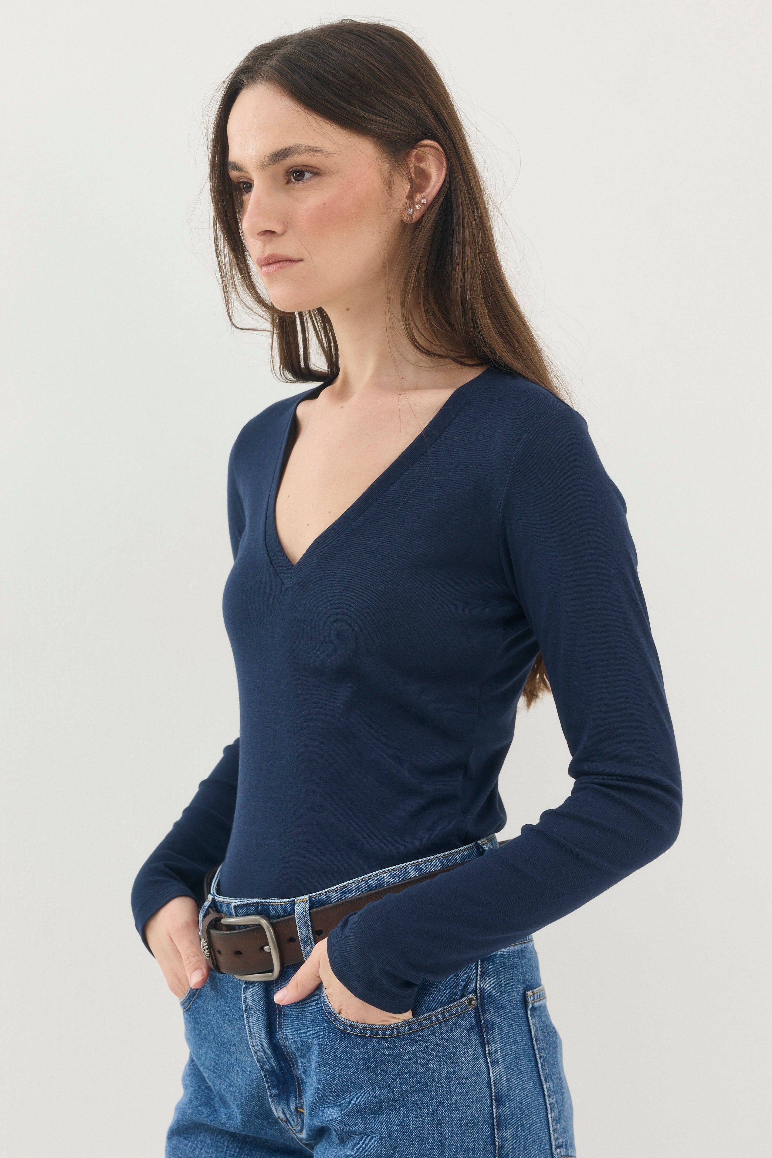 .חולצה דקה ונעימה צמודה לגוף צווארון וי