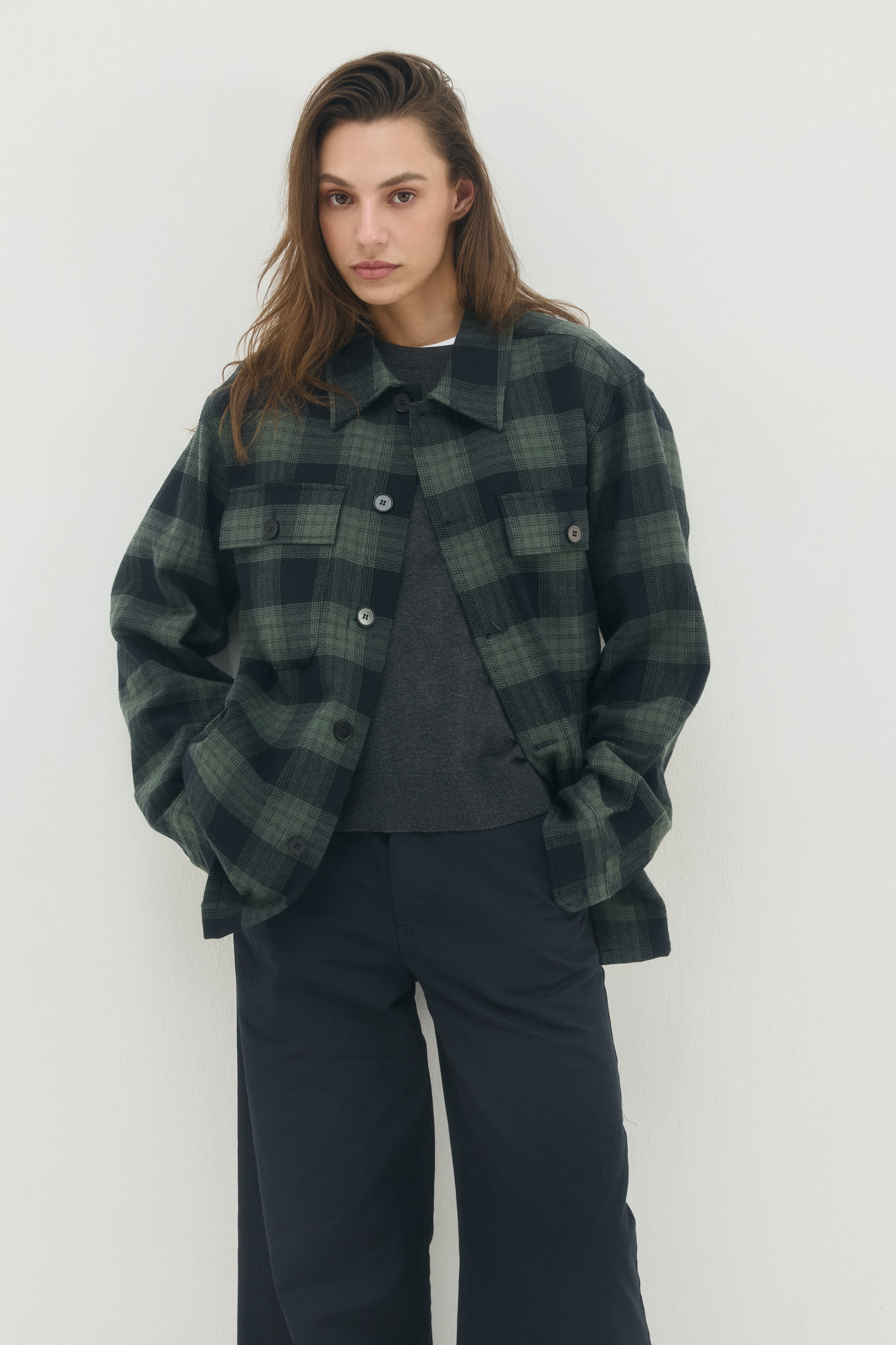 זקט בגזרת אובר סייז עם שני כיסים עליונים מכופתרים ושני כיסי צד