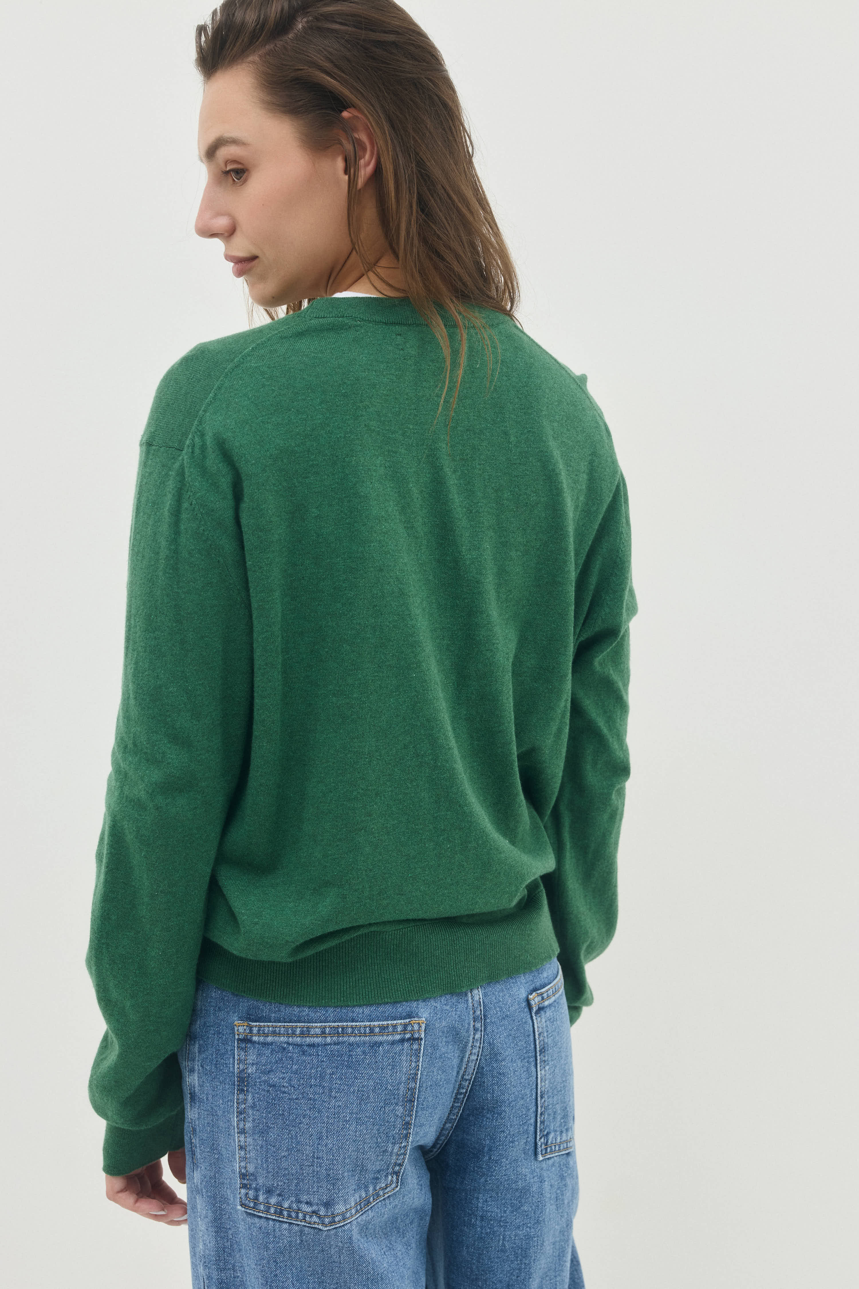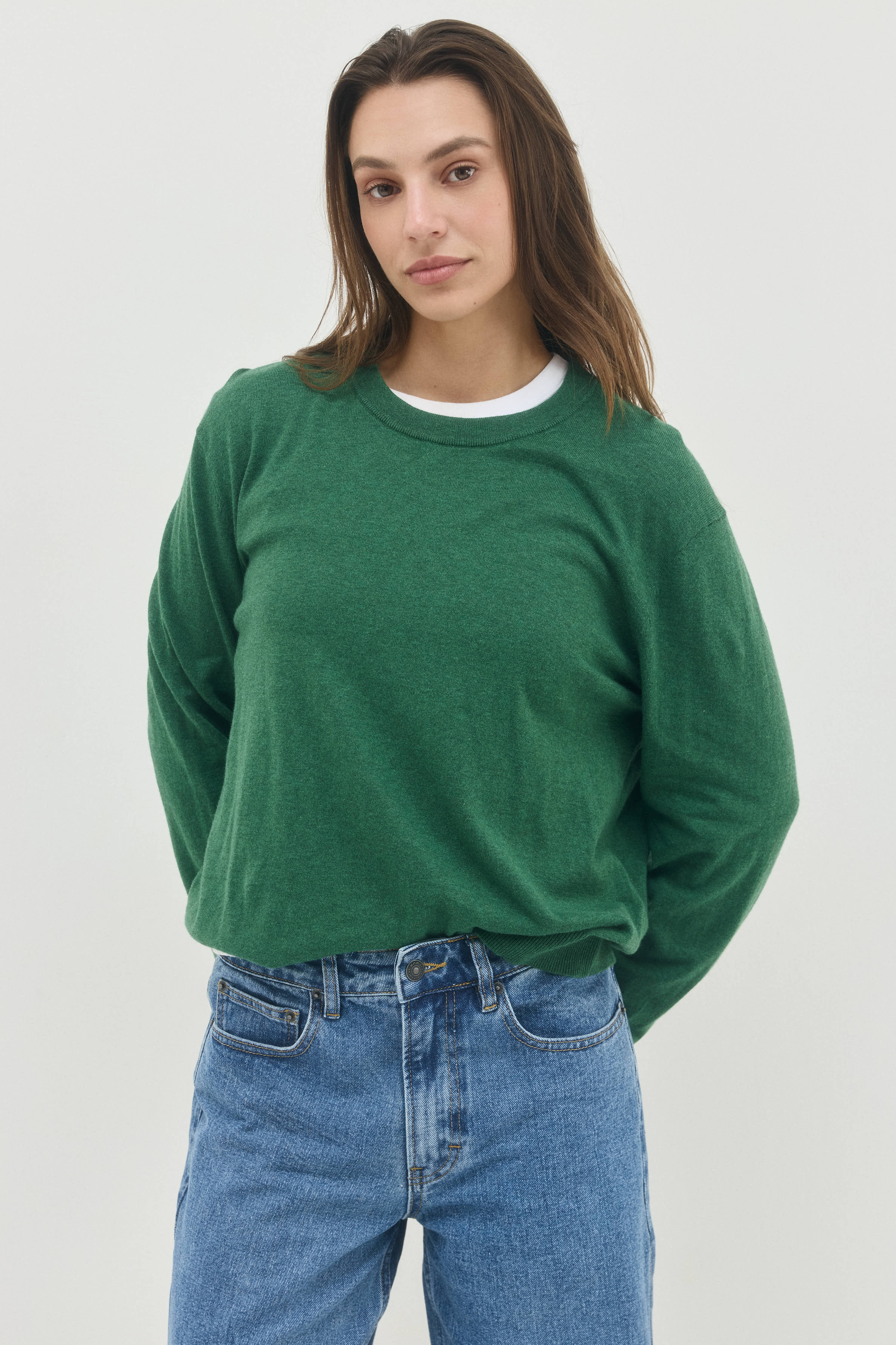 סריג שרוול ארוך  בגזרה מרובעת עם מפתח צאוור ניקי .