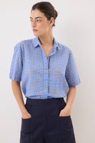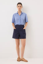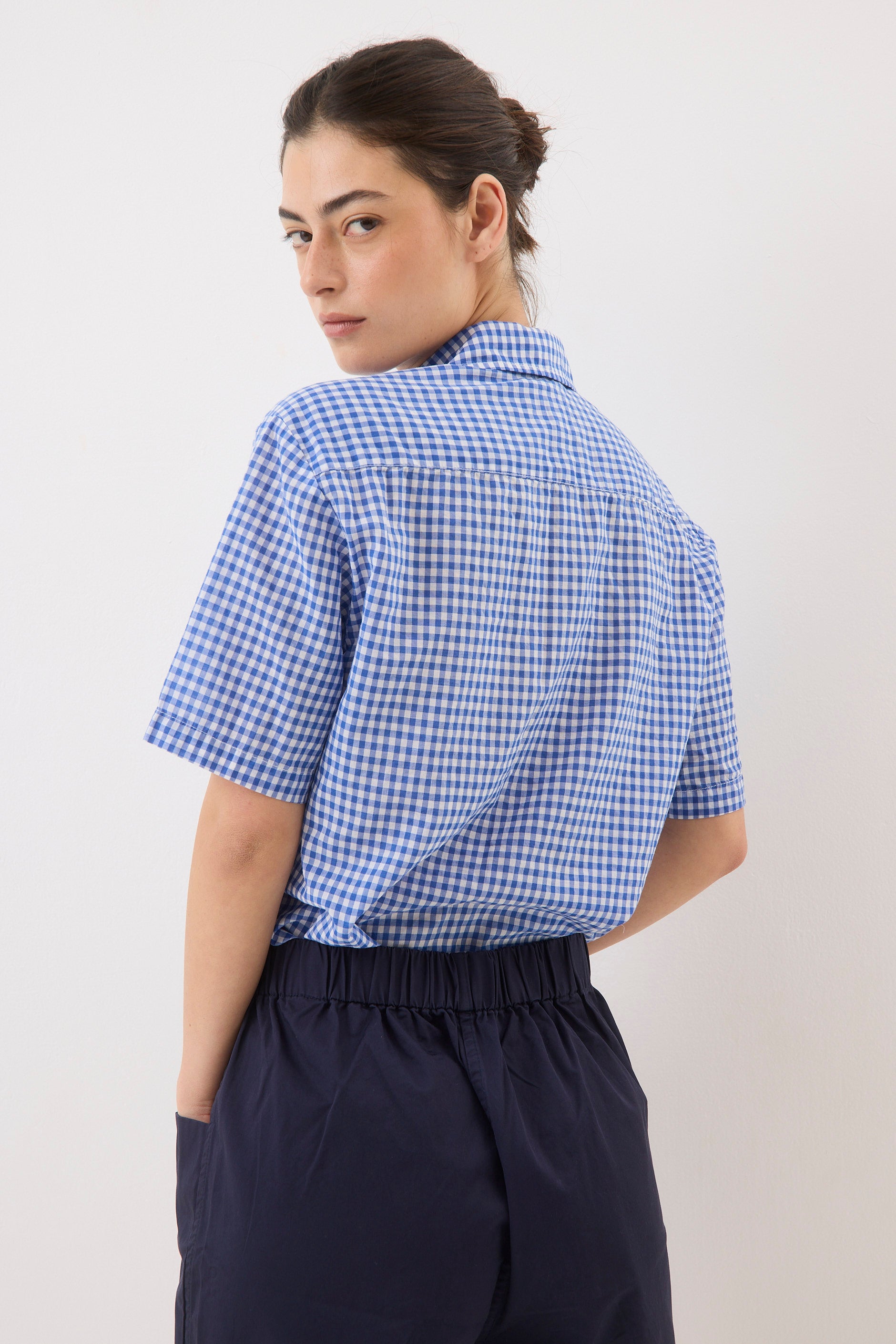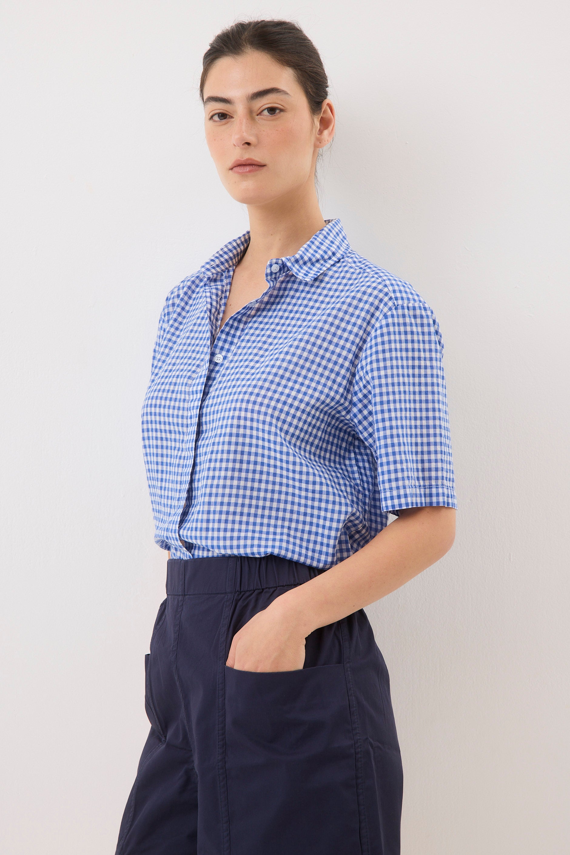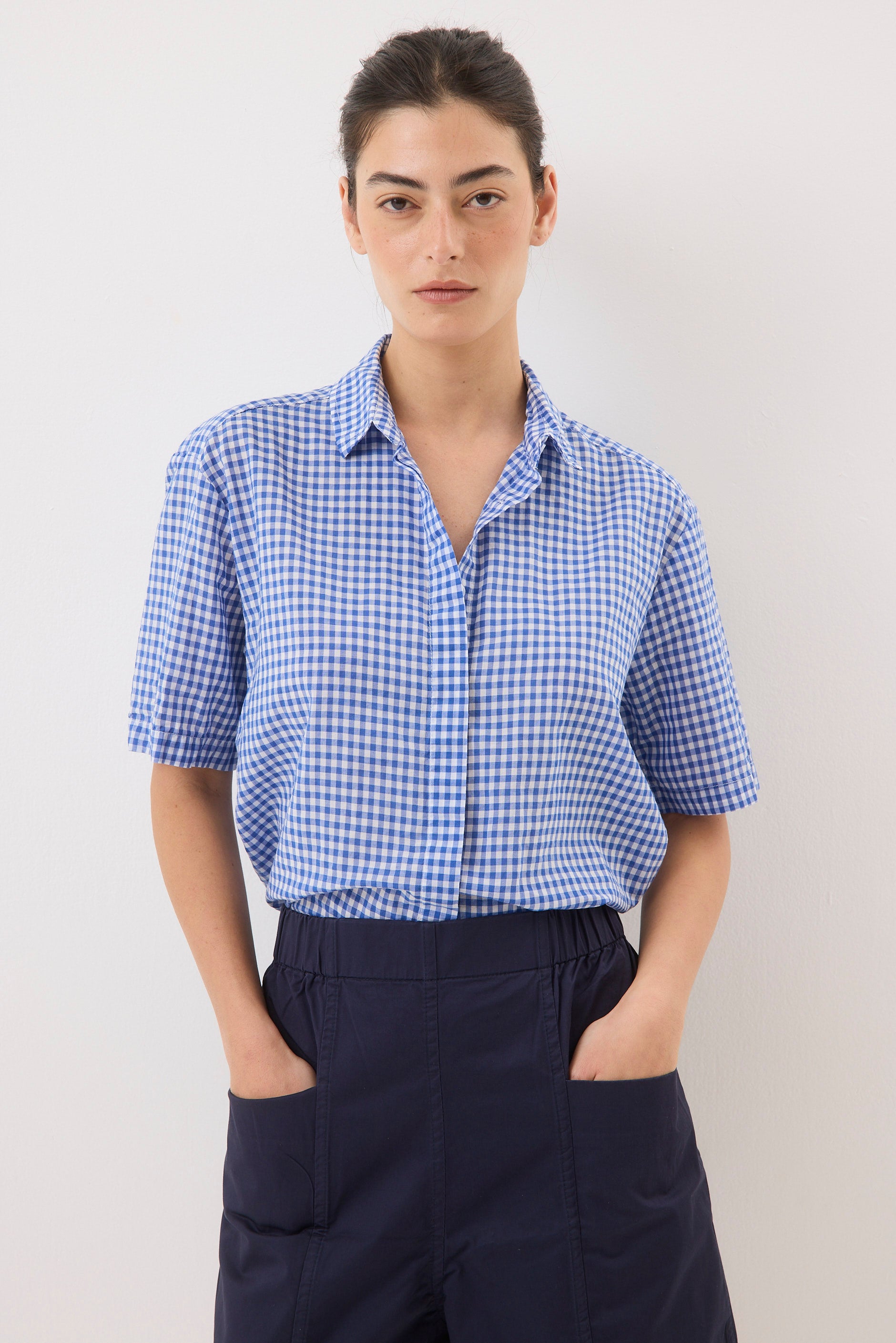 חולצה מכופתרת בגזרה ישרה עם כפתורים נסתרים ,שרוול קצר.
