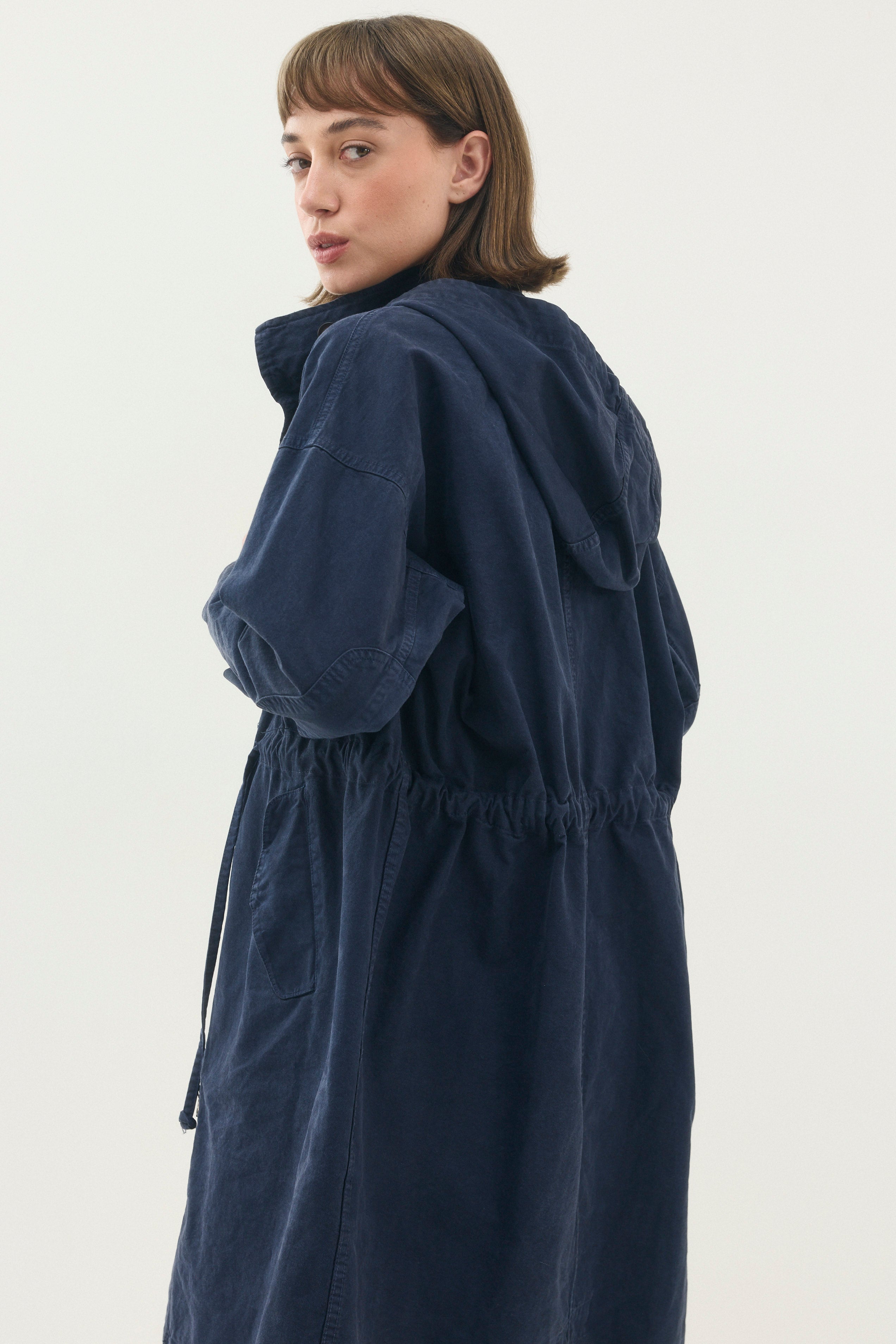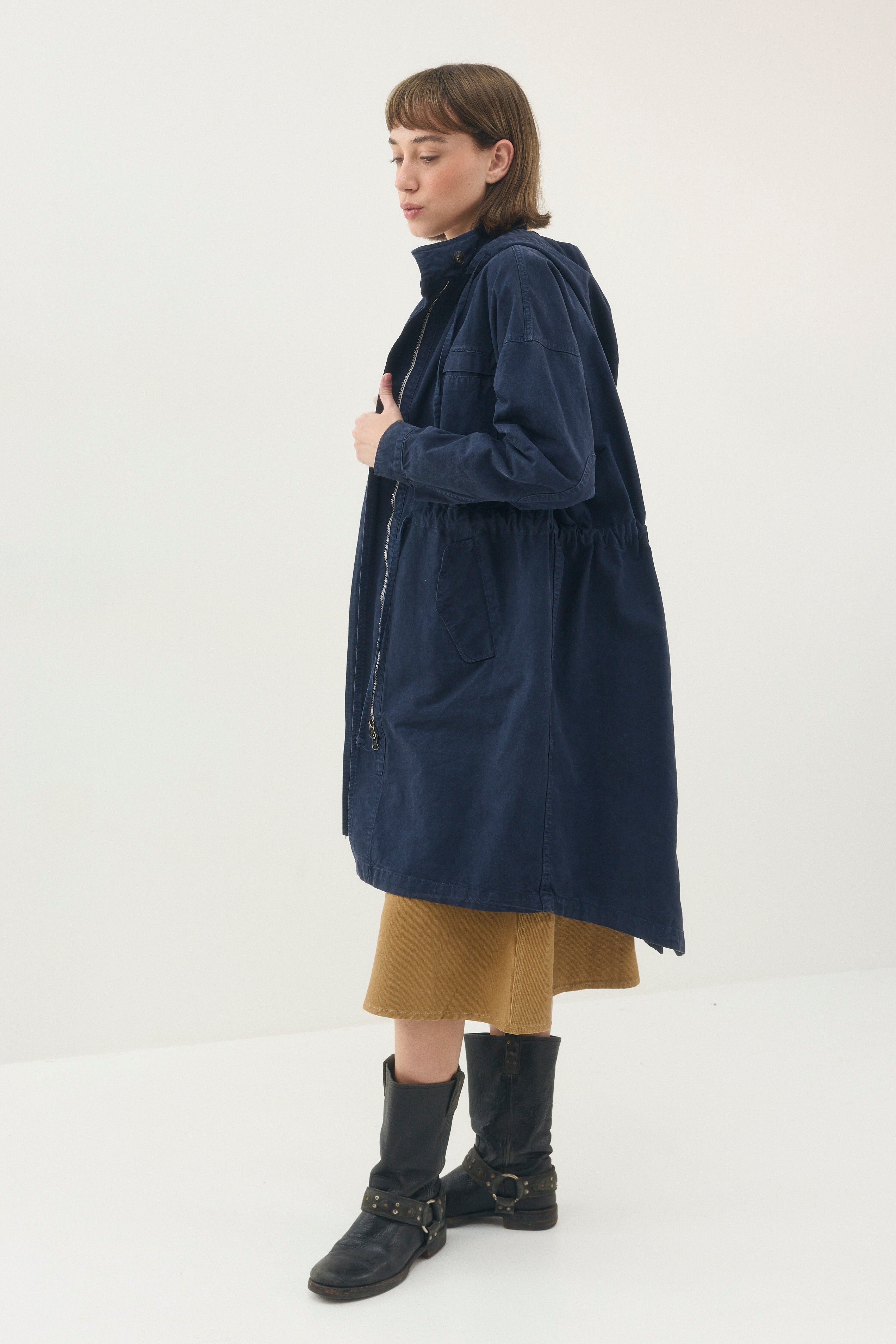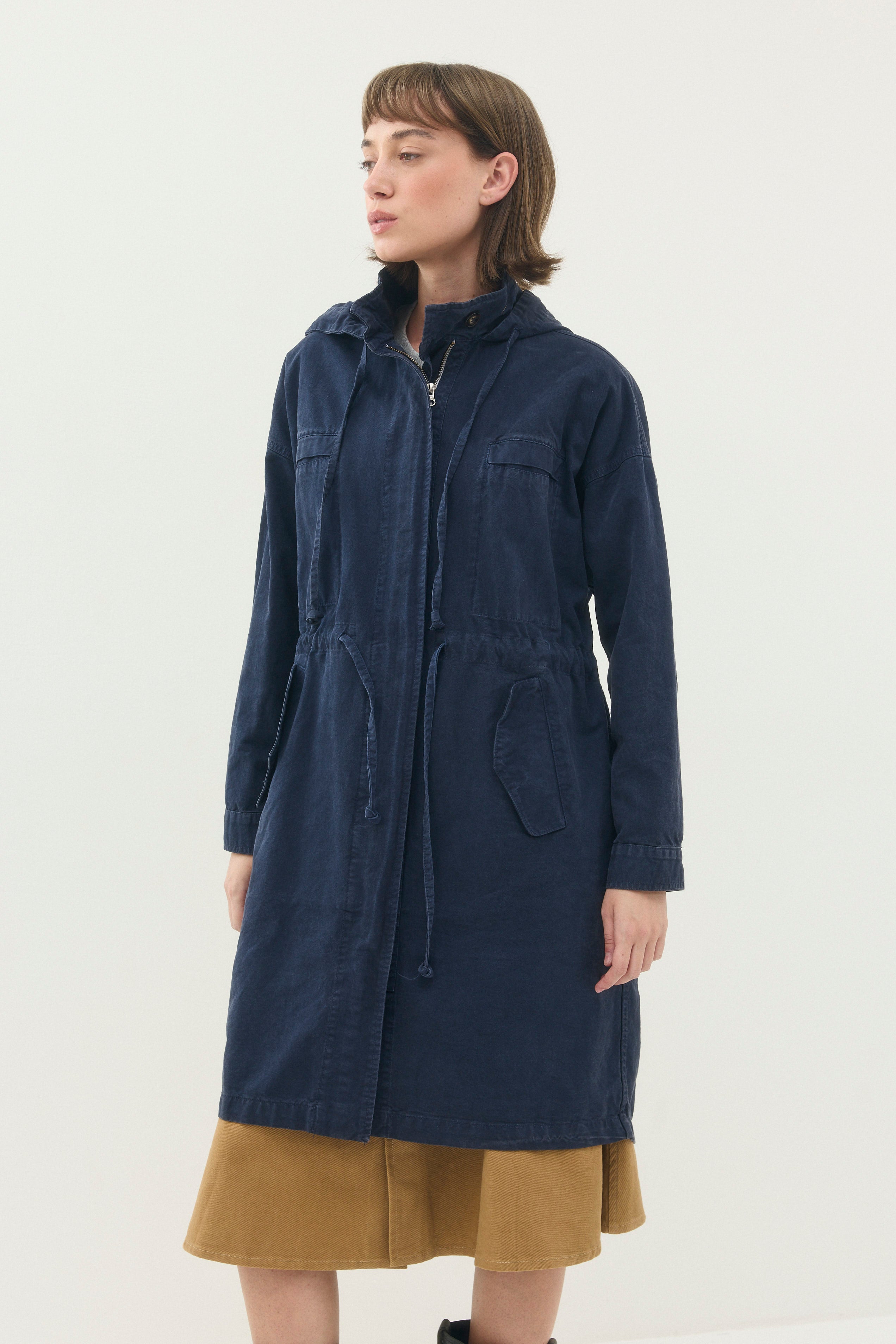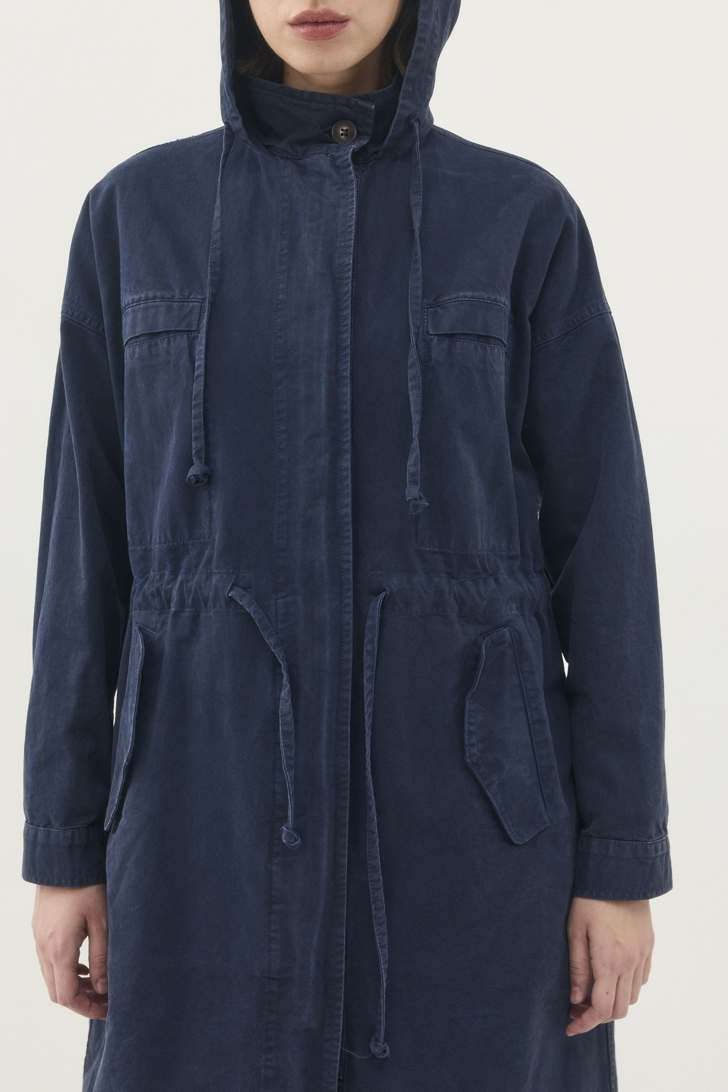 - למעיל קפוצ׳ון ושרוך המאפשר לכווץ אותו