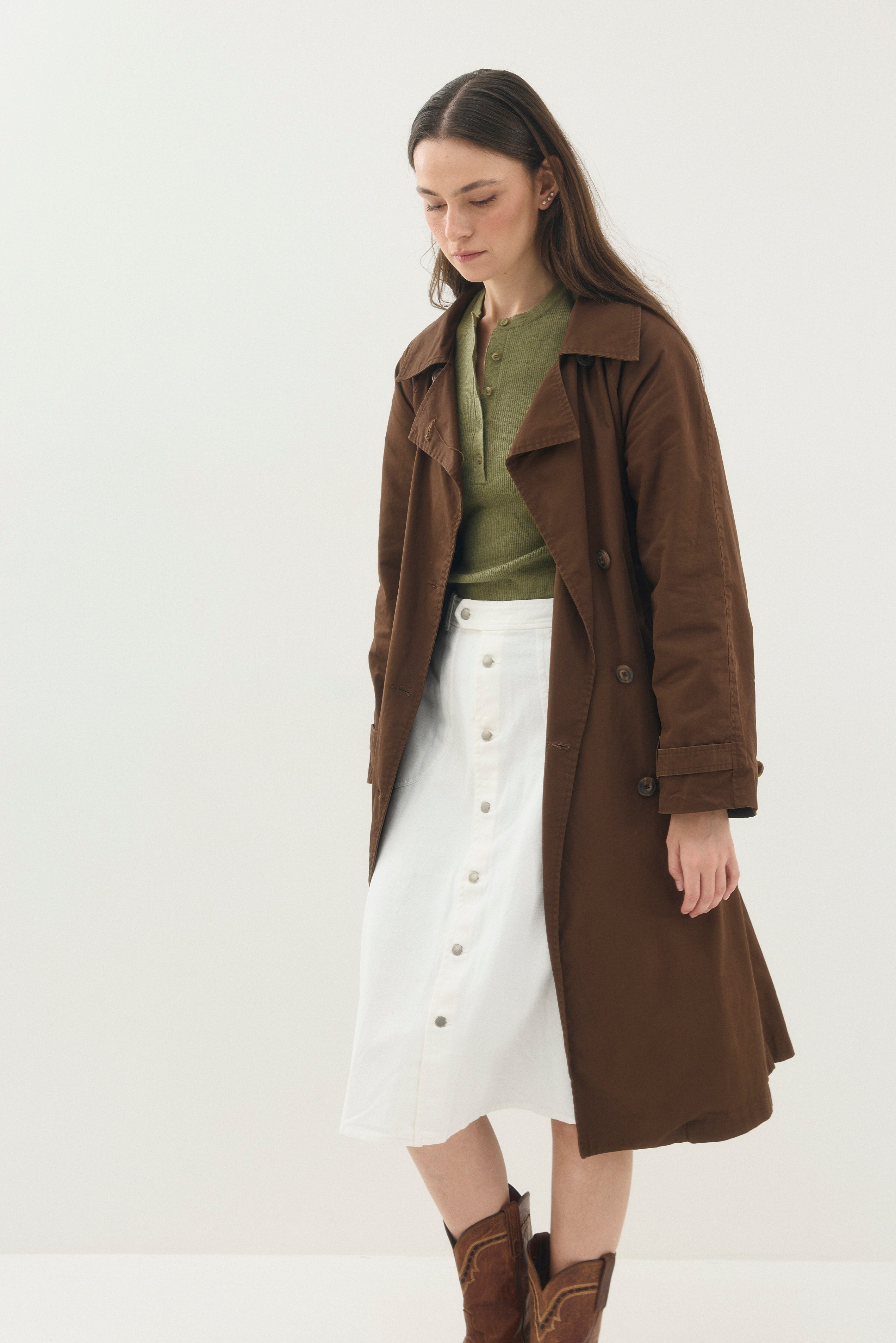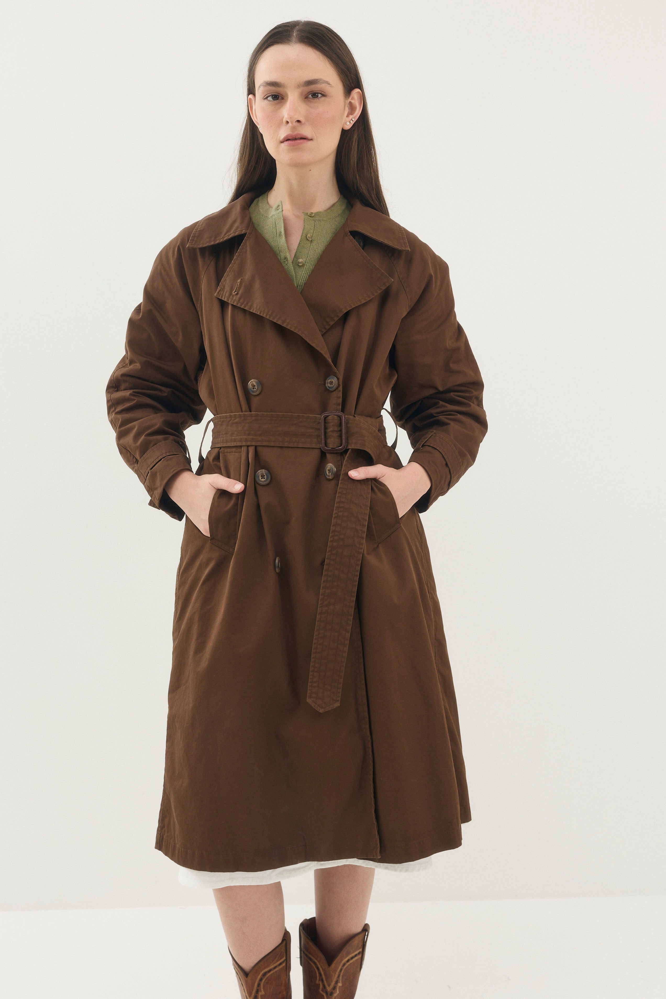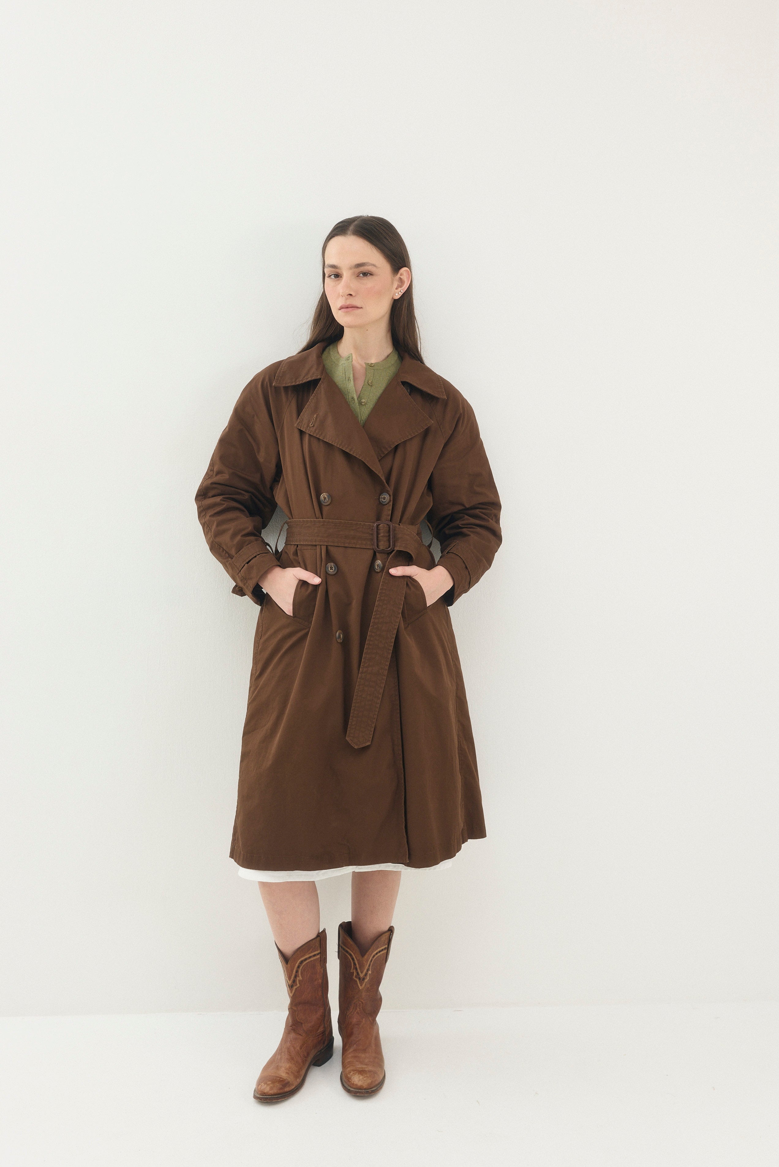מבוסס על גזרה של מעיל טרנץ׳ מעיל צבאי שמקורו במלחמת העולם הראשונה .