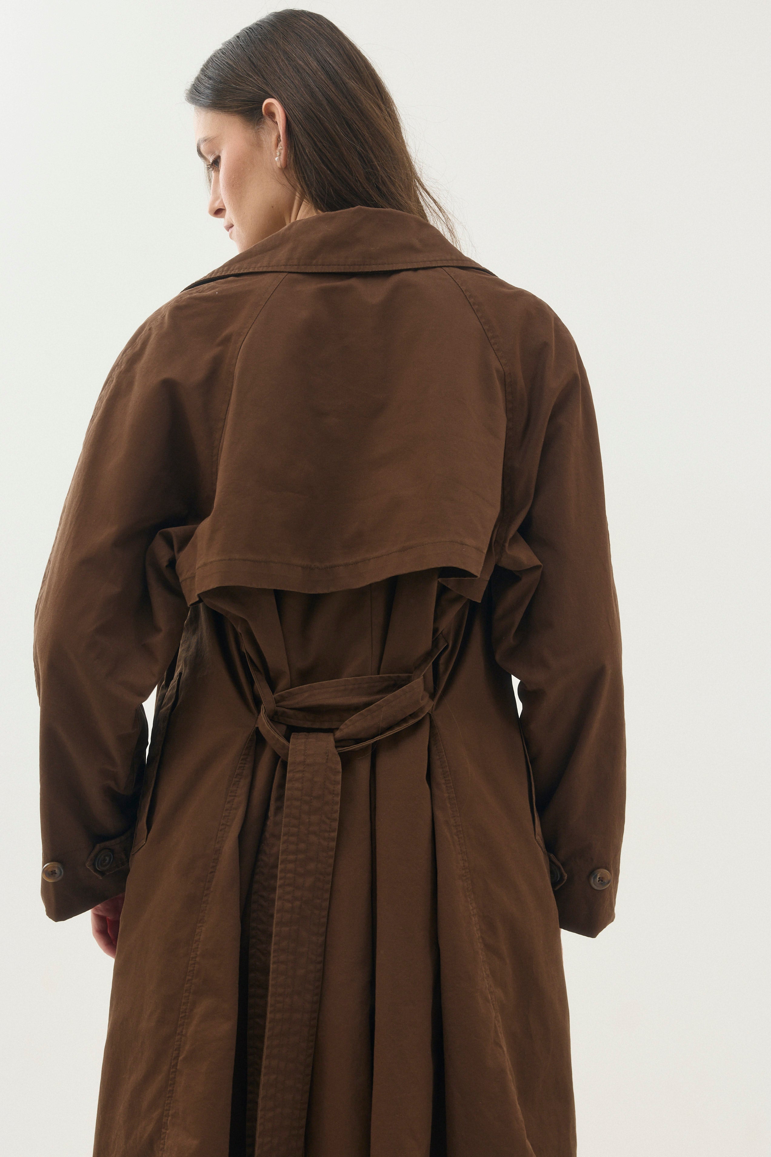 בחלקו העליון של גב המעיל תוספת בד להגנה מפני הגשם.