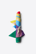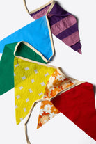 כל דגלון בצורת משולש ובאחד מצבעי דגל הגאווה .