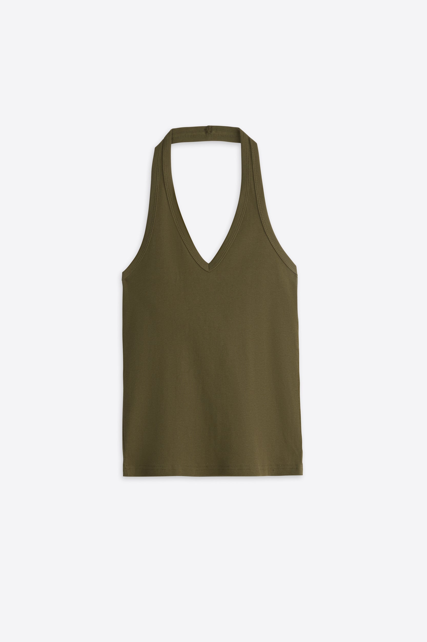 גופייה מבד ריב בגזרת קולר ללא קשירה נלבשת כחולצה קרובה לגוף