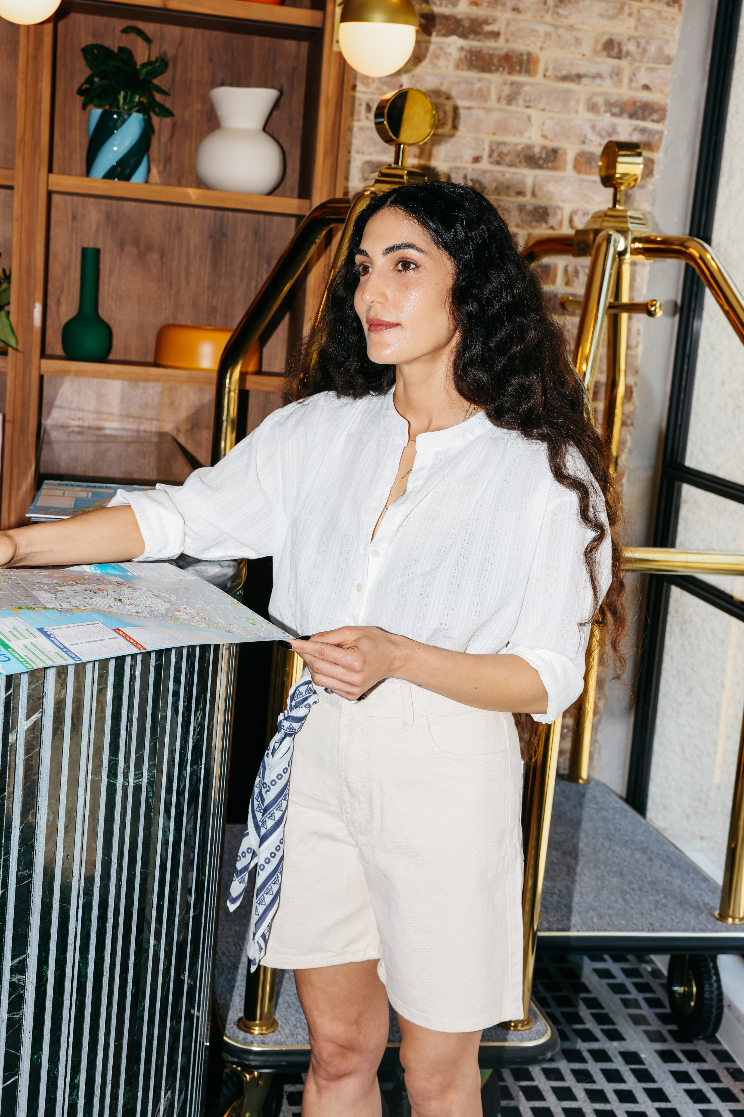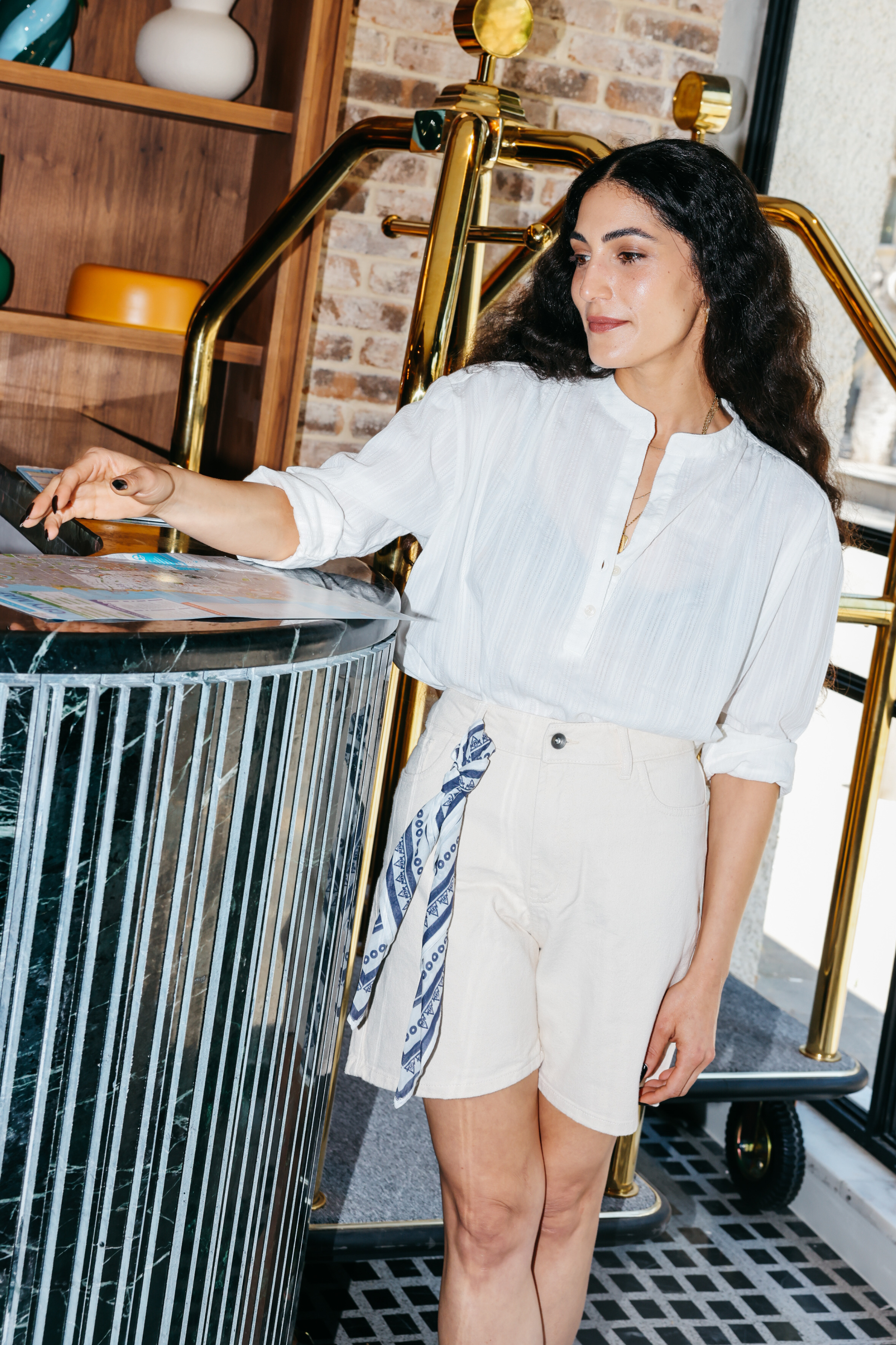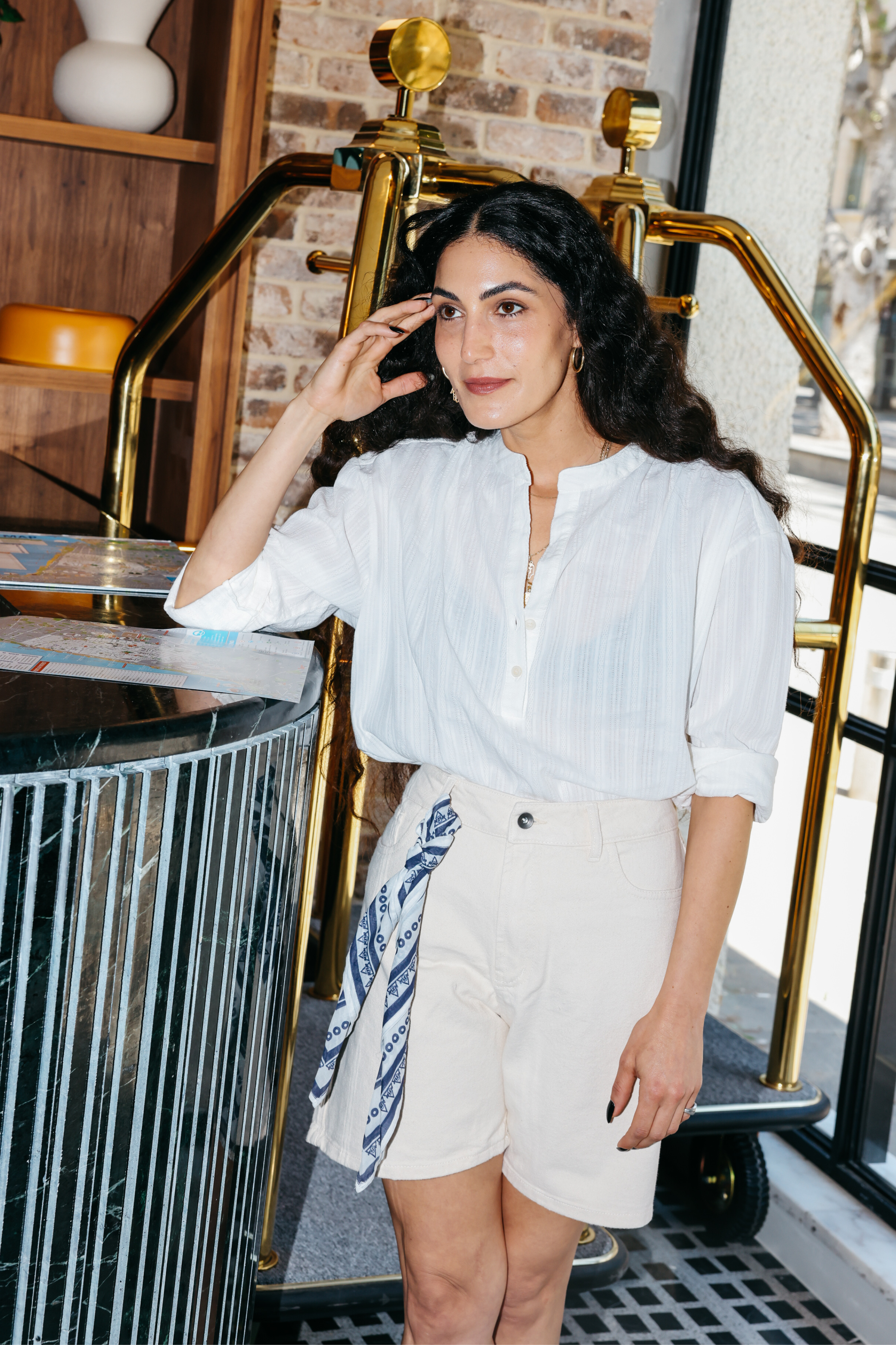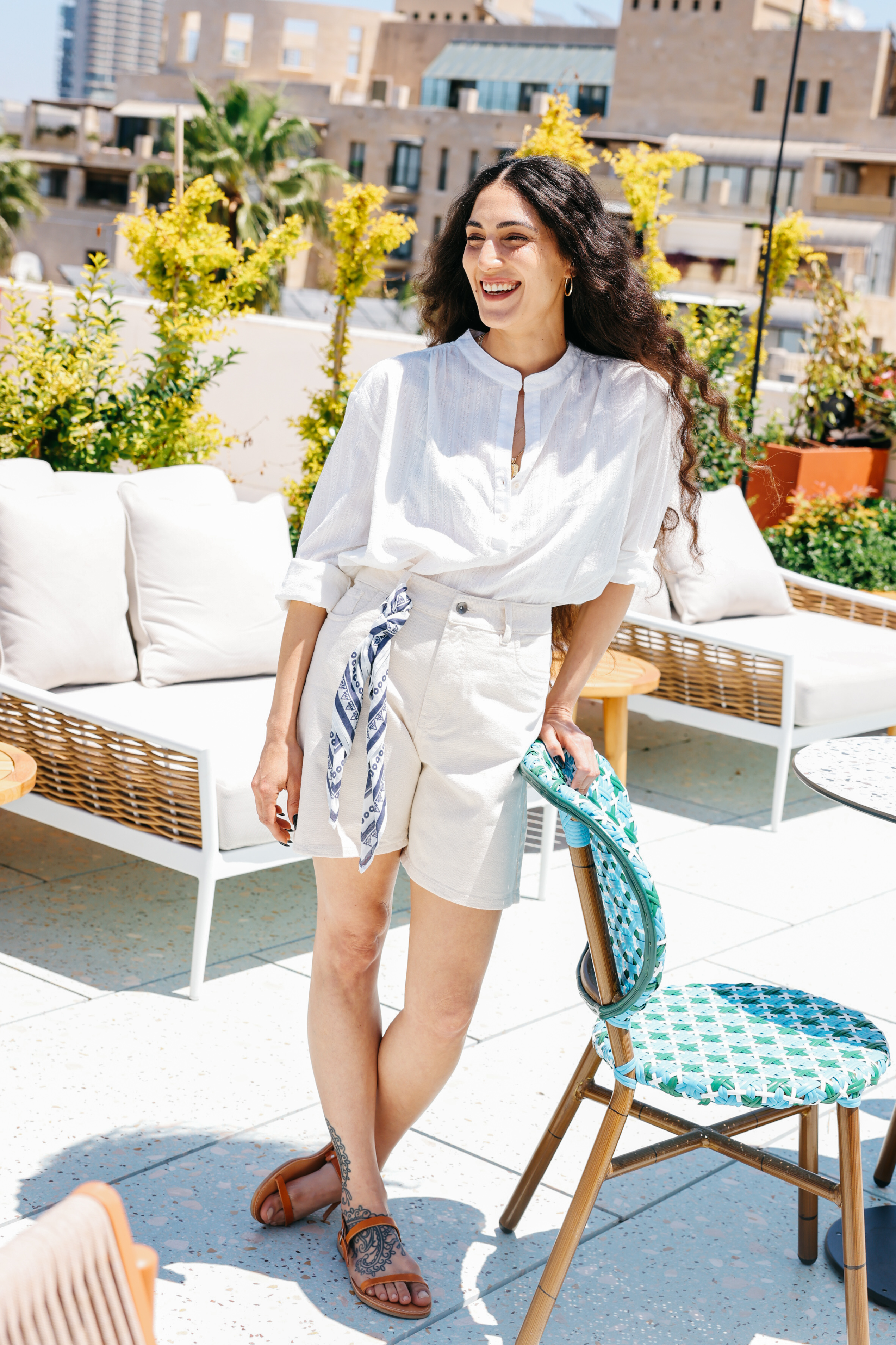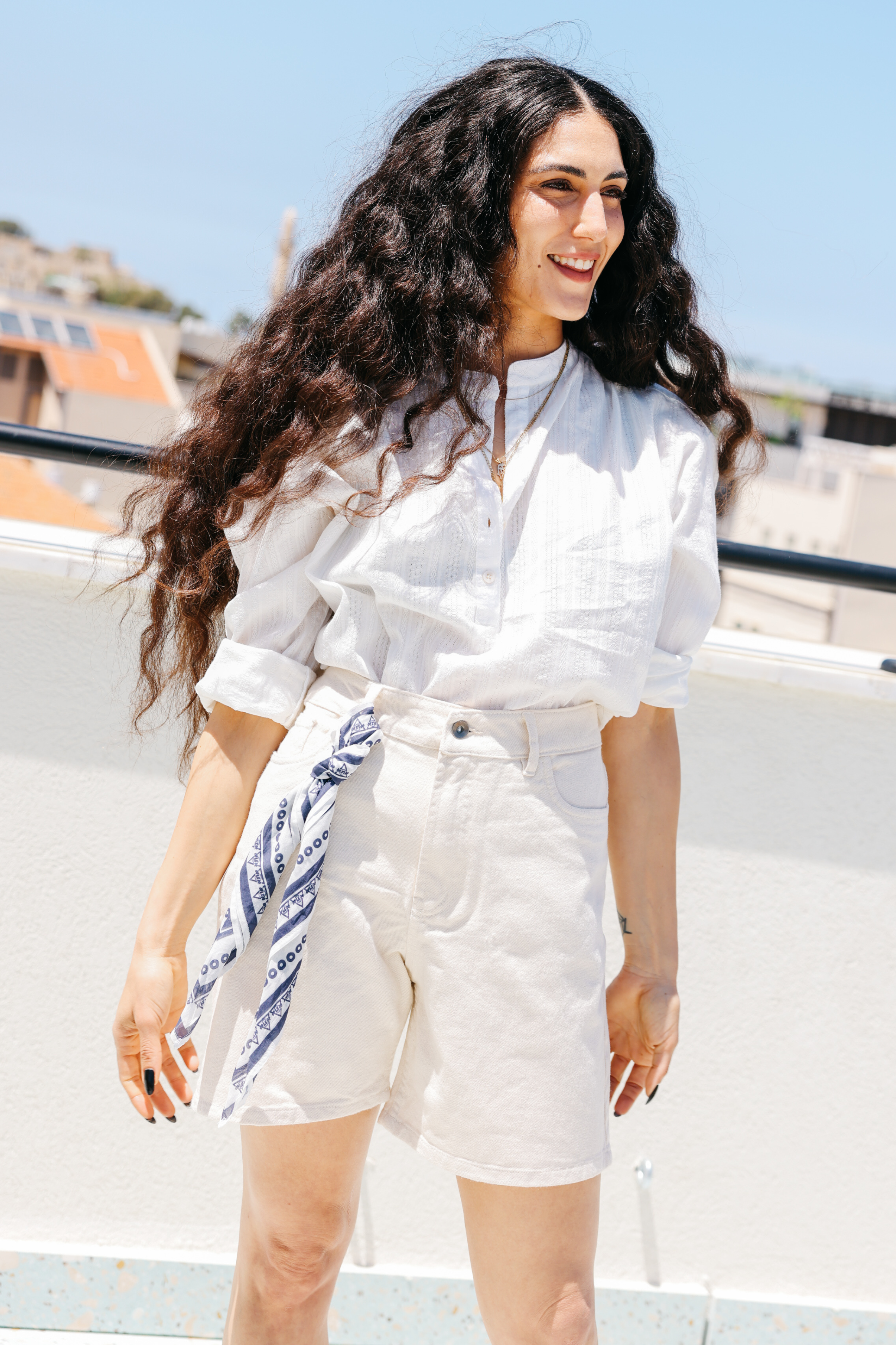 חולצה בגזרה משוחררת ואורירית  עם שרוולים ארוכים
