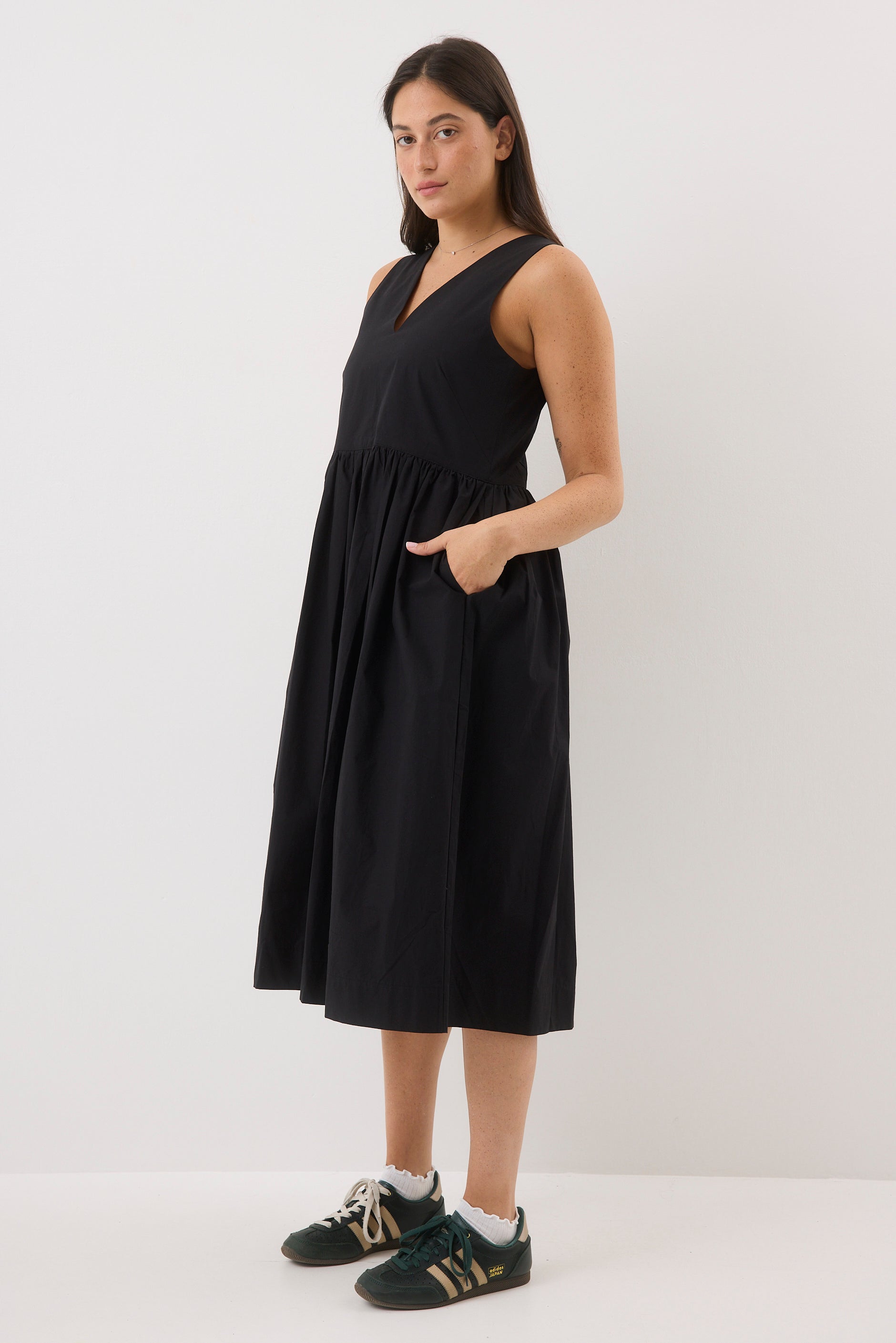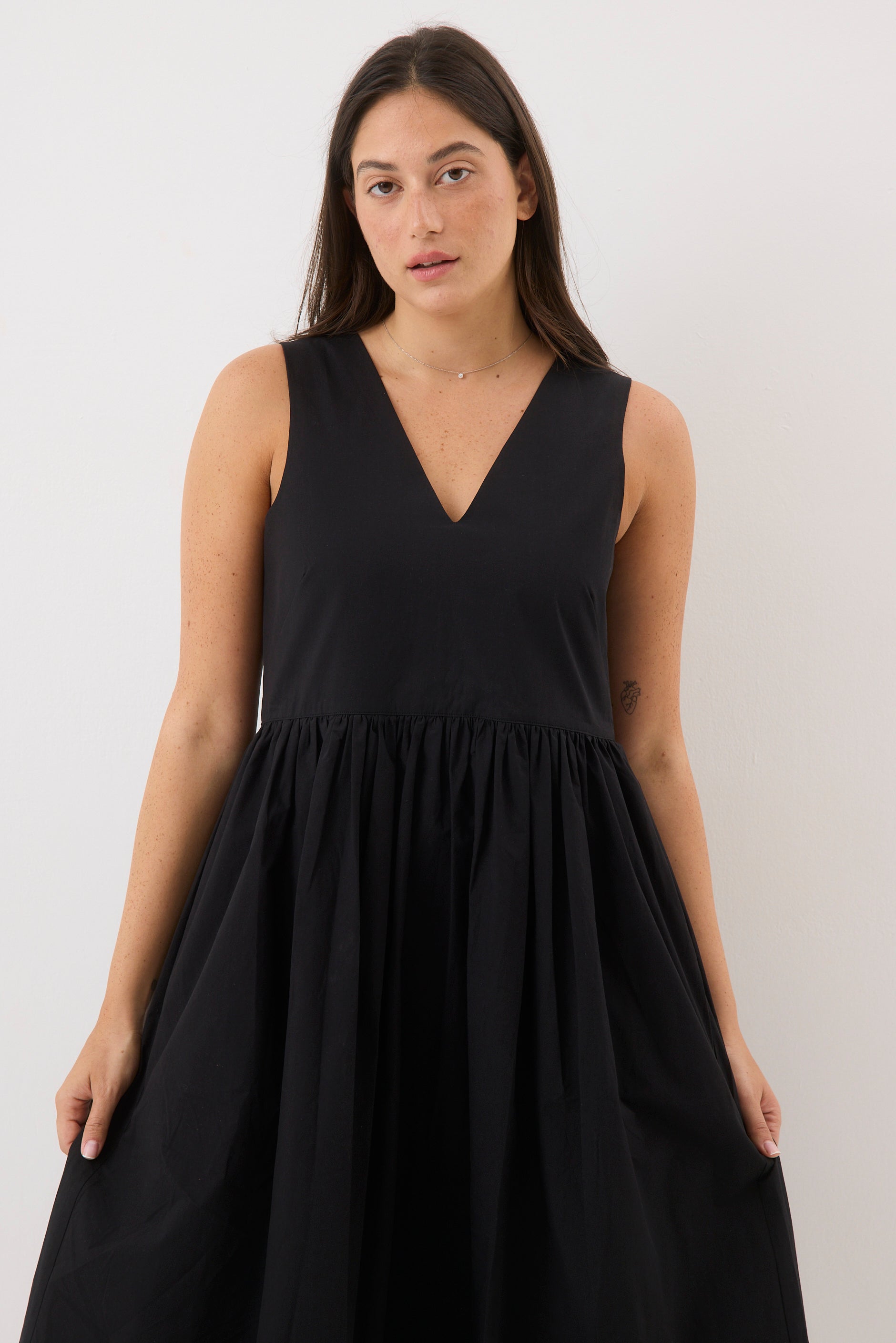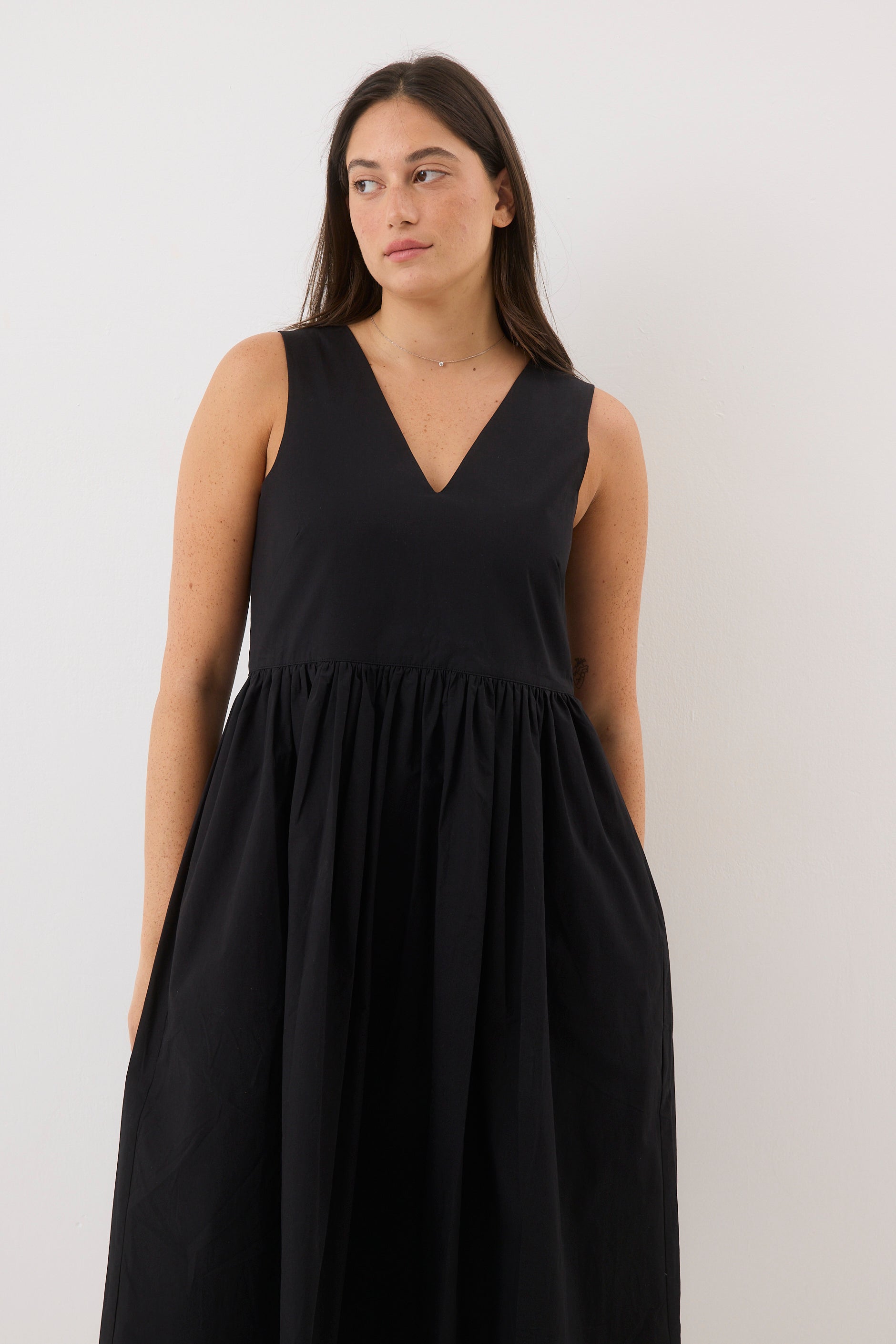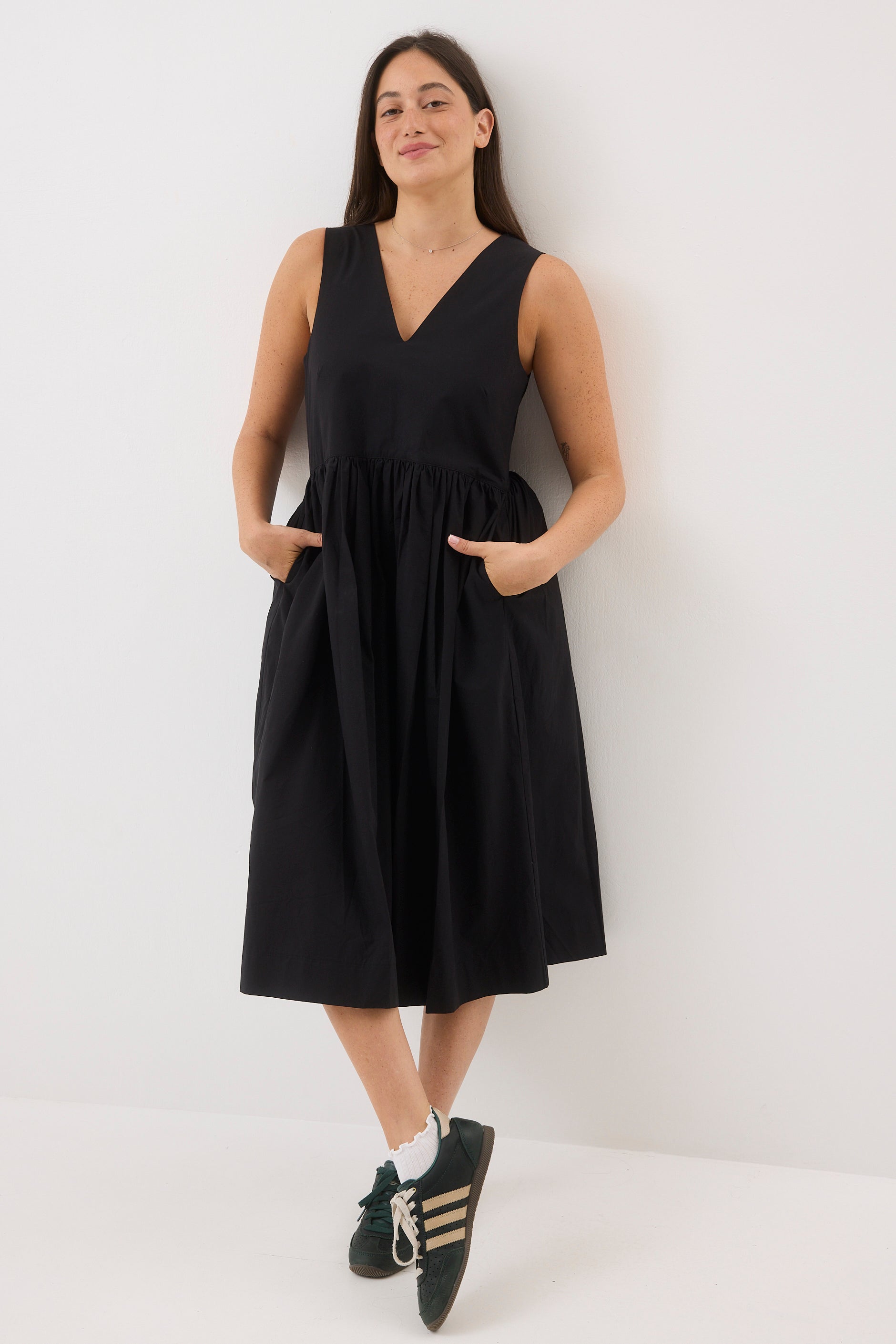 ⦁ שמלת כתפיות בגזרה משוחררת באורך ברך.