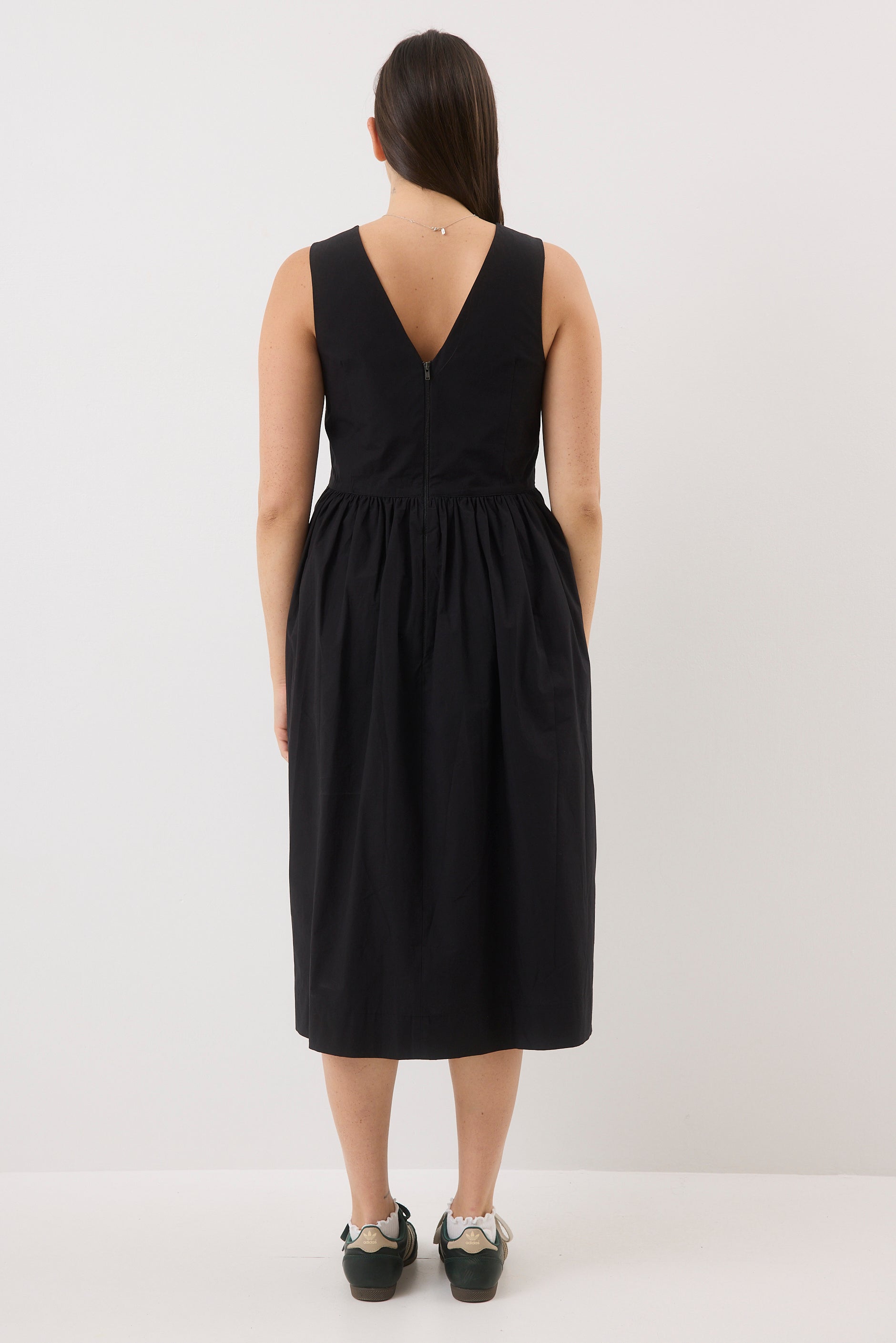 ⦁ רוכסן בגב השמלה עם מפתח בצורת V.