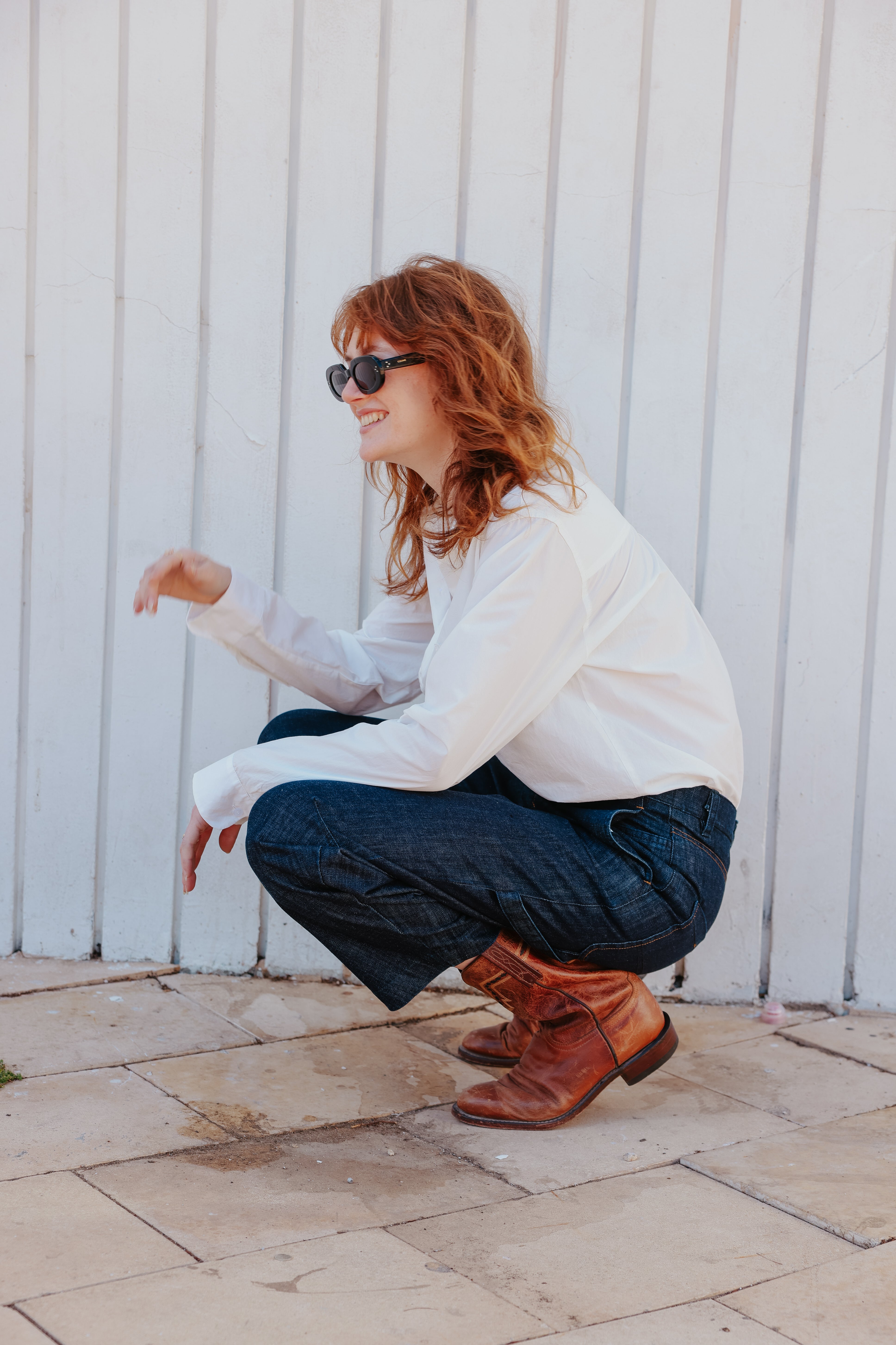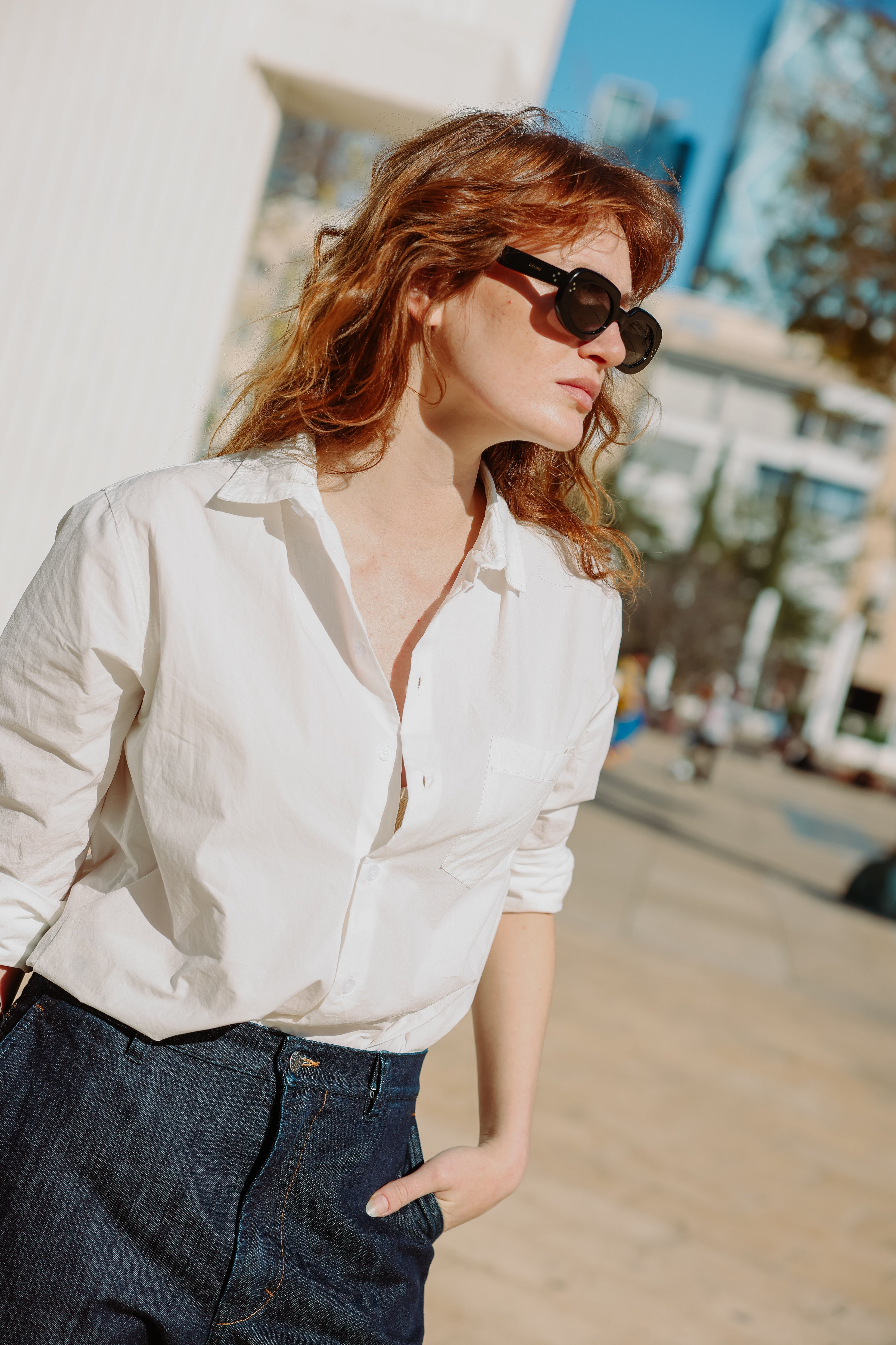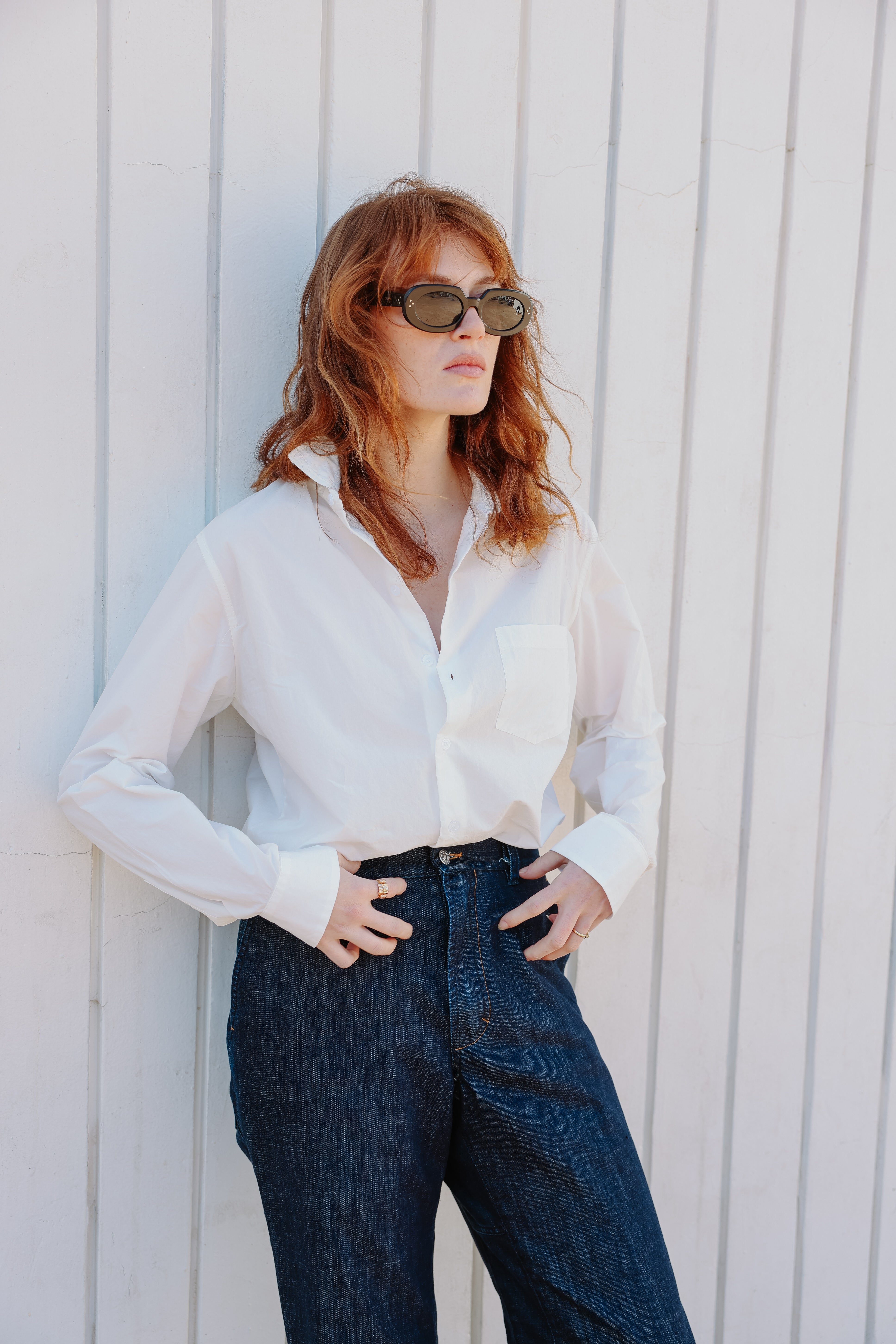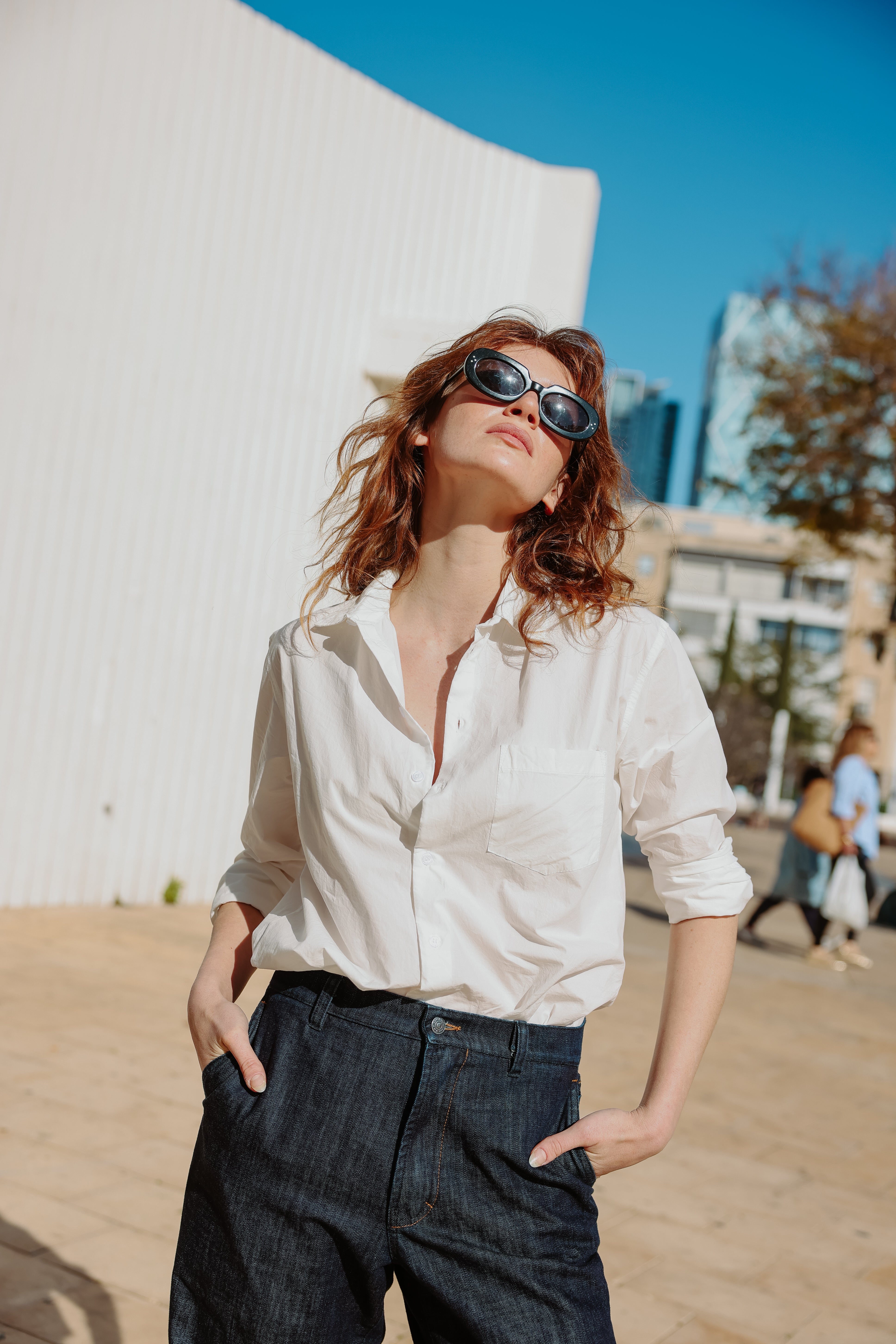 חולצה בגזרה צמודה עם שרוולים ארוכים וצווארון גברי
