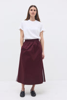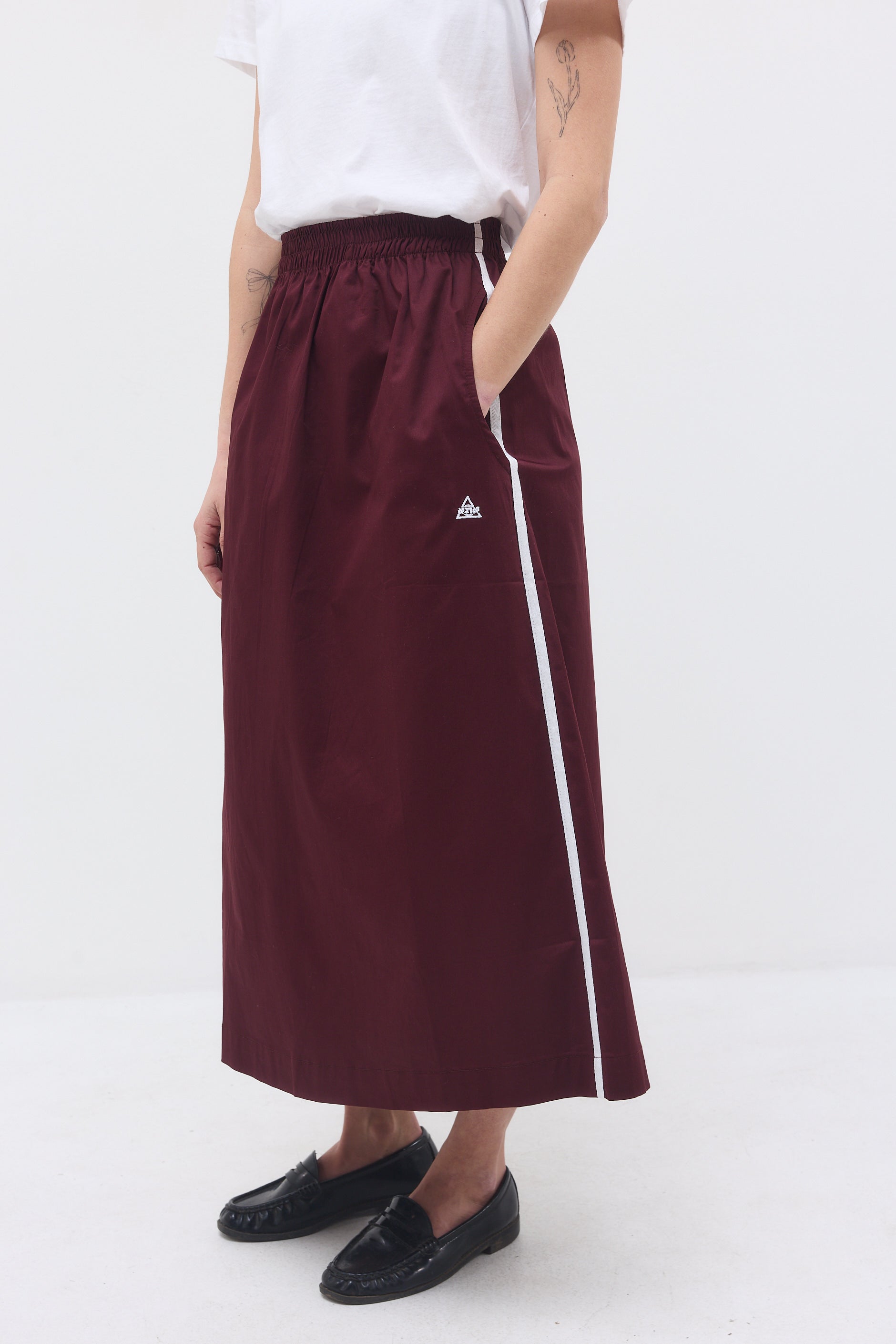 לחצאית יש שני פסים שצבעם לבן בתפר הצד, שני כיסים ורקמת לוגו