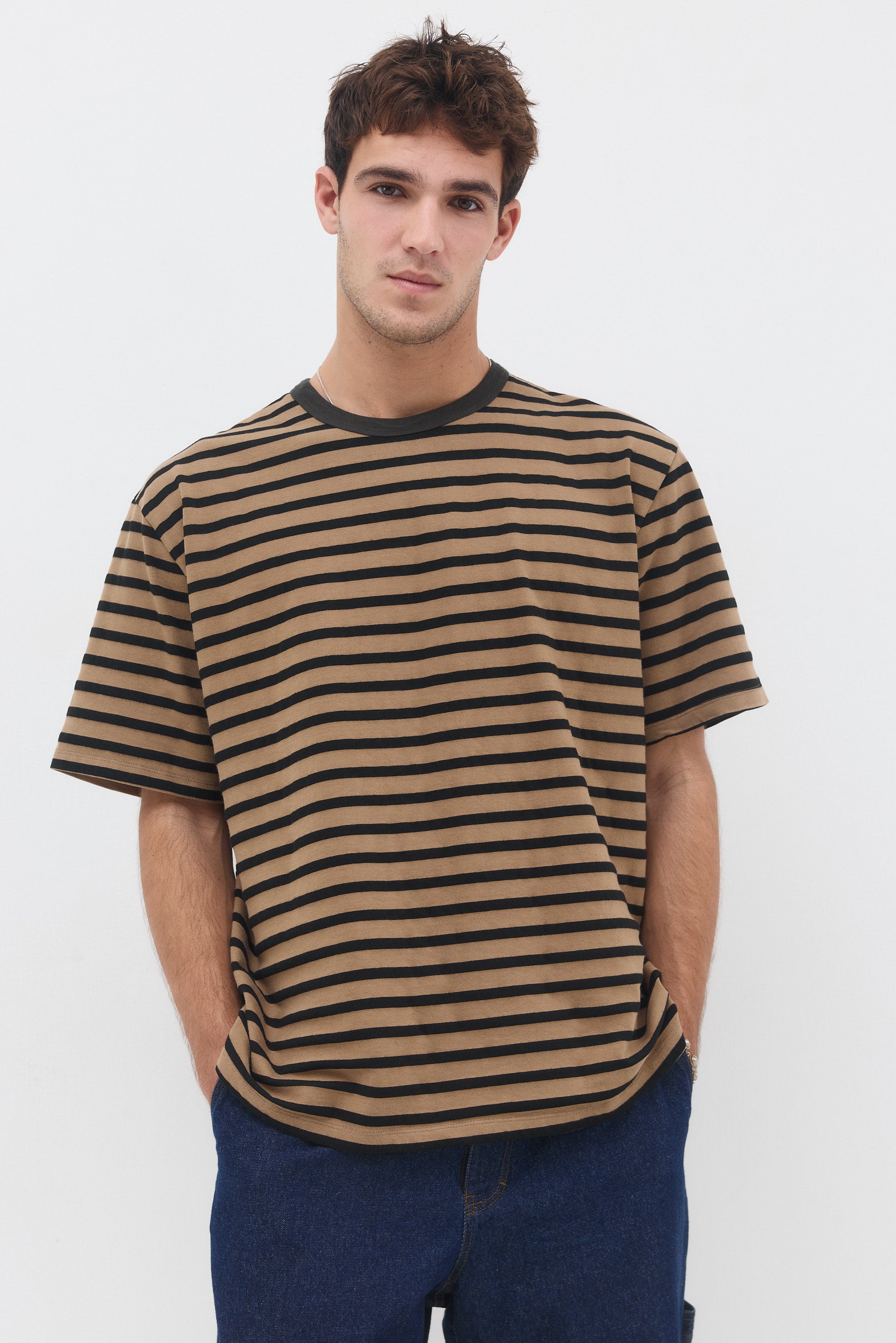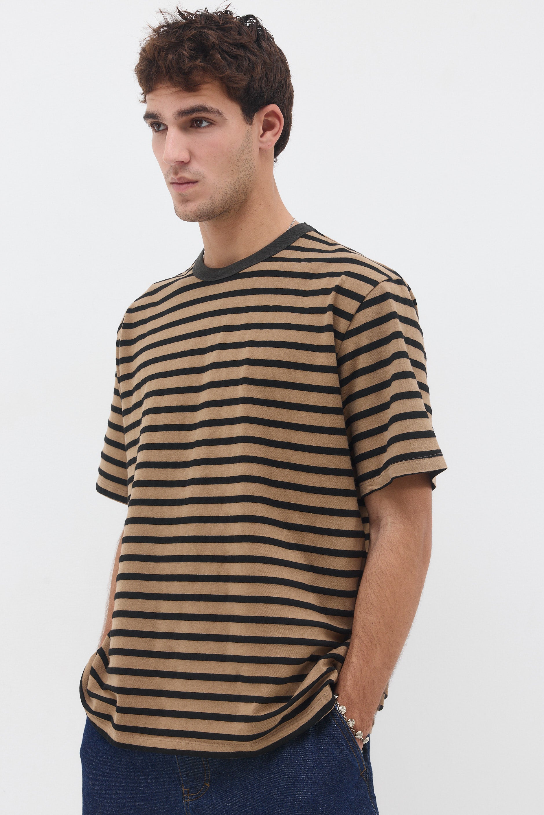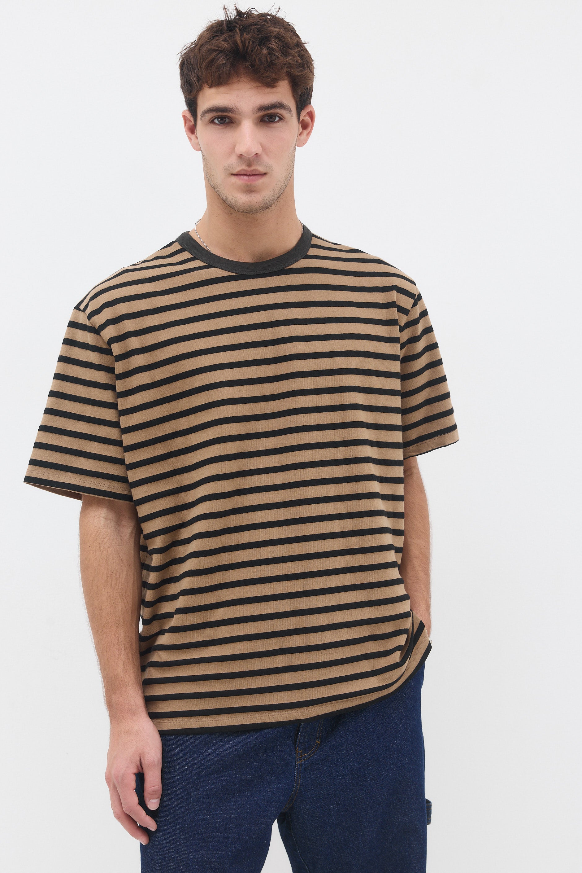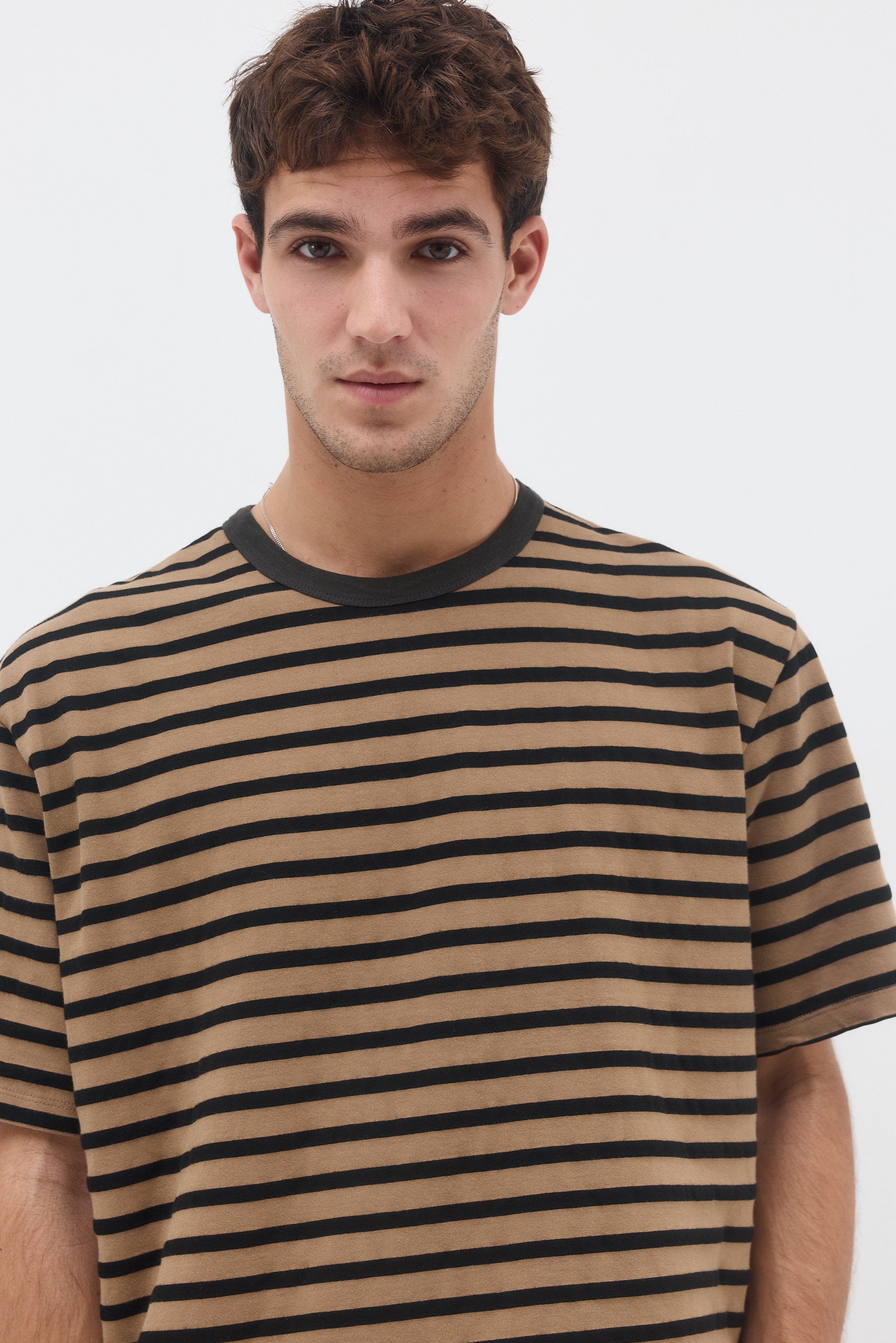 חולצה טי בגזרה ישרה עם צווארון עגול עשוי מבד ריב