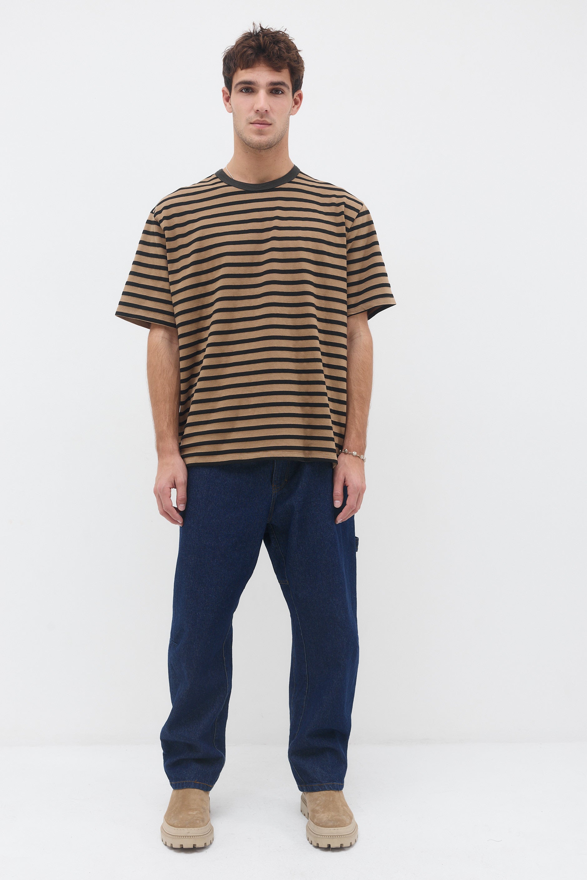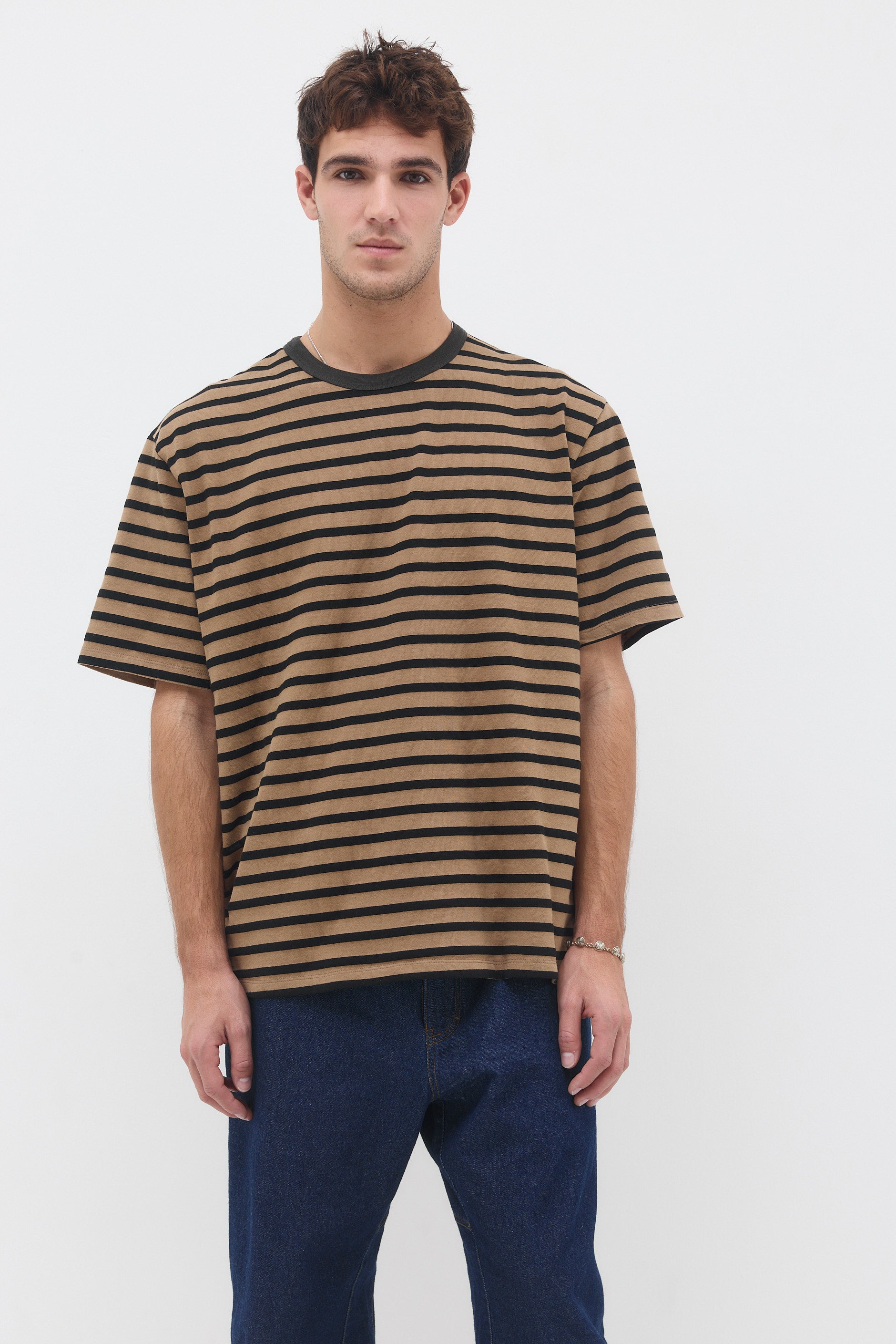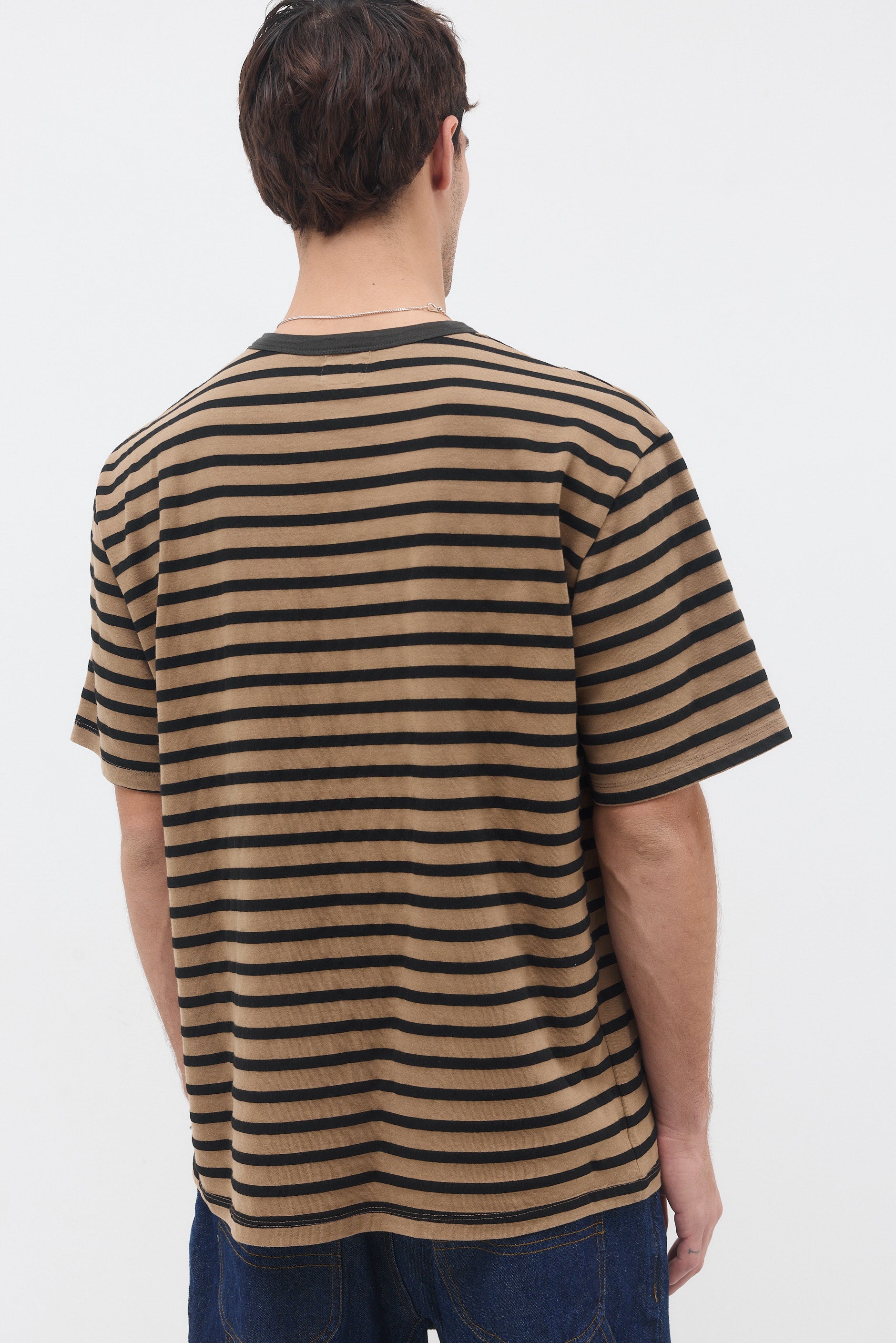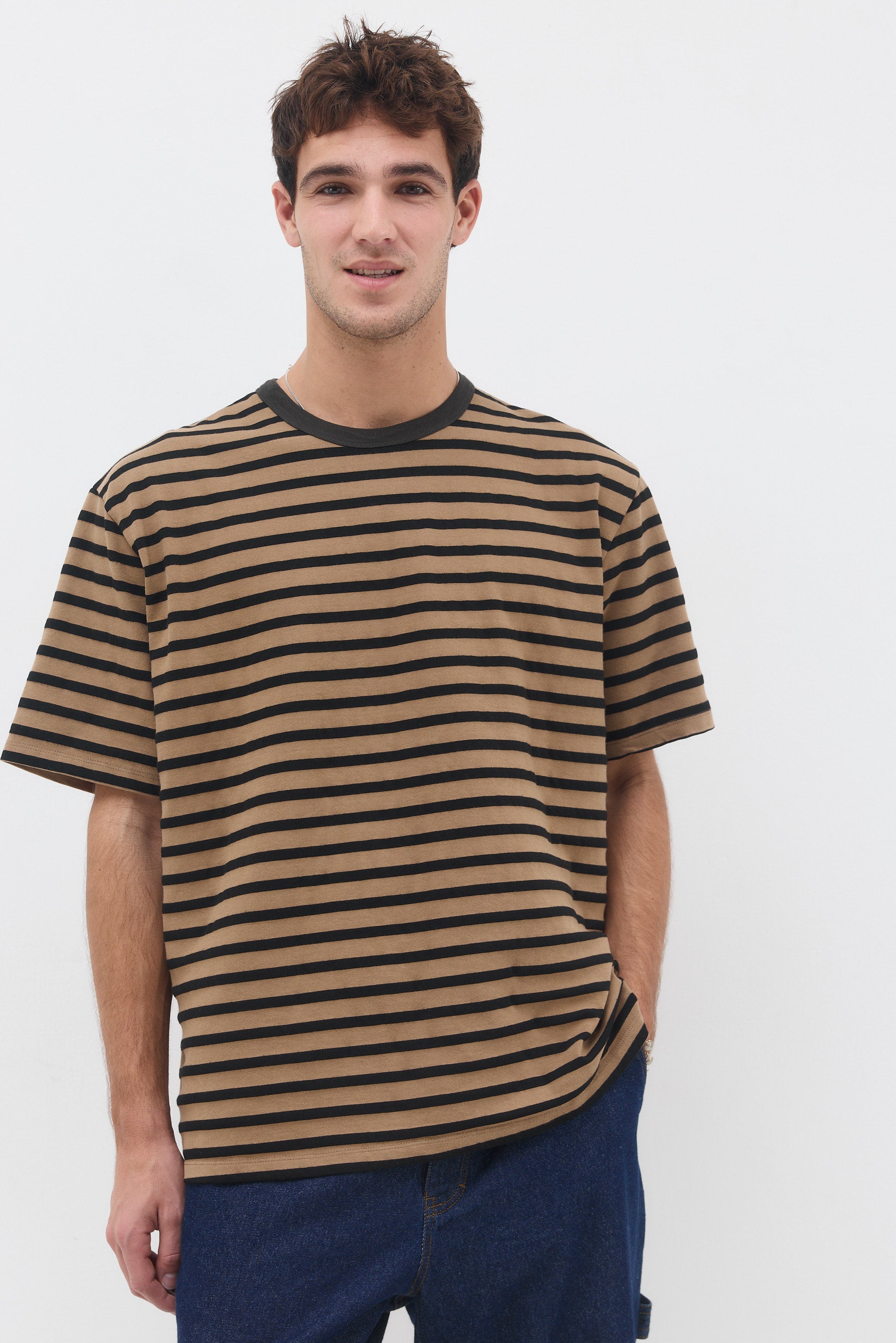 חולצה טי בגזרה ישרה עם צווארון עגול עשוי מבד ריב