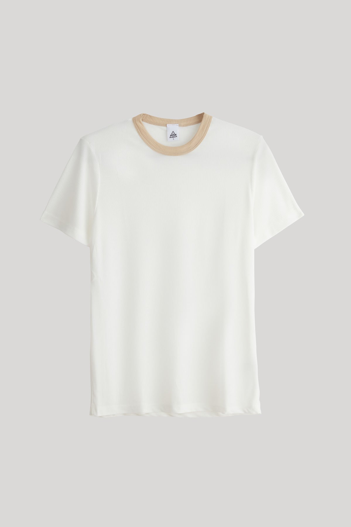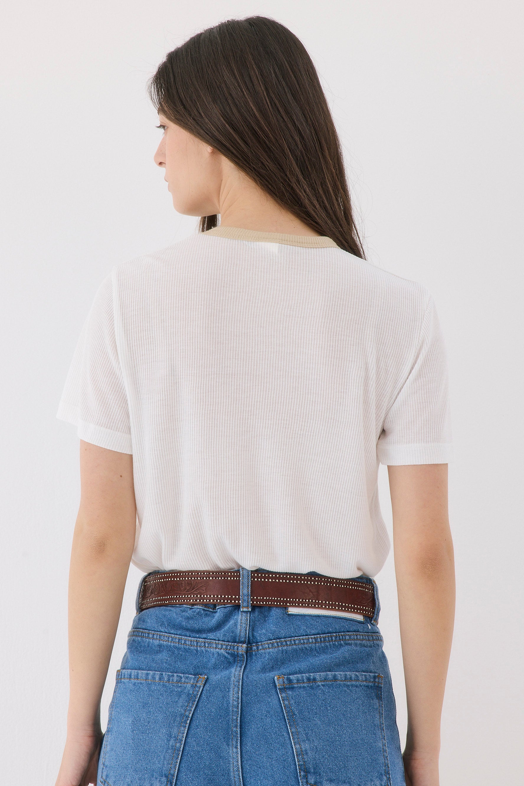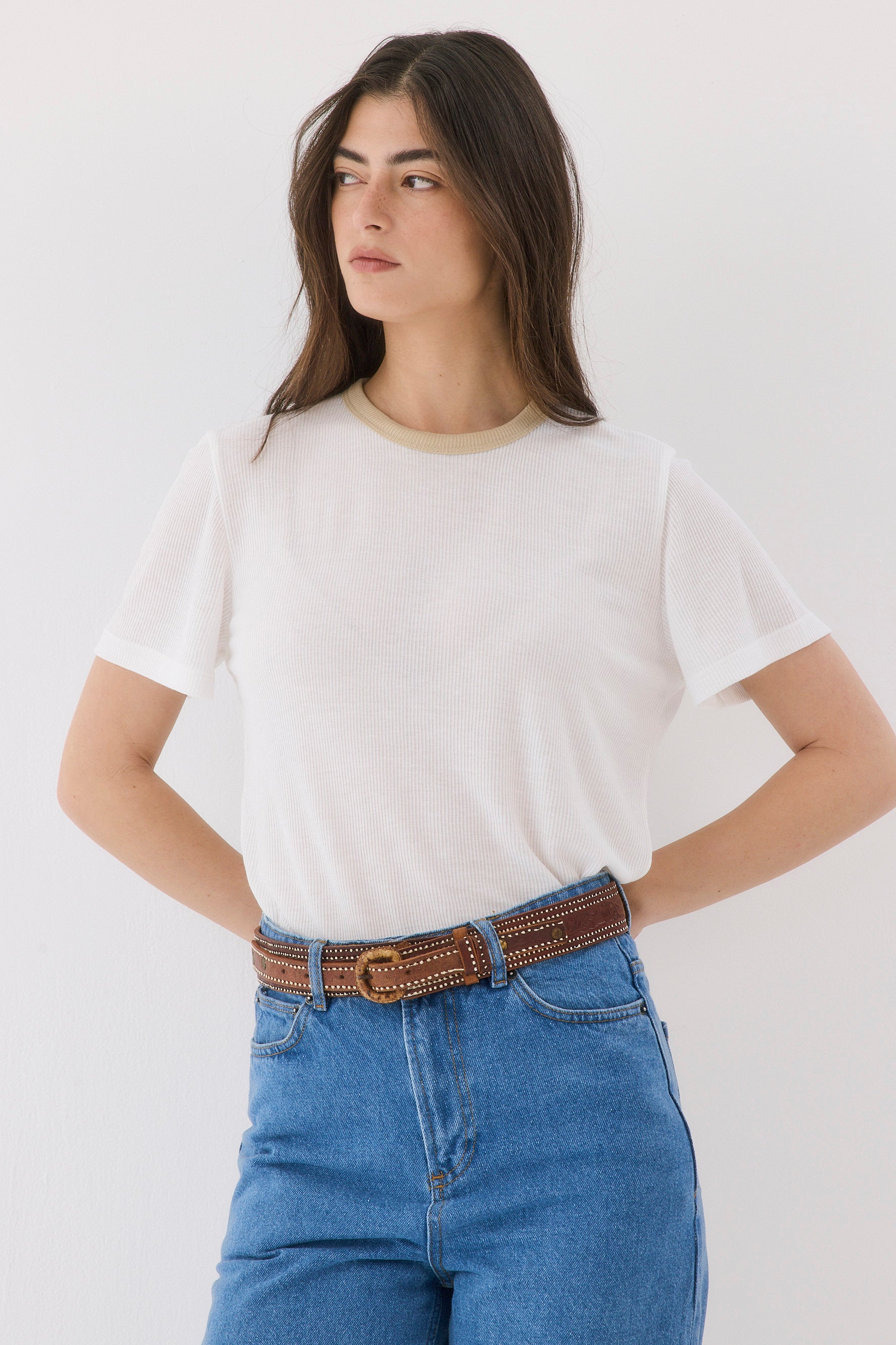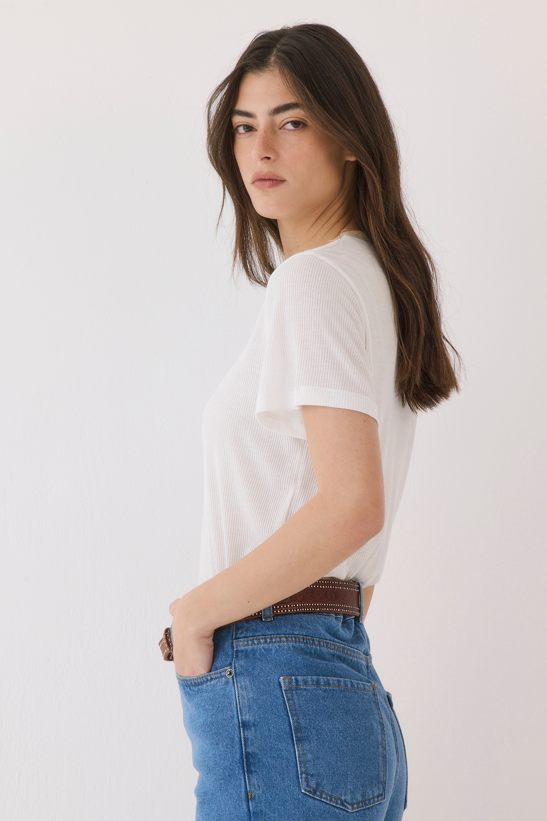 חולצה טי בגזרה צרה עם צווארון עגול עשוי מבד ריב