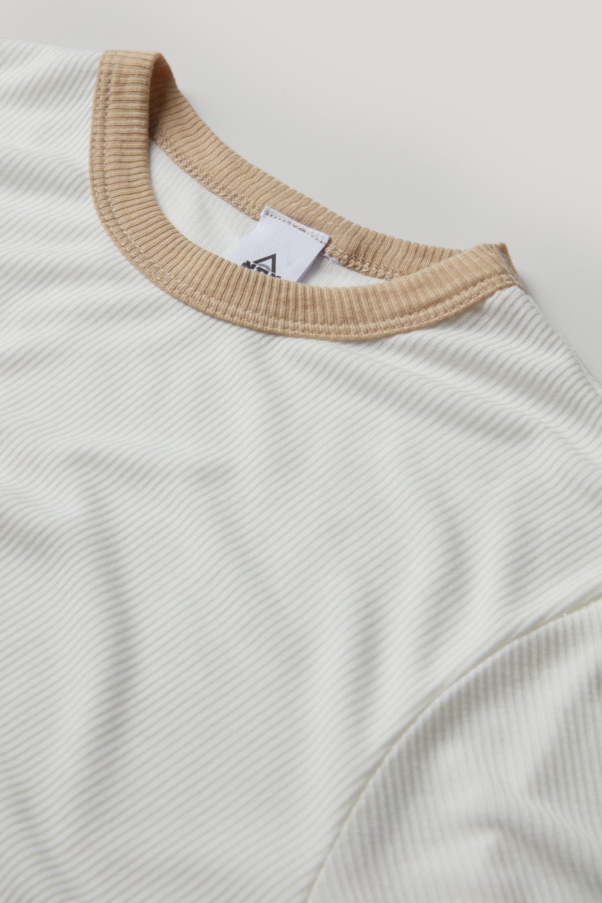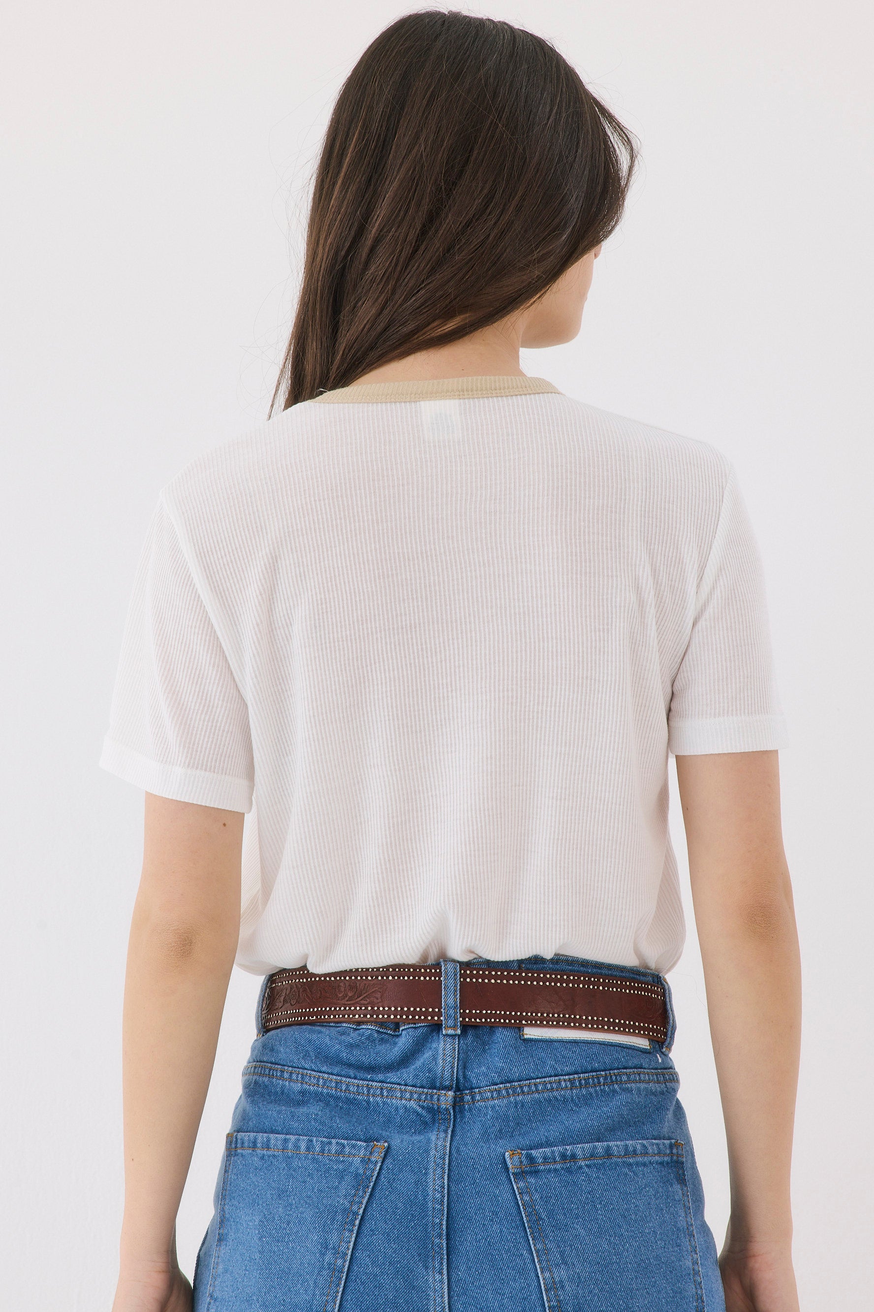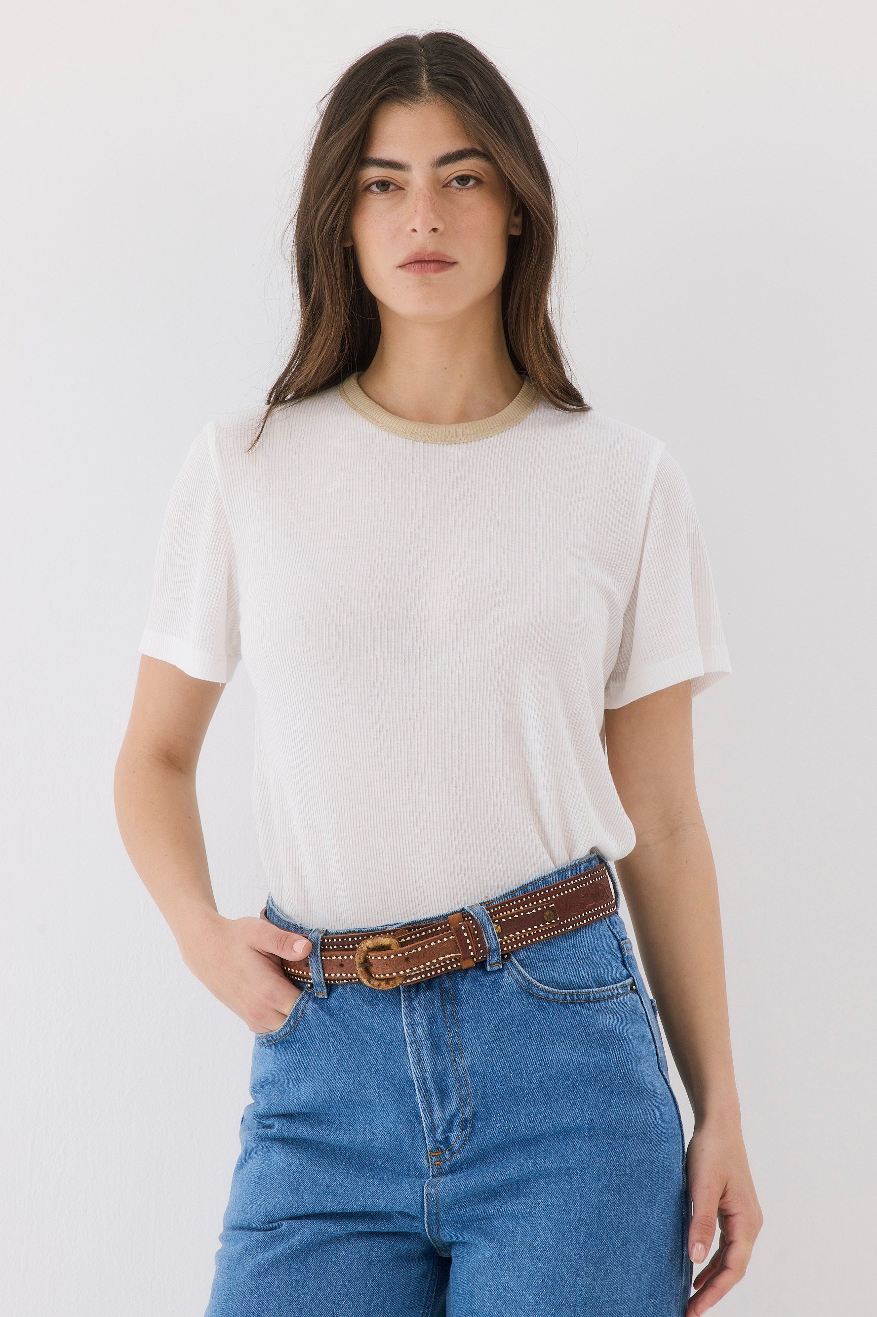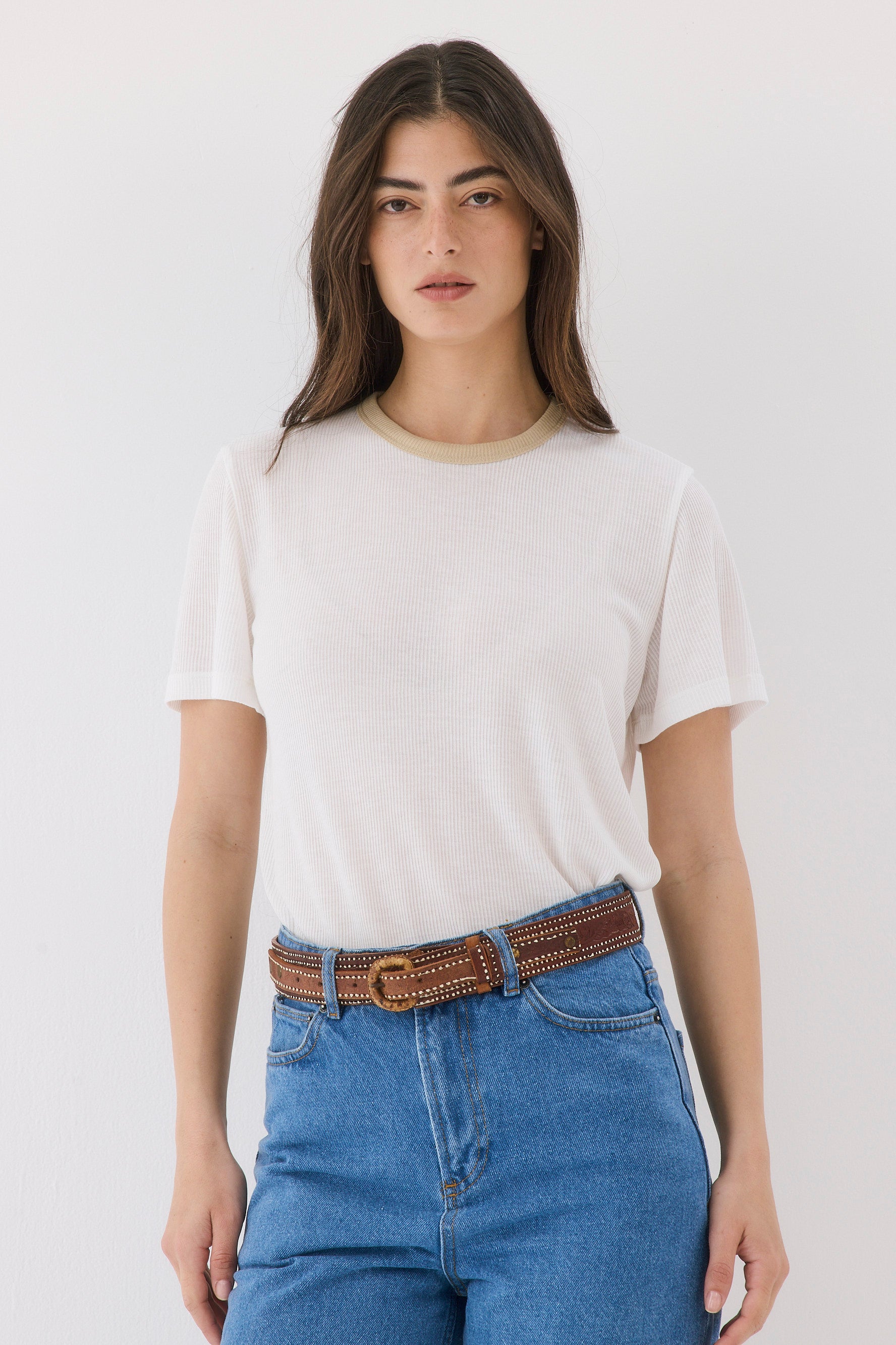 חולצה טי בגזרה צרה עם צווארון עגול עשוי מבד ריב