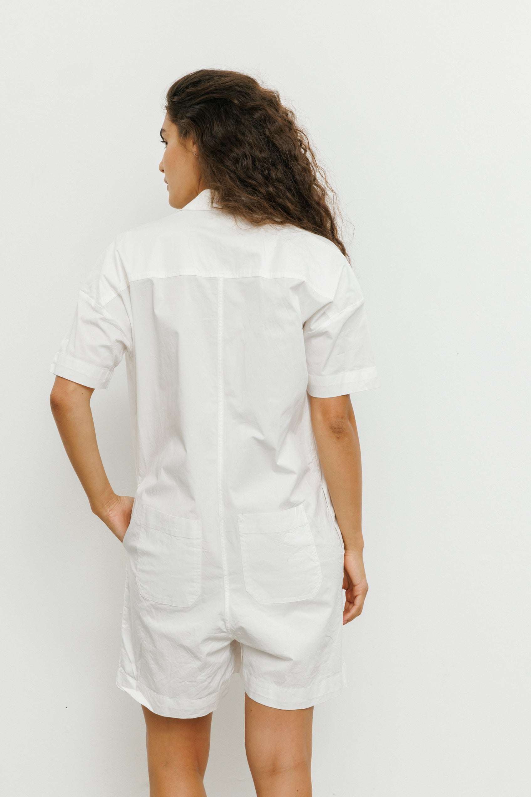 עם שרוולים ומכנסיים קצרים, מכופתר בחלקו הקידמי