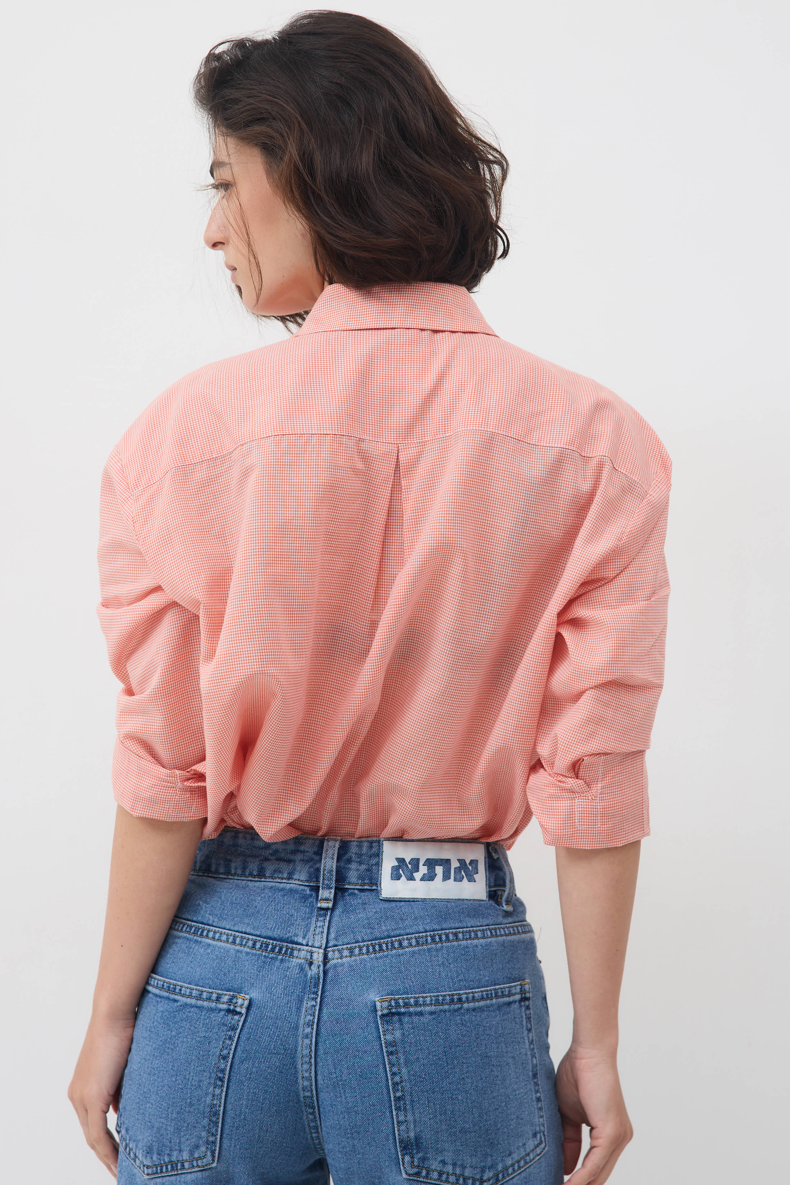 חולצת גפן - משבצות כתומות