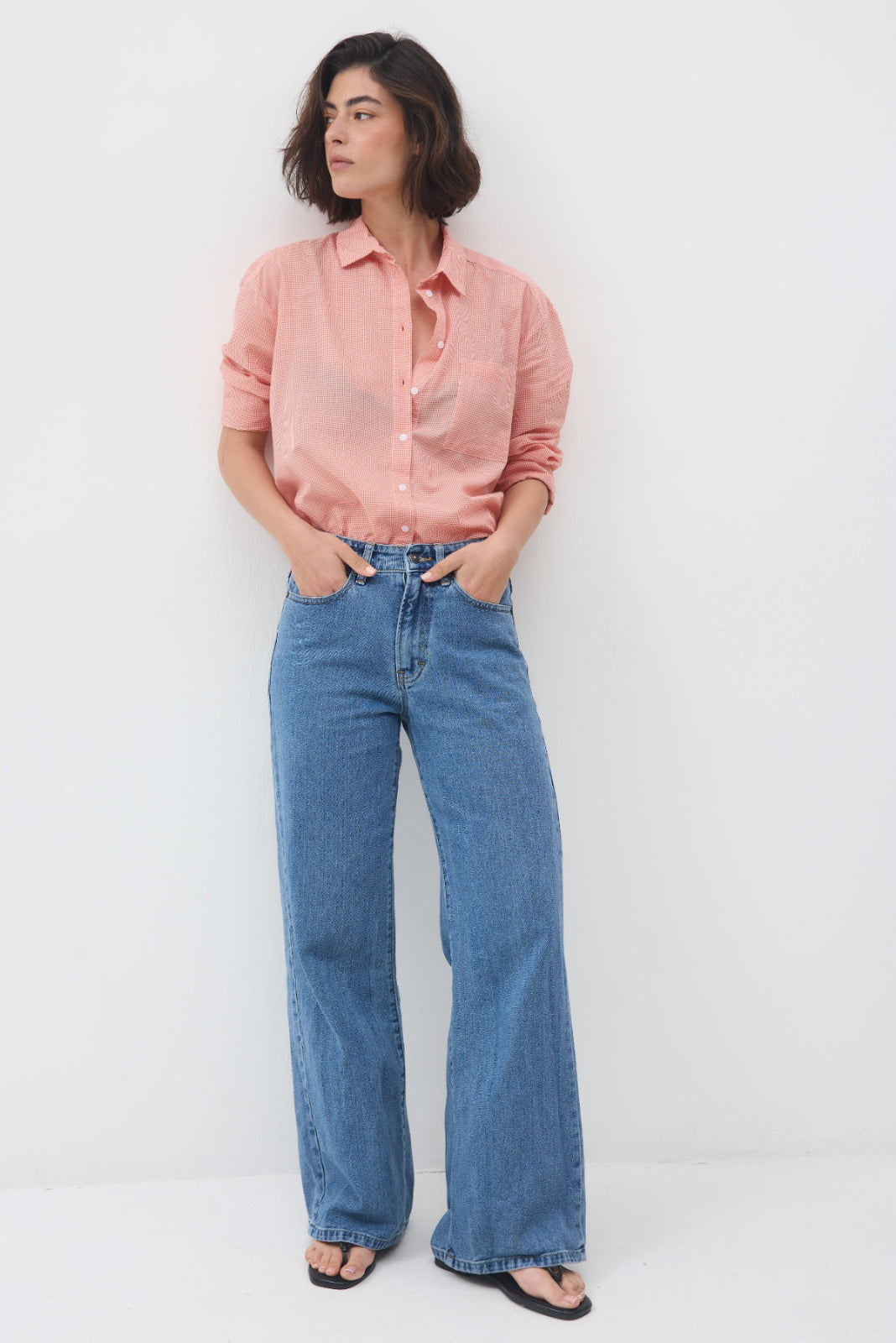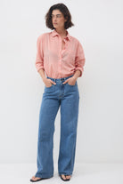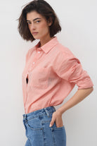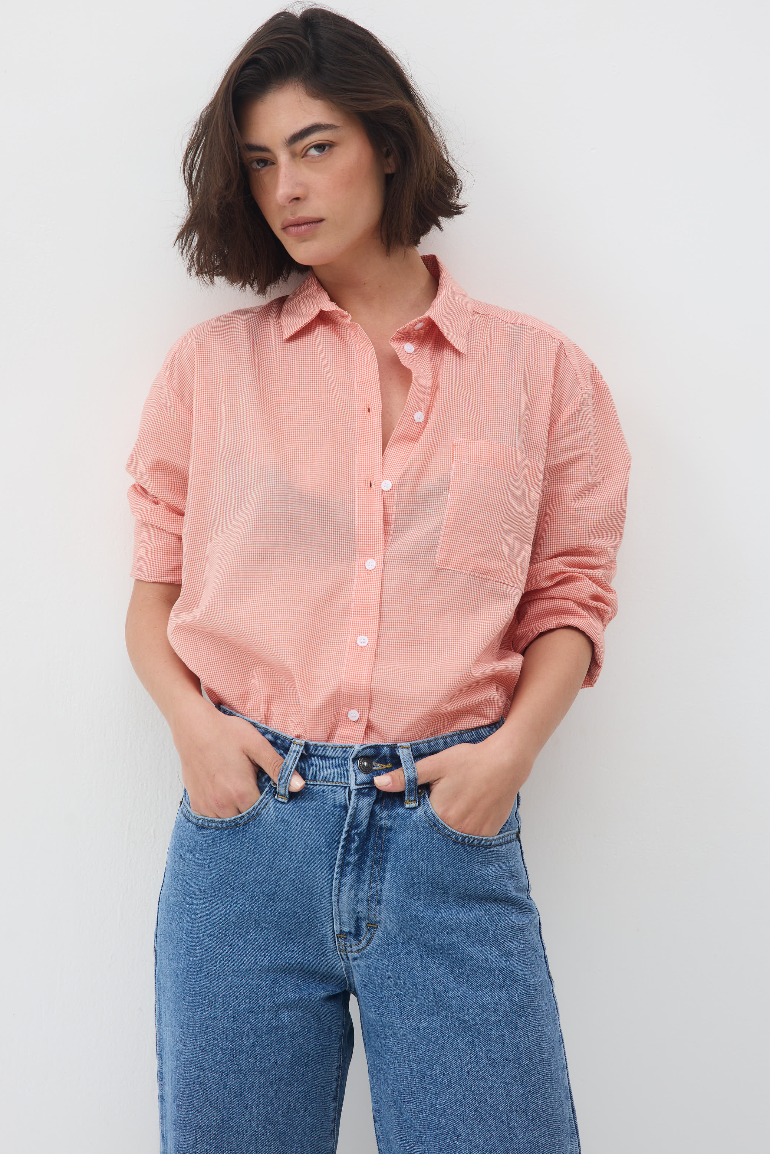 חולצה מכופתרת עם שרוולים ארוכים וצווארון גברי בגזרה משוחררת
