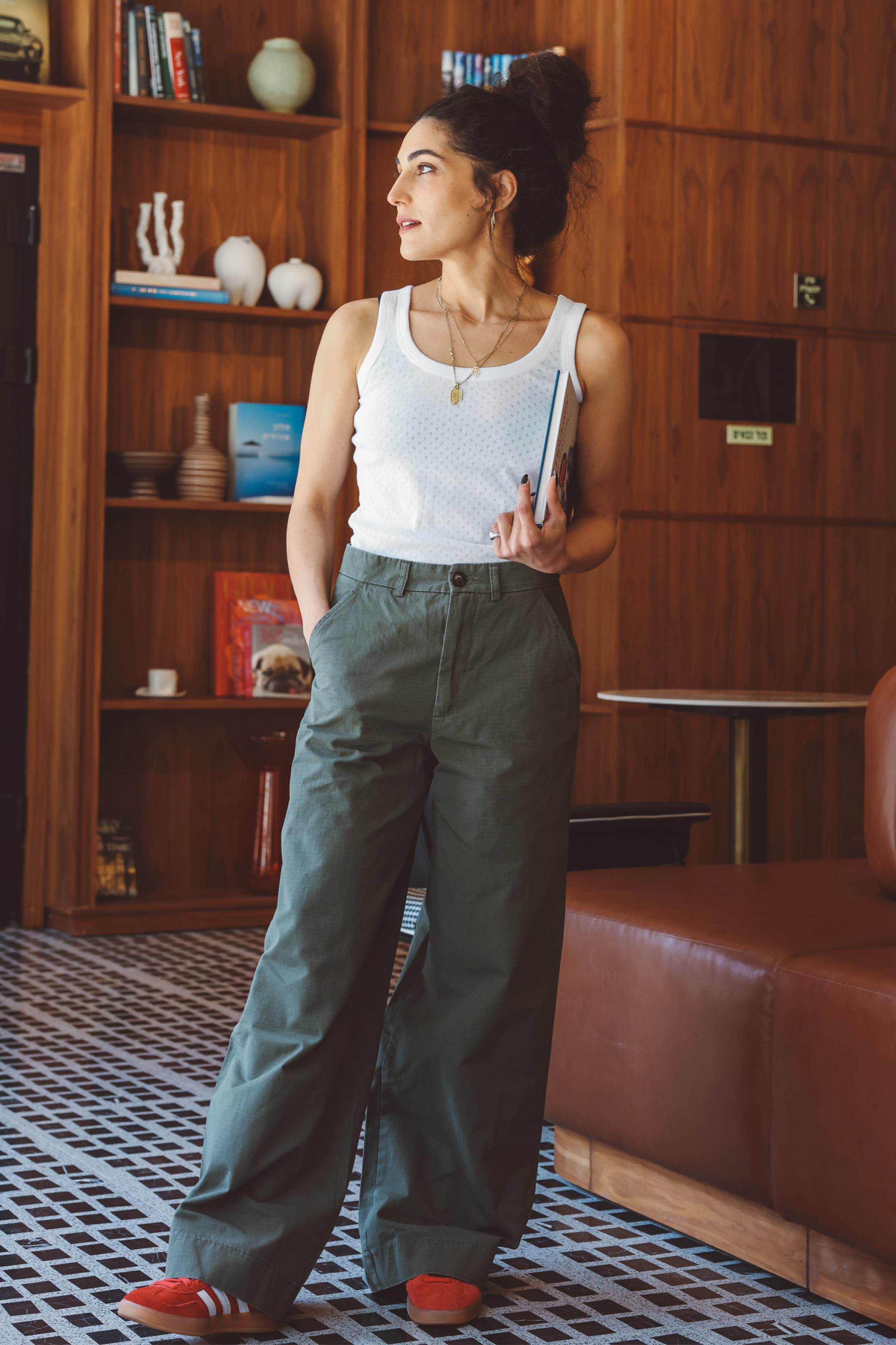 גובה של מאי 171, היקף חזה 86, מותניים 72, ירכיים 96 והיא לובשת מידה סמול