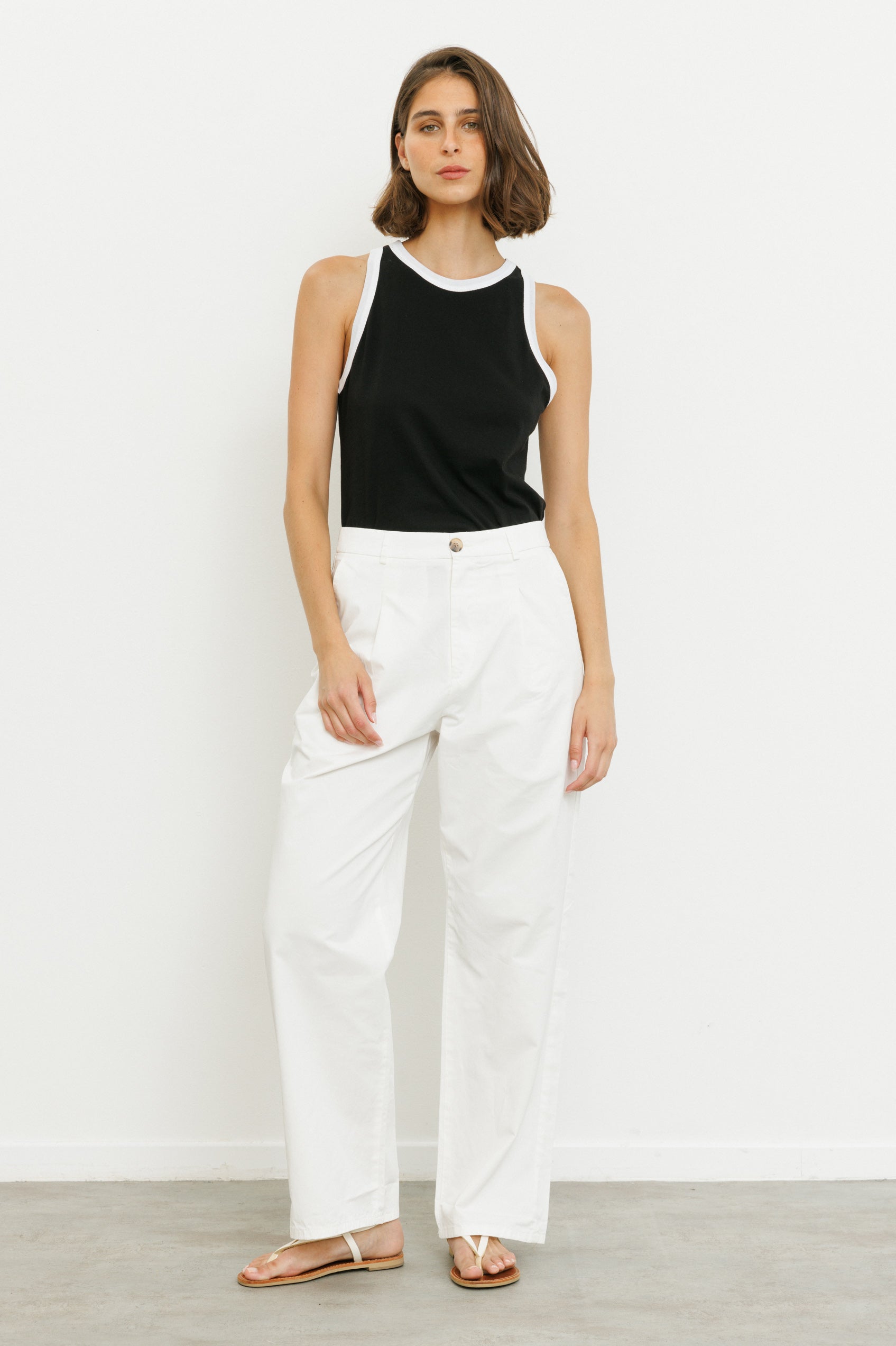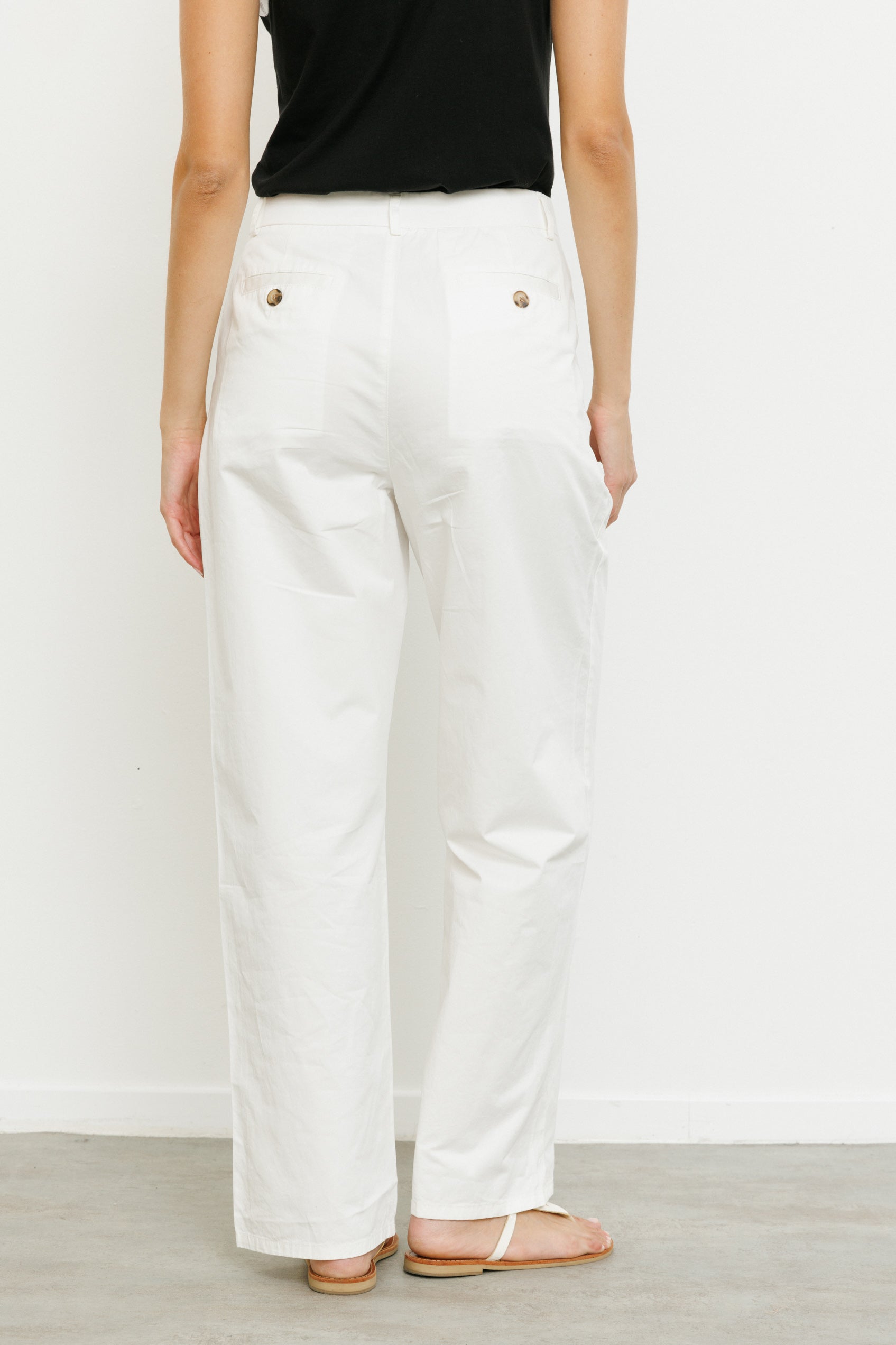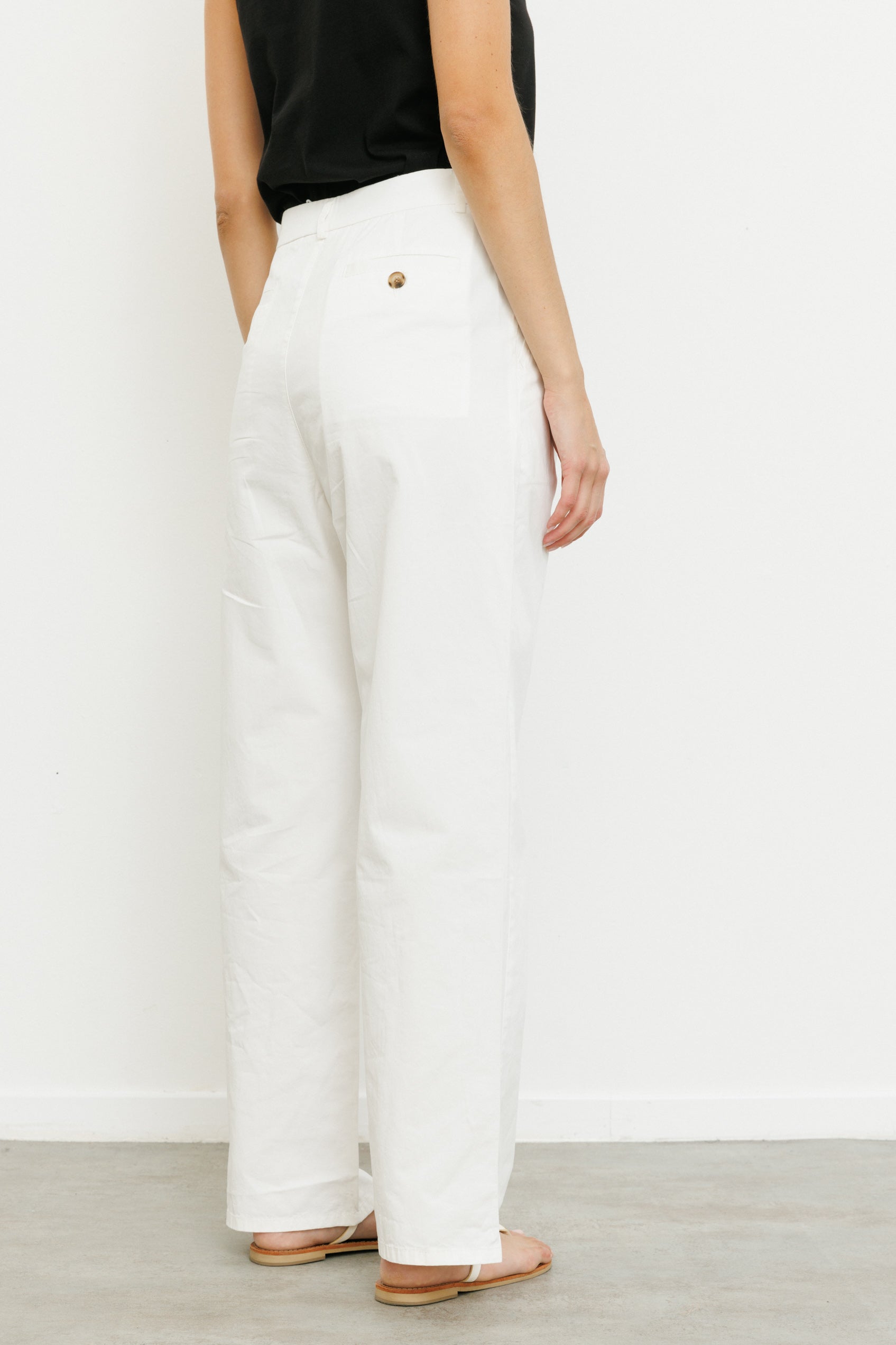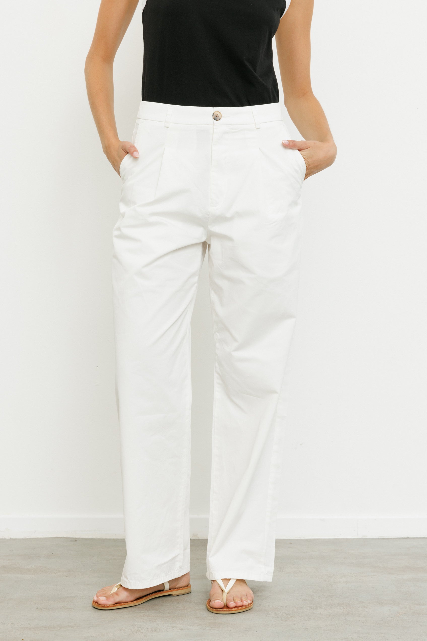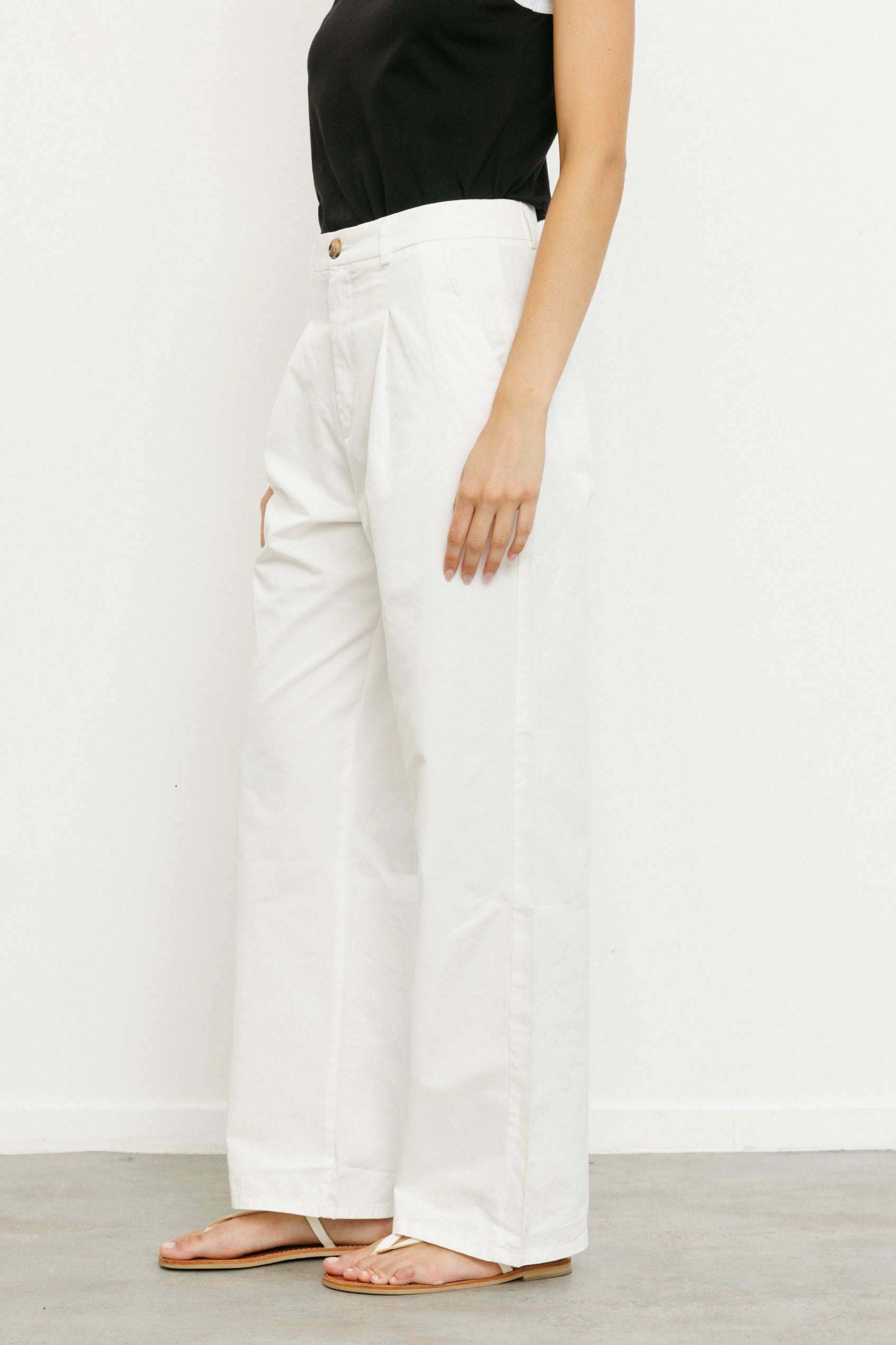 מכנסיים ארוכים ורחבים בגזרה גבוהה עם שני קפלים בחלקם הקדמי