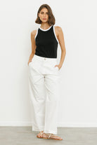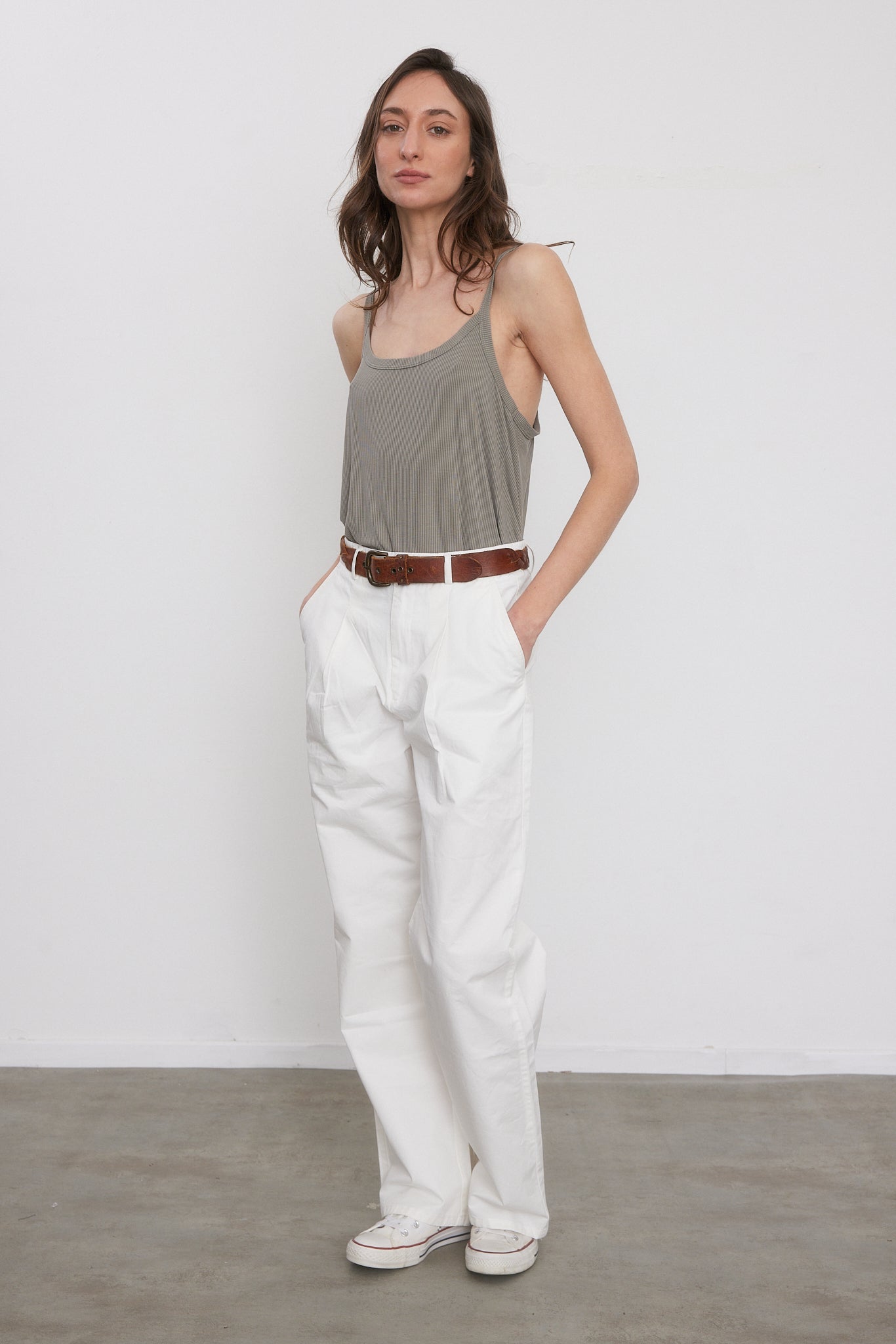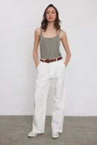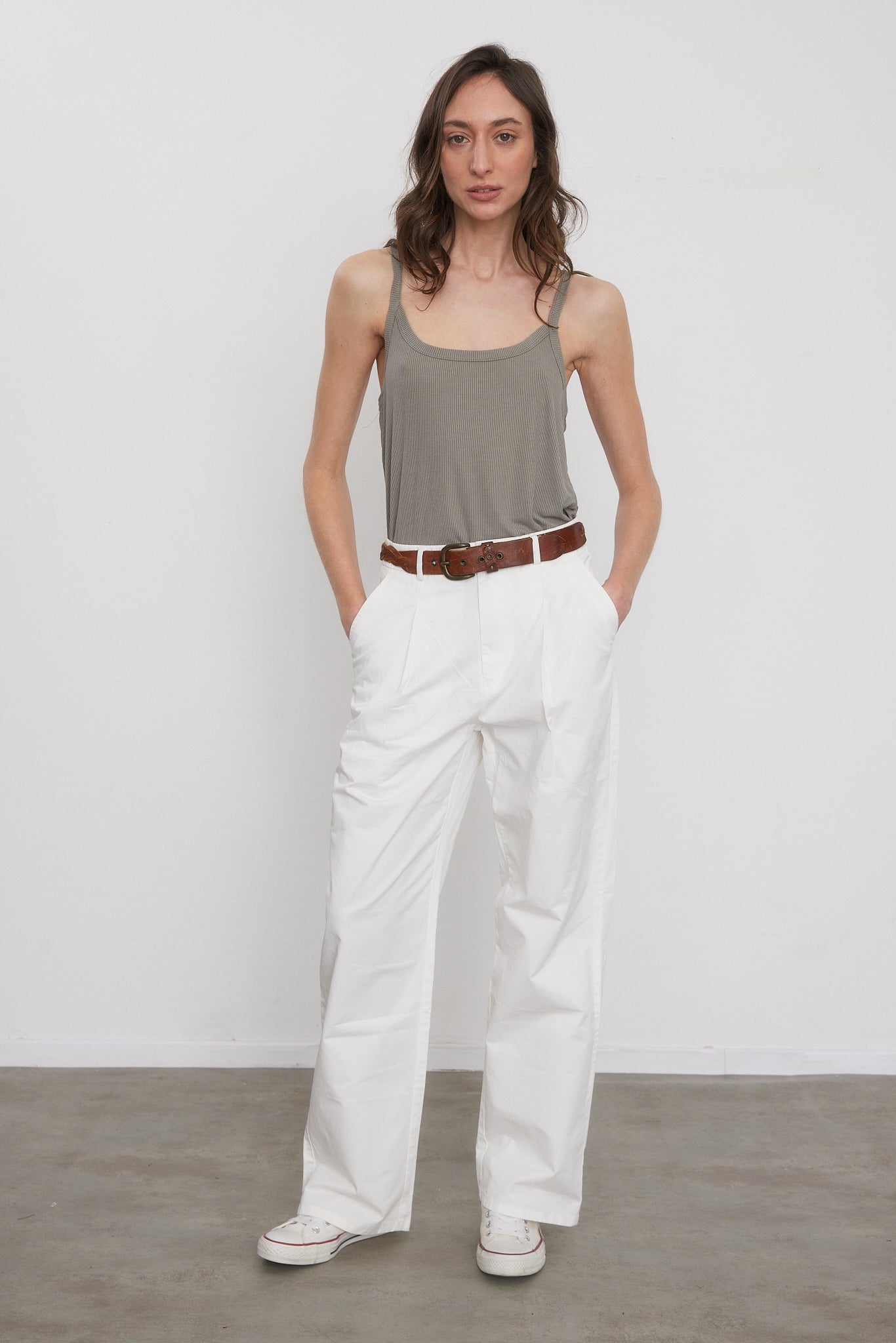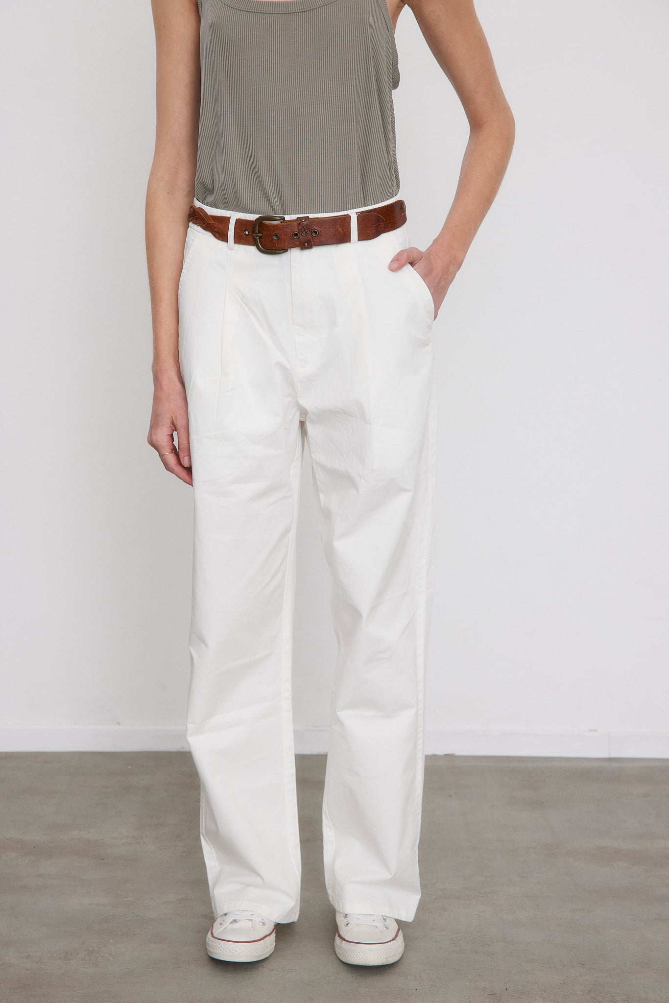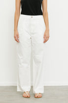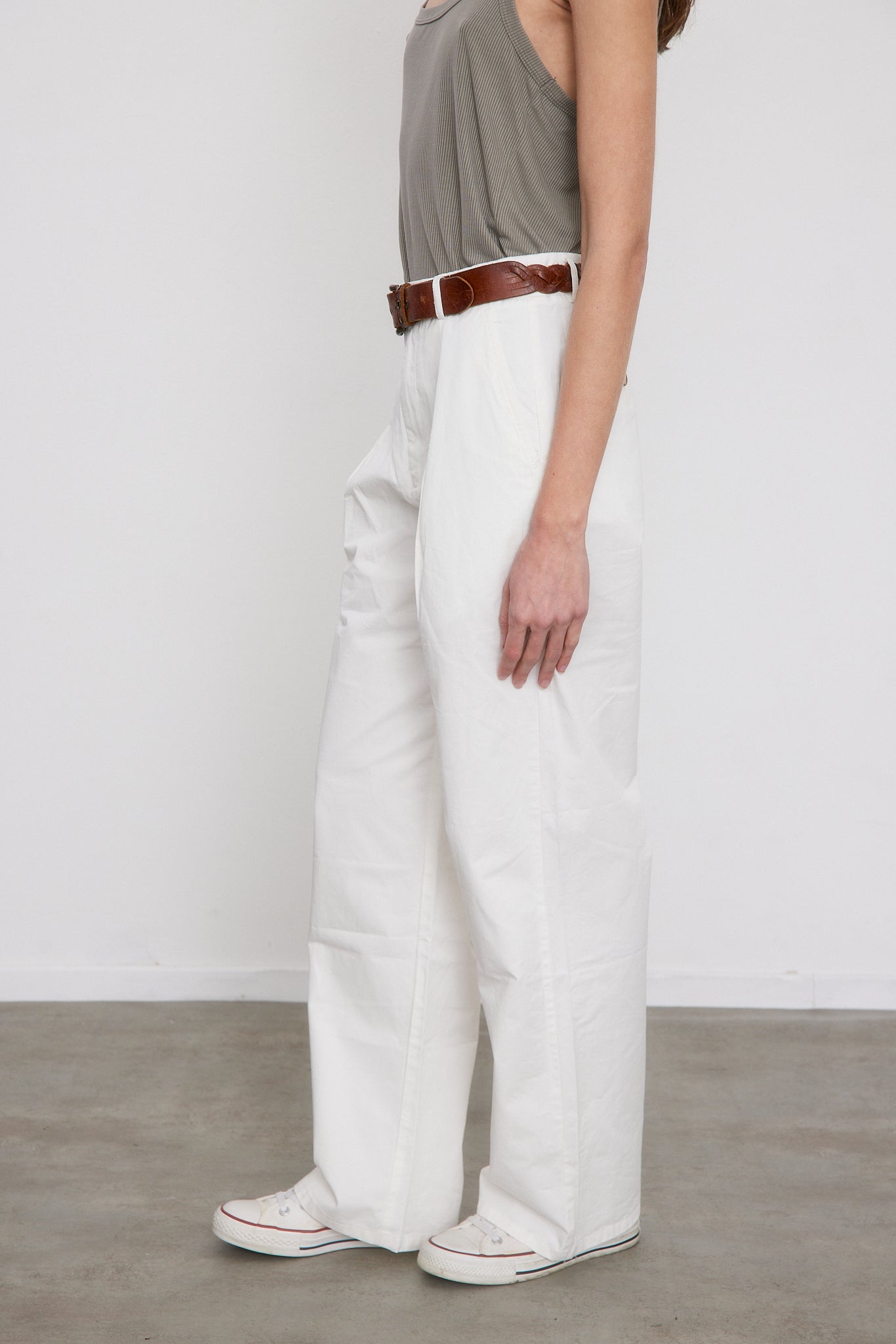 מכנסיים ארוכים ורחבים בגזרה גבוהה עם שני קפלים בחלקם הקדמי