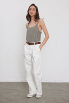 למכנסיים שני כיסי צד ושני כיסי שפה מכופתרים בחלקם האחורי