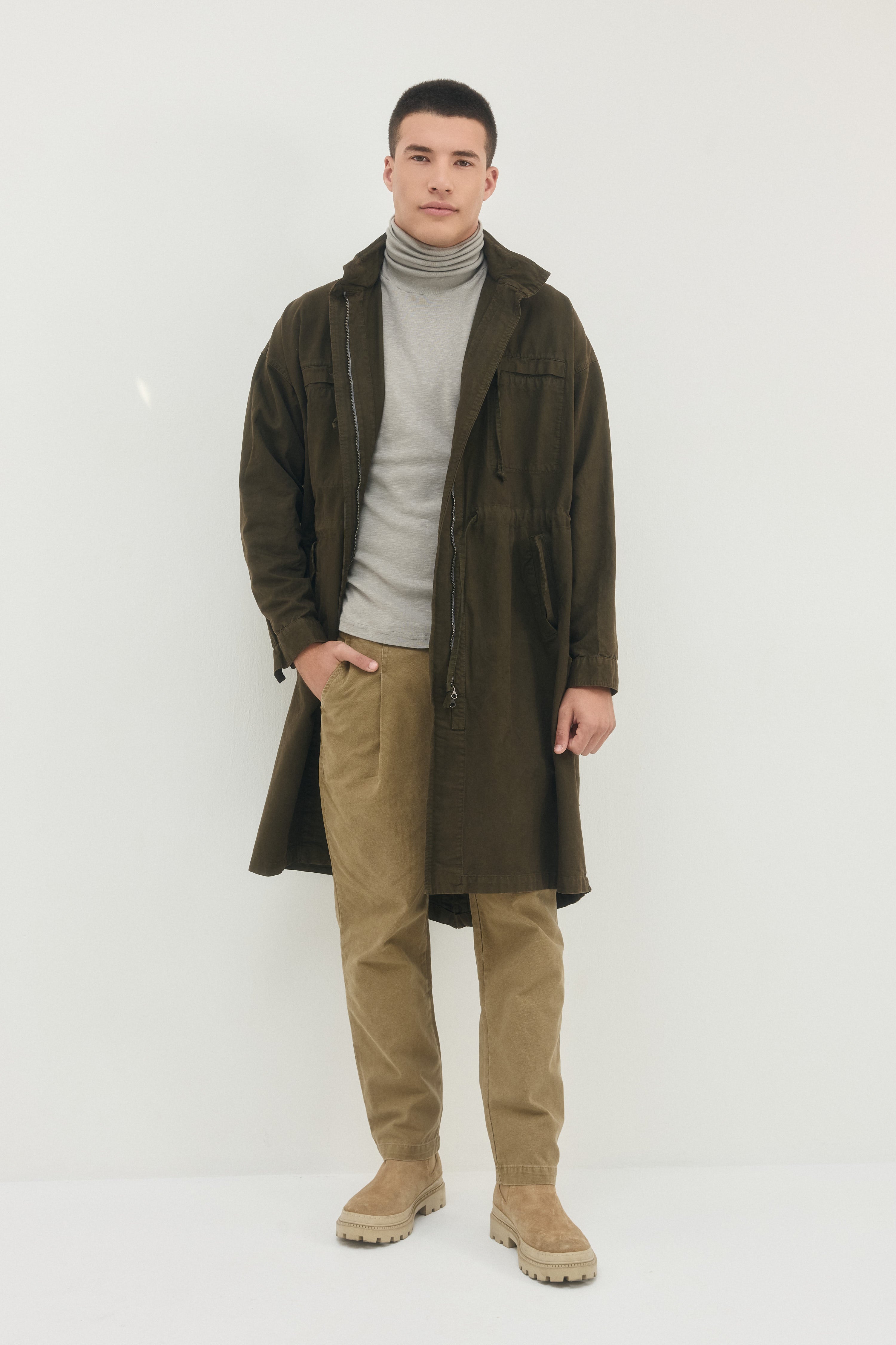 - למעיל קפוצ׳ון ושרוך המאפשר לכווץ אותו