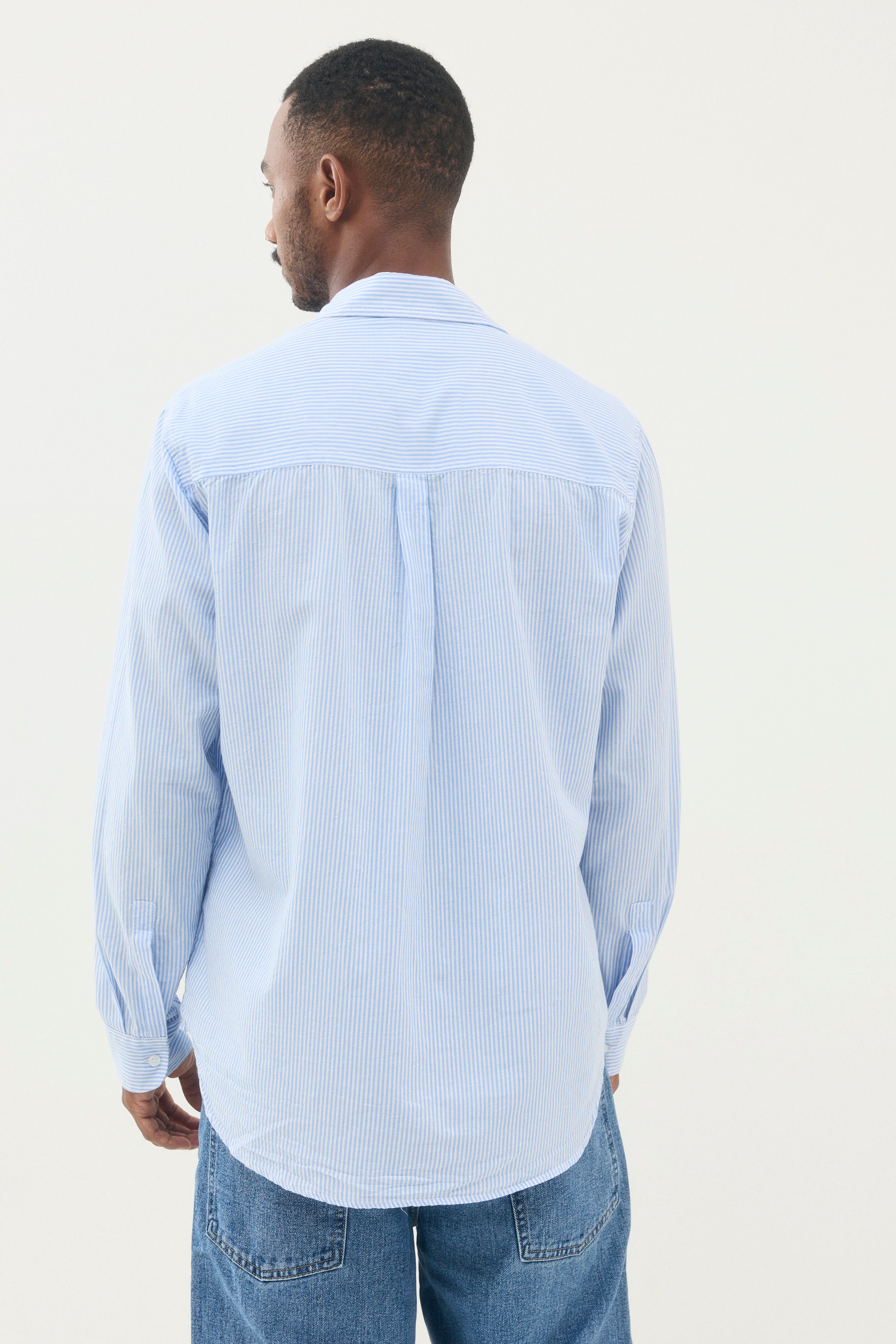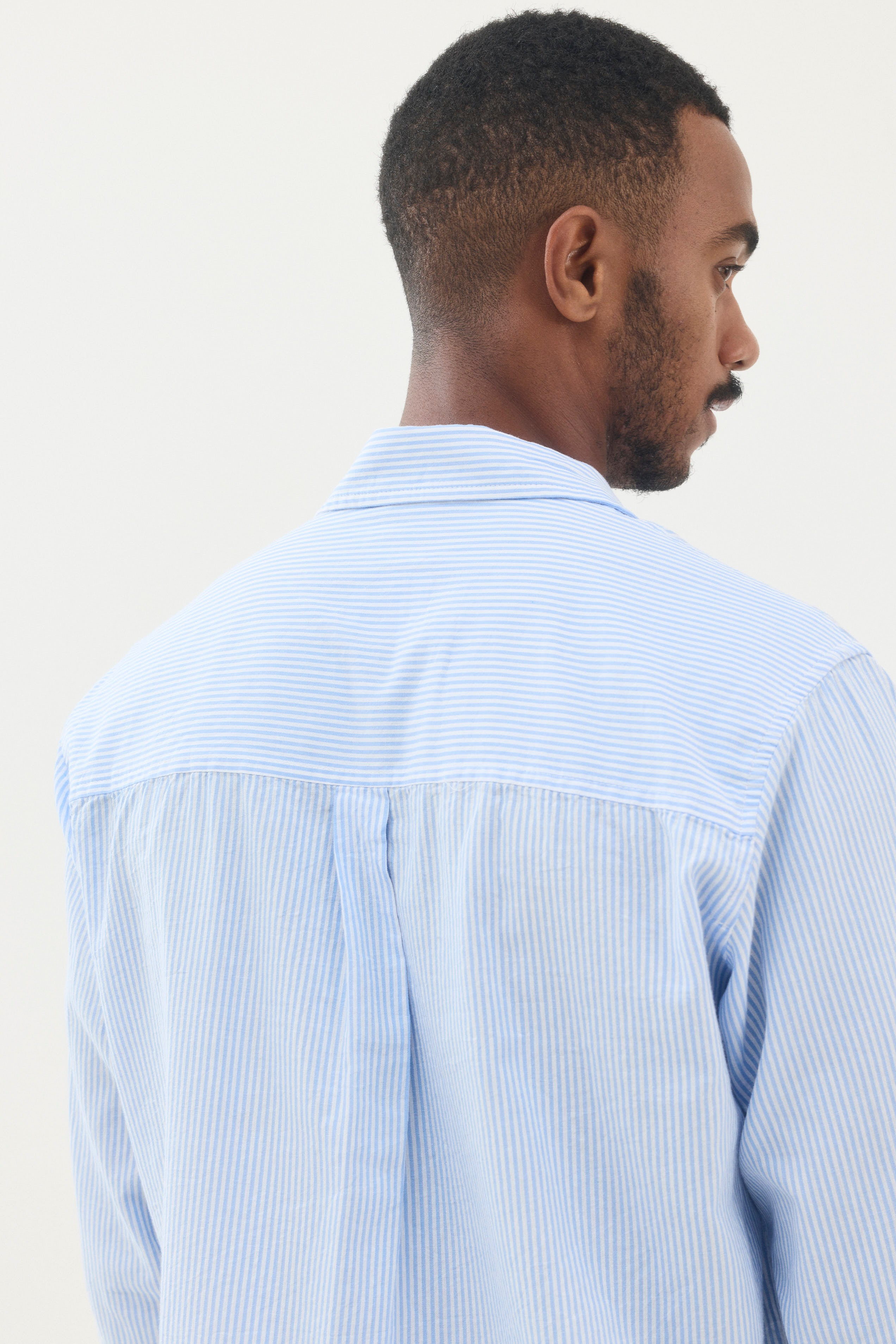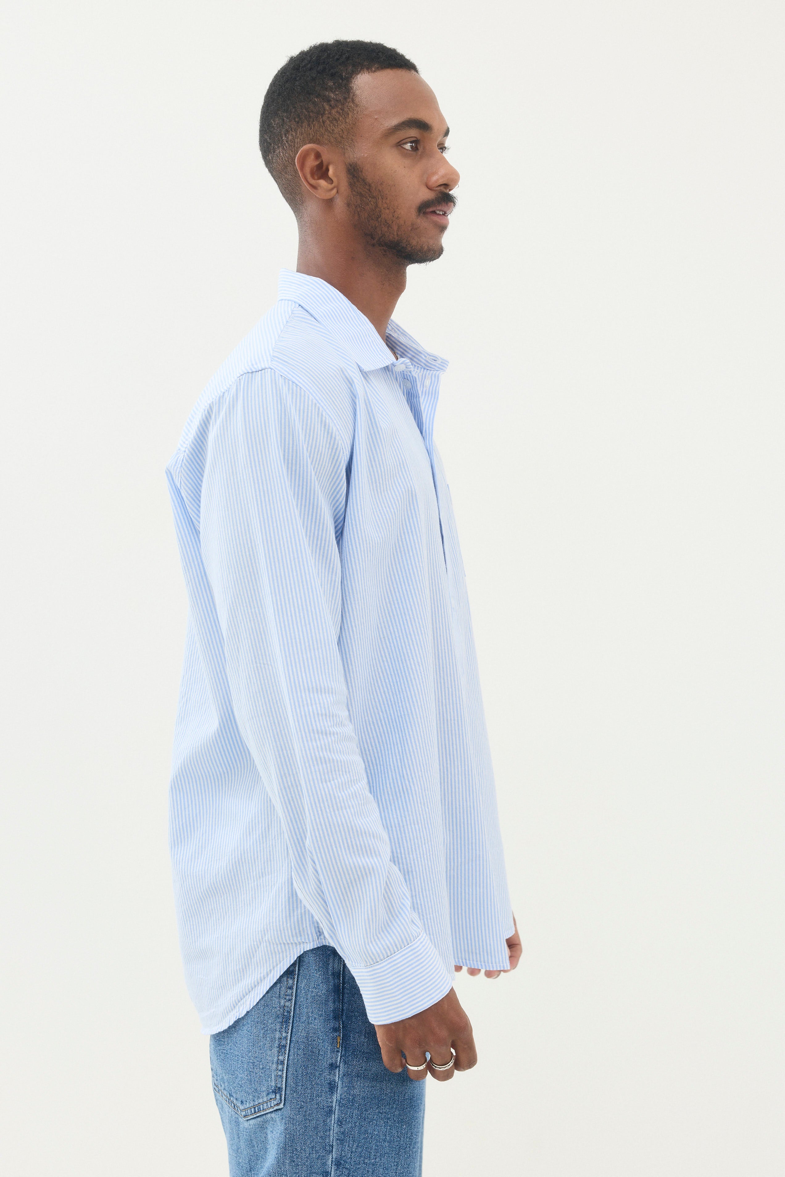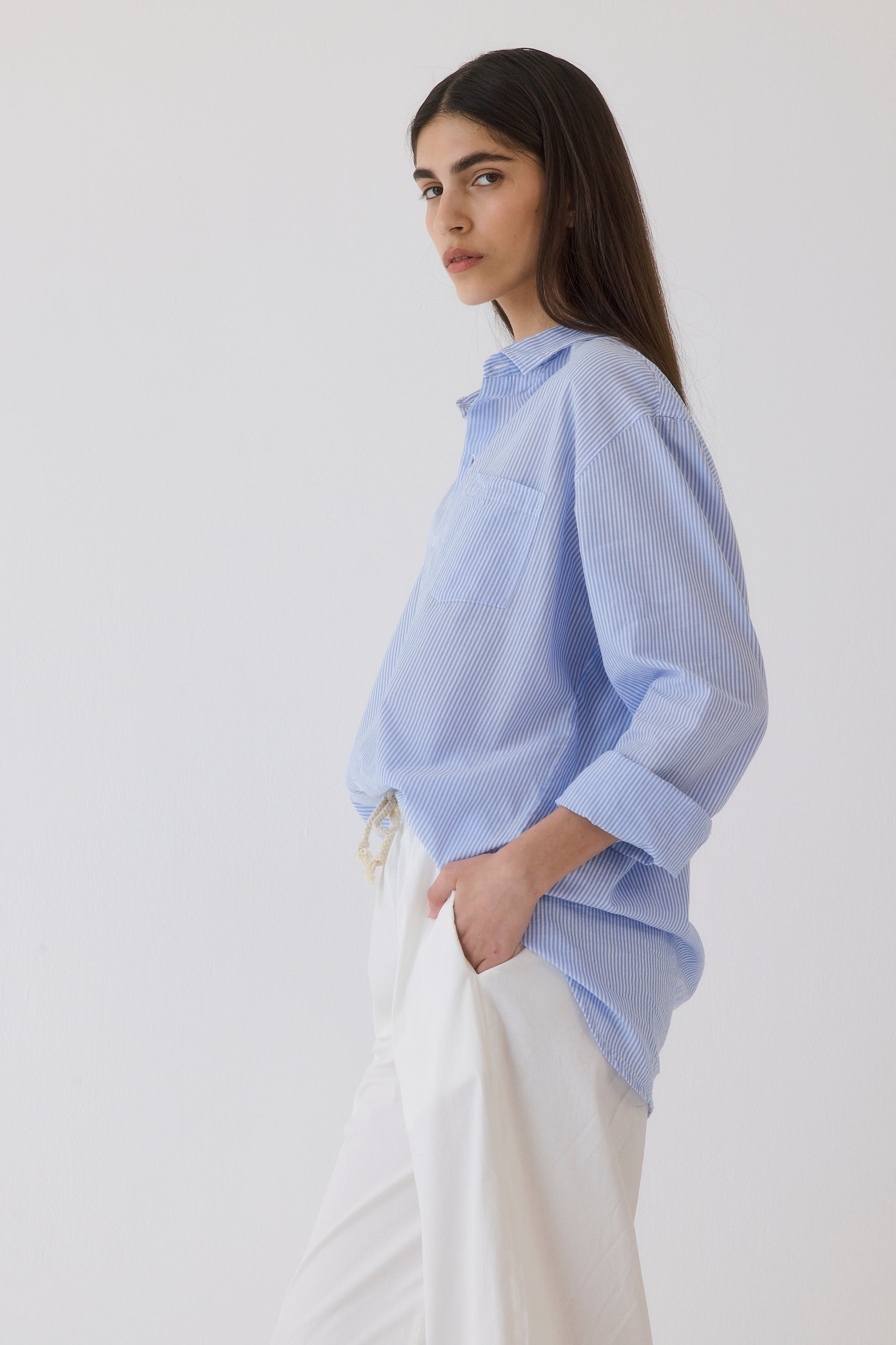 - חולצה בגזרה צמודה עם שרוולים ארוכים וצווארון גברי.