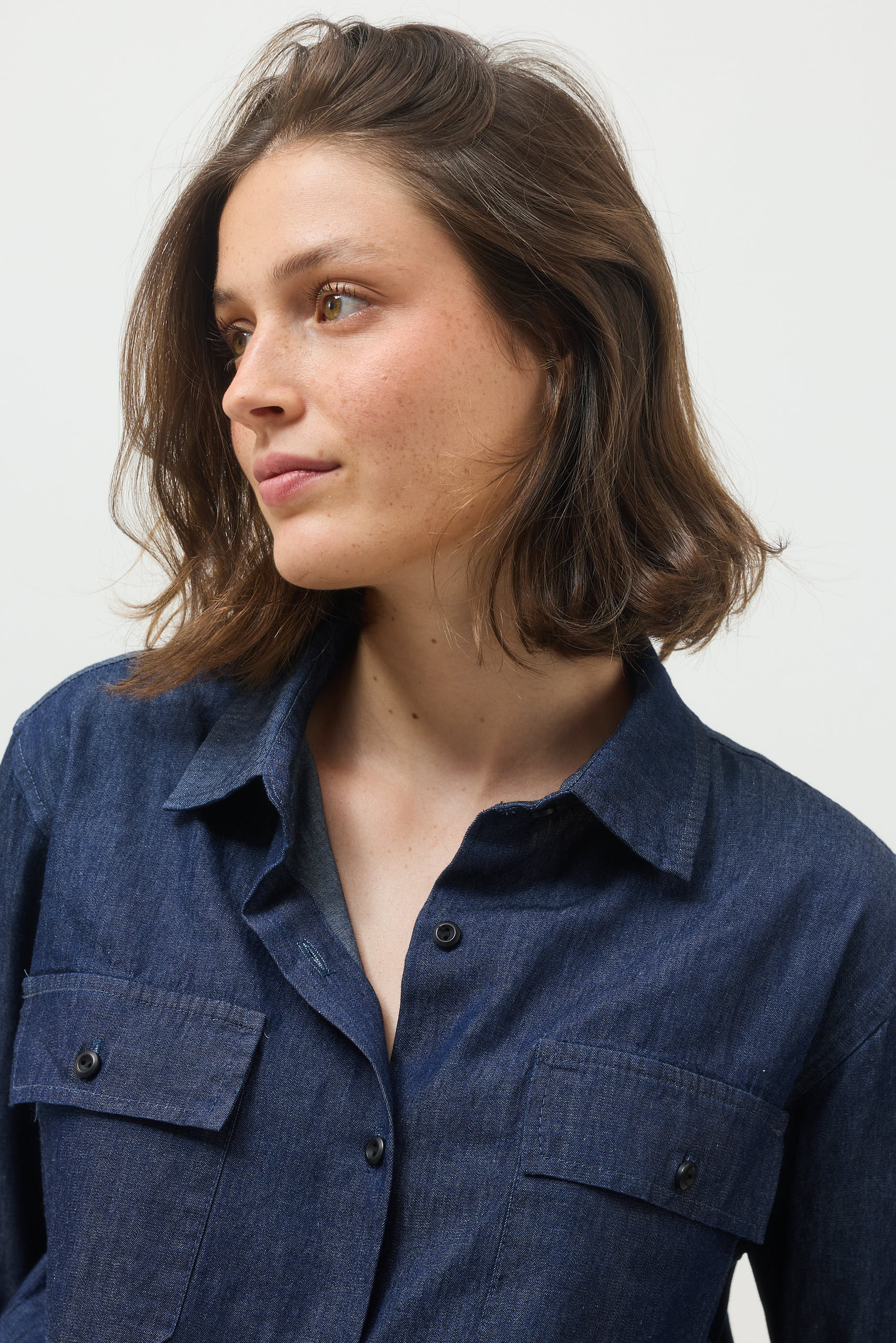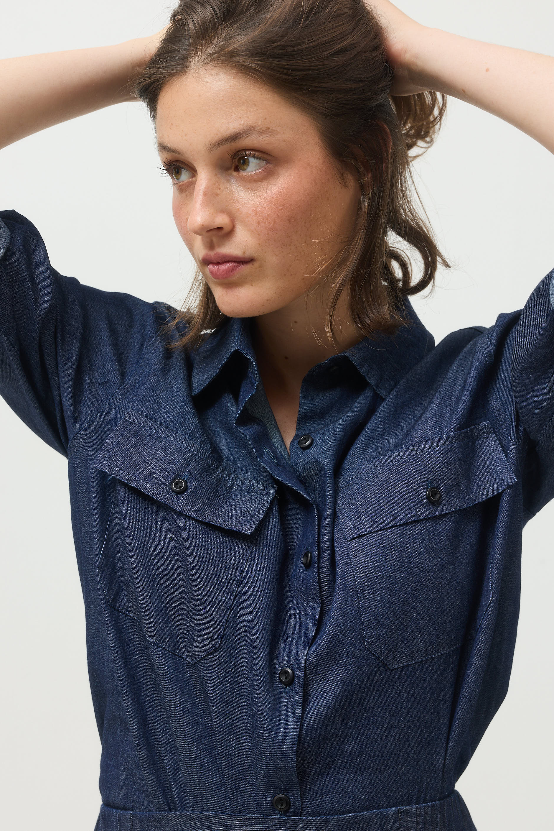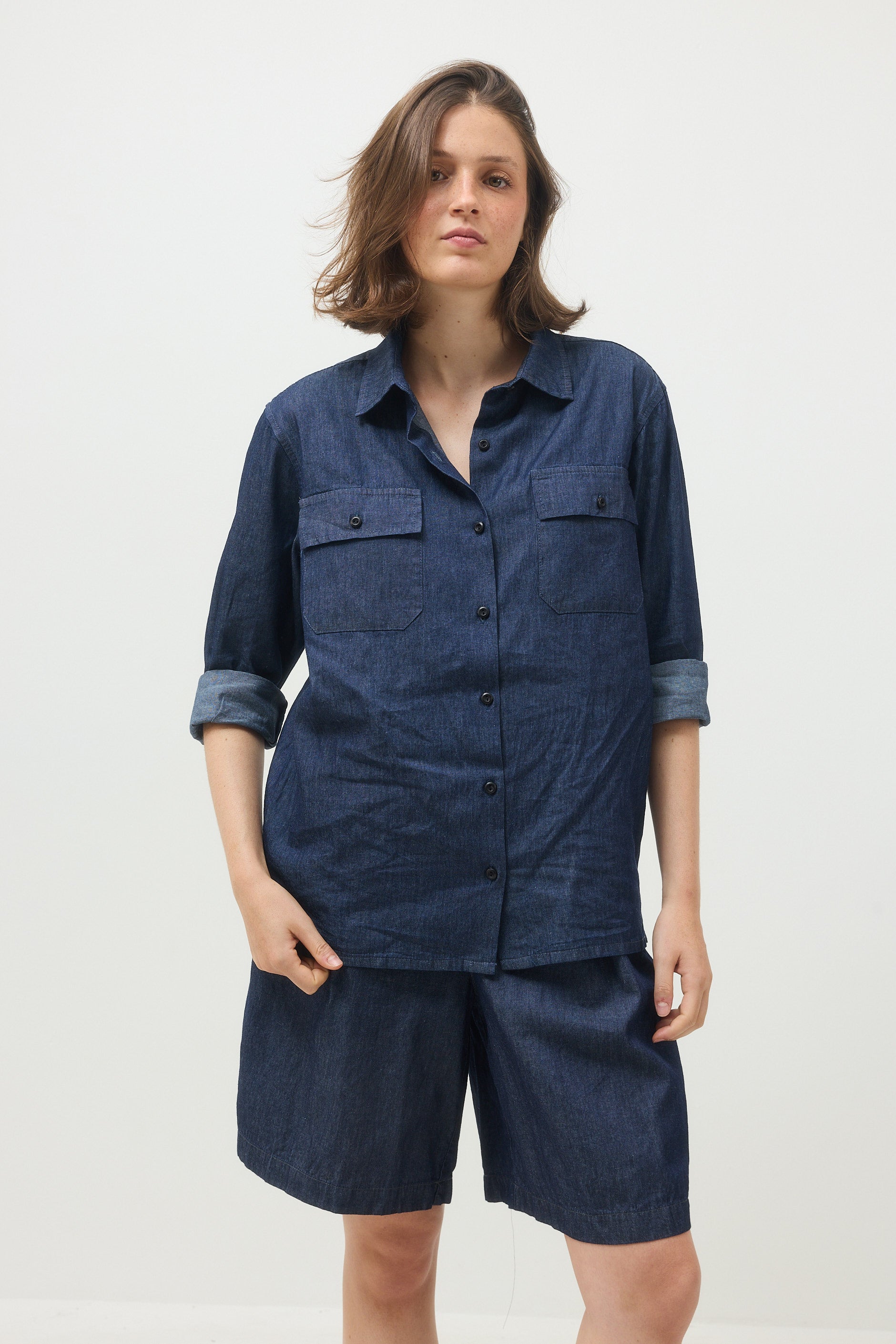 שני כיסים קדמיים עם כפתור, צווארון קלאסי, סגירה בכפתורים לאורך החזית