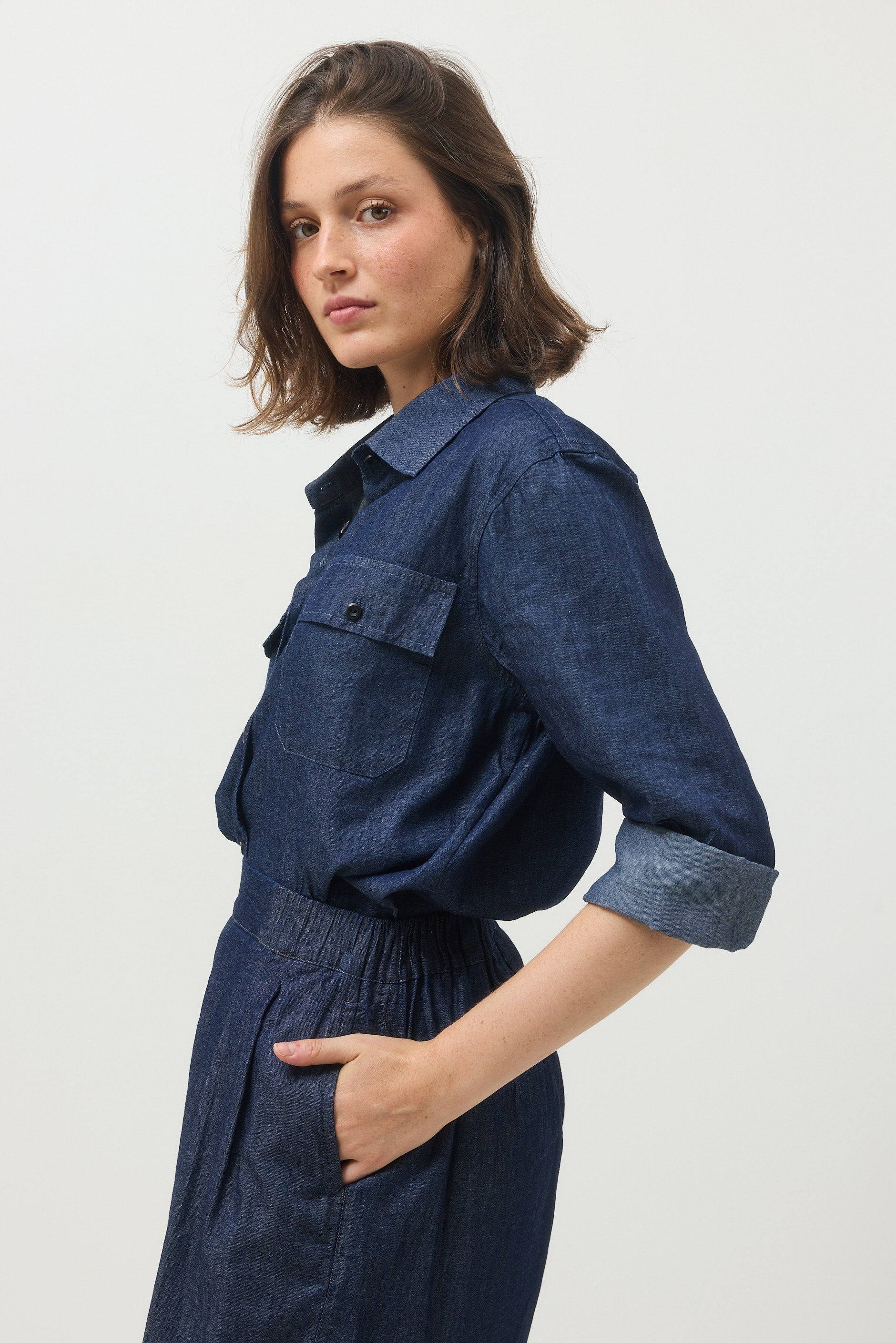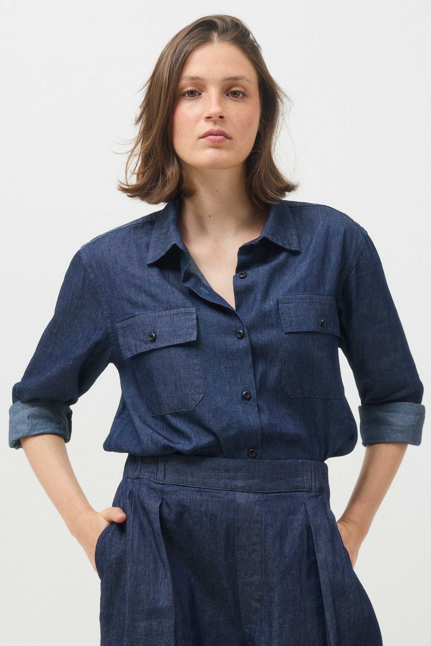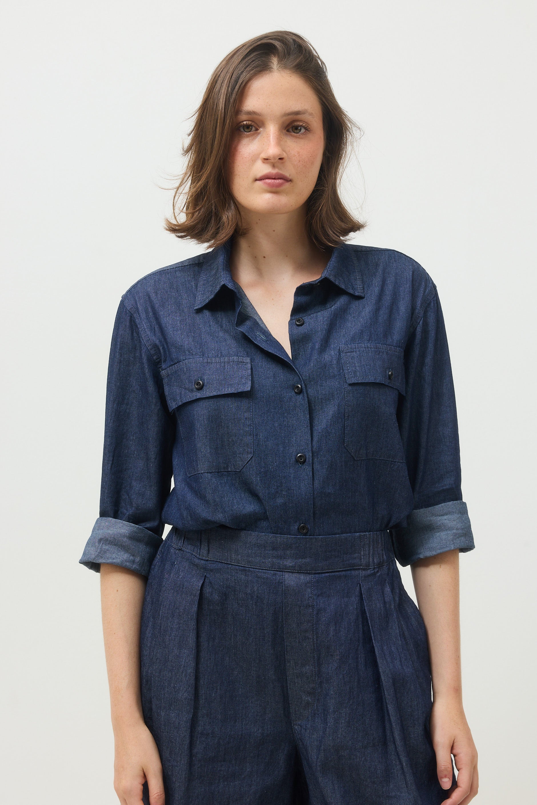 שני כיסים קדמיים עם כפתור, צווארון קלאסי, סגירה בכפתורים לאורך החזית