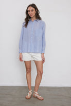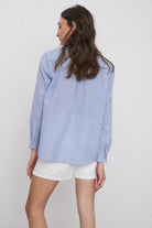 חולצה מכופתרת עם שרוולים ארוכים וצווארון גברי בגזרה משוחררת