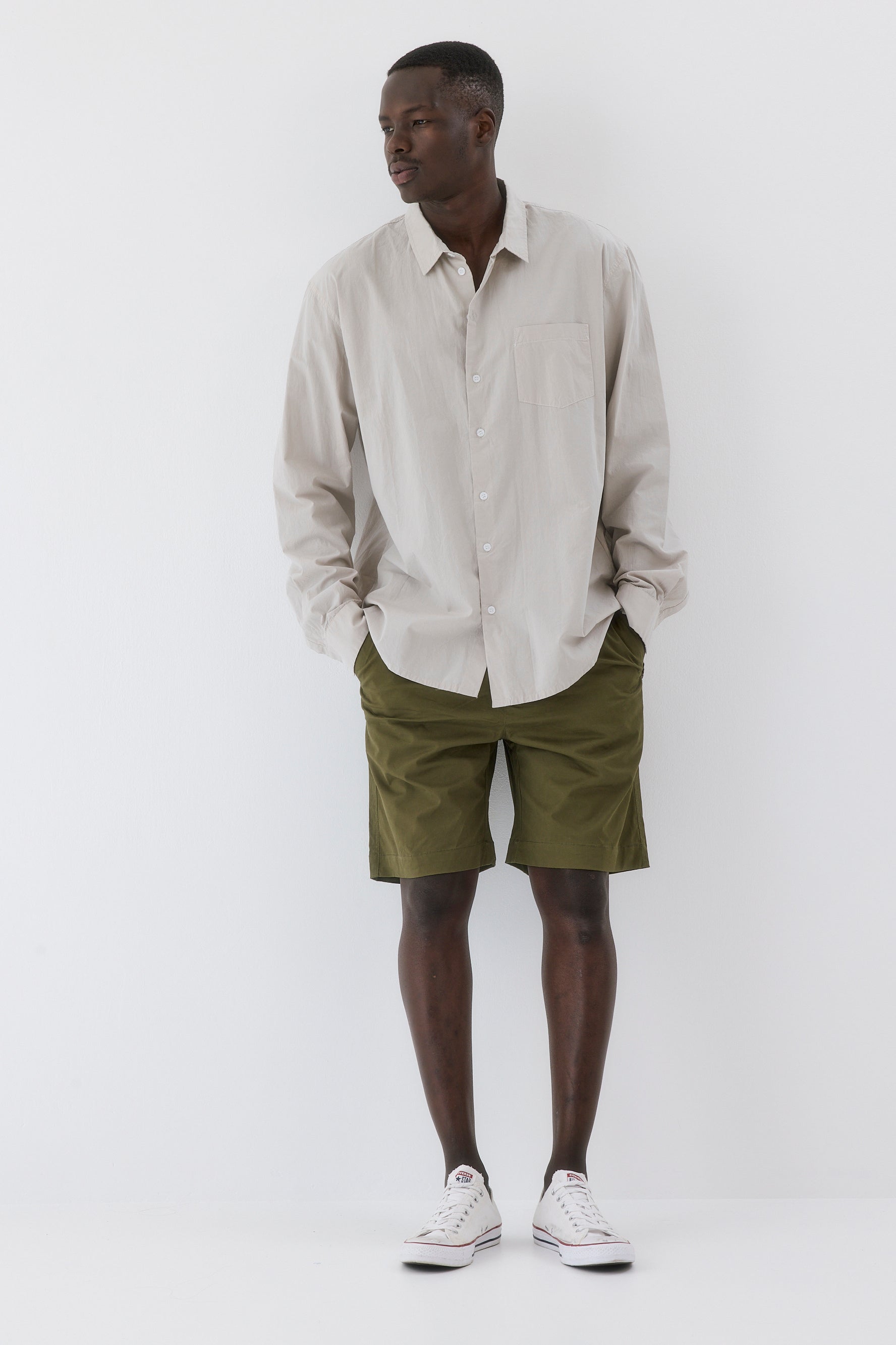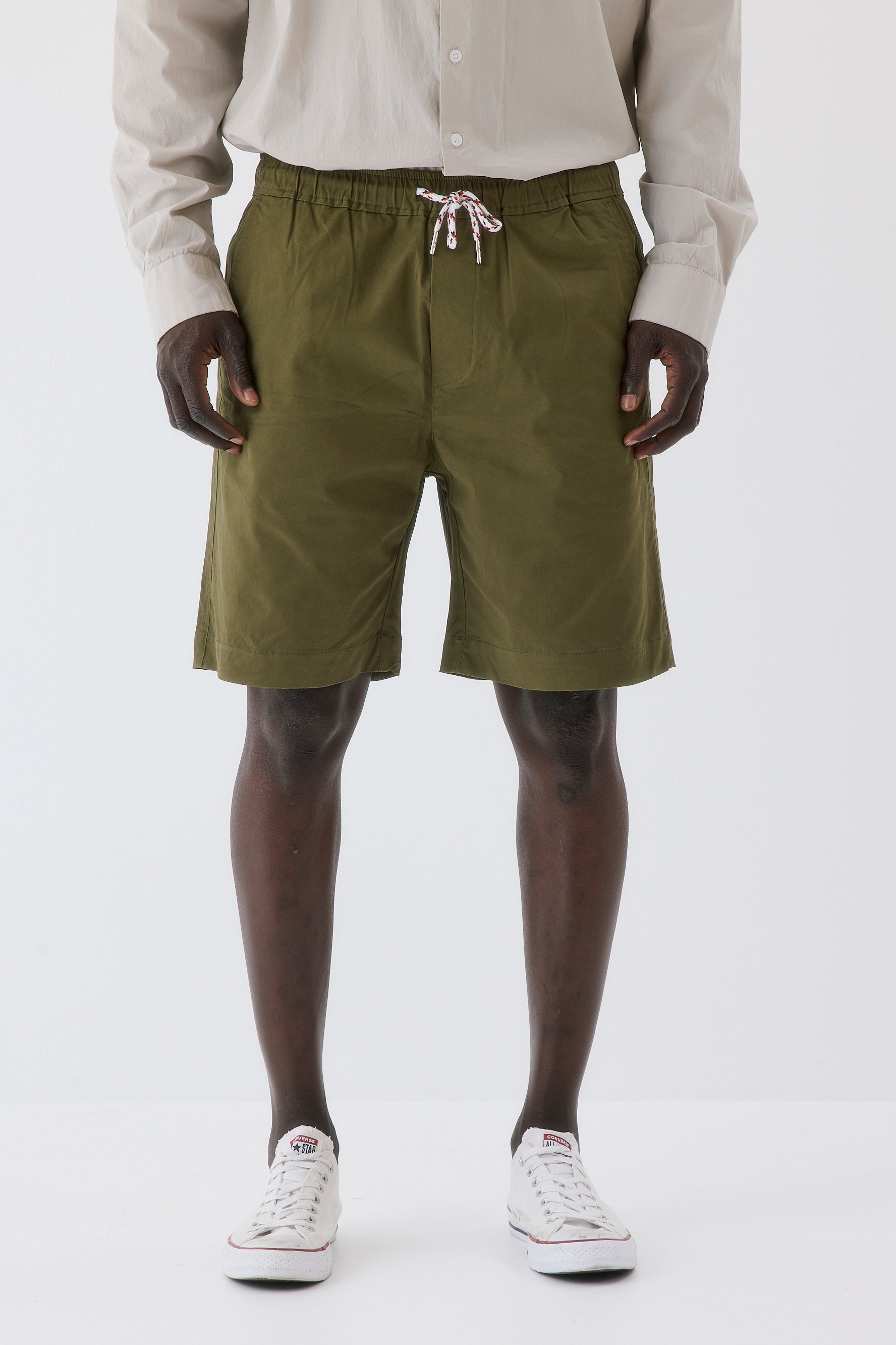 מכנסיים קצרים עם 2 כיסים ושרוך במותן בצבעים זית, דשא, חלודה, חאקי ואפור.
