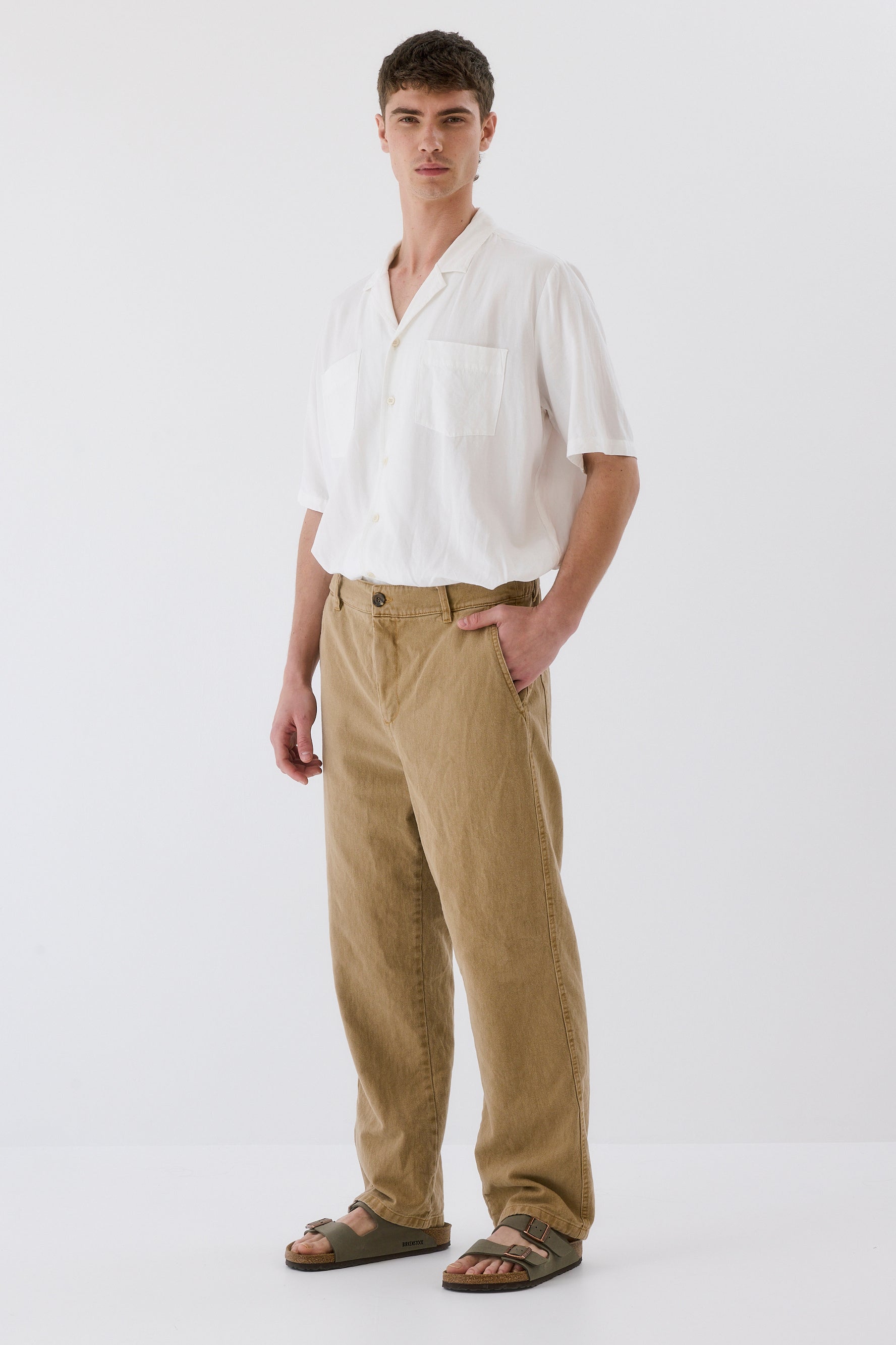 בד  באריגת דריל , 100 אחוז כותנה שעבר כביסה וקיבל את הגוון השטוף והמשופשף כך